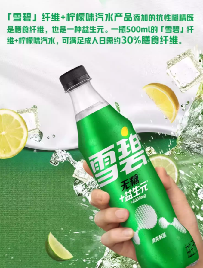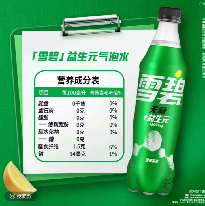 雪碧无糖+益生元 柠檬味汽水500ml