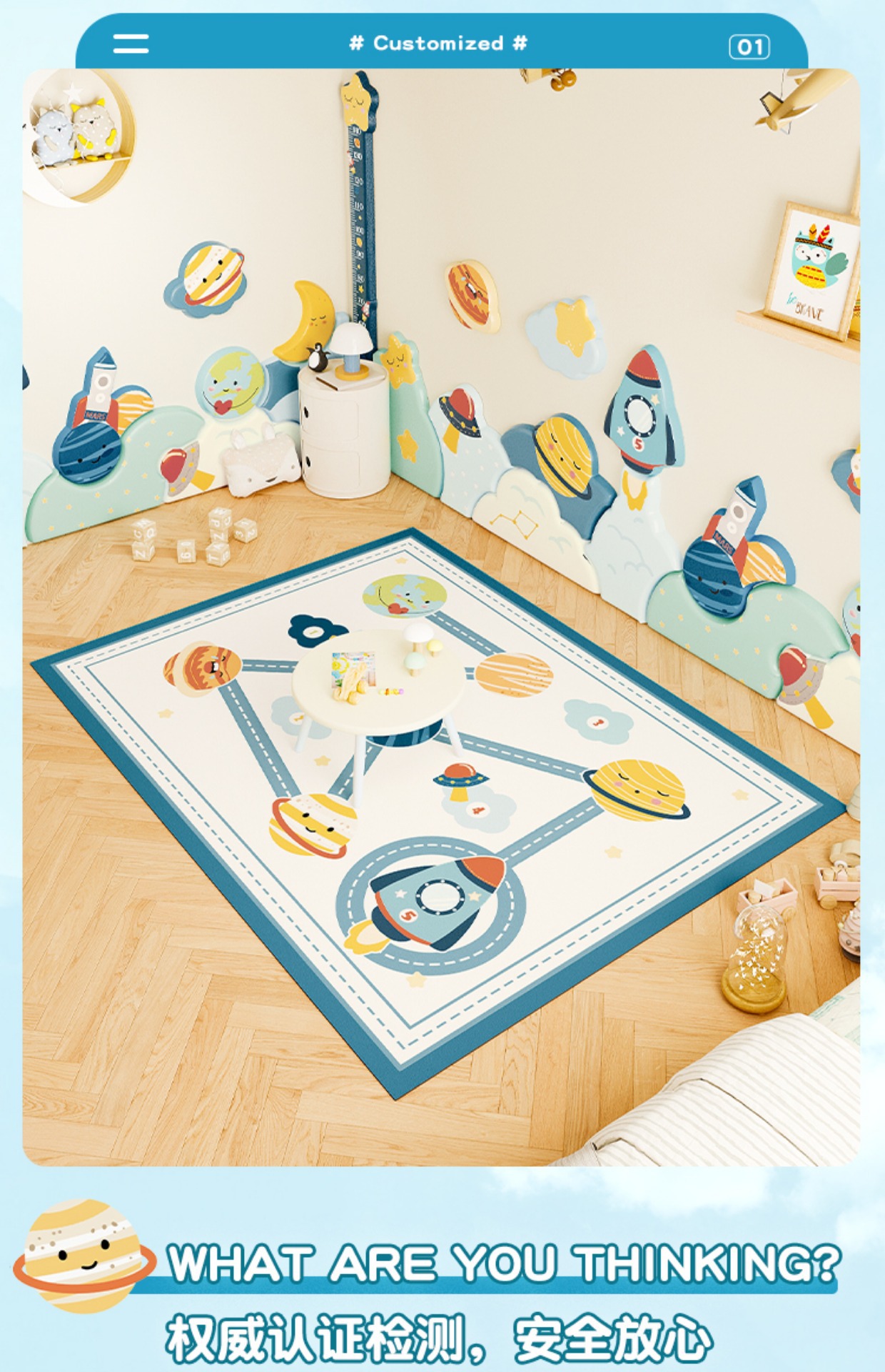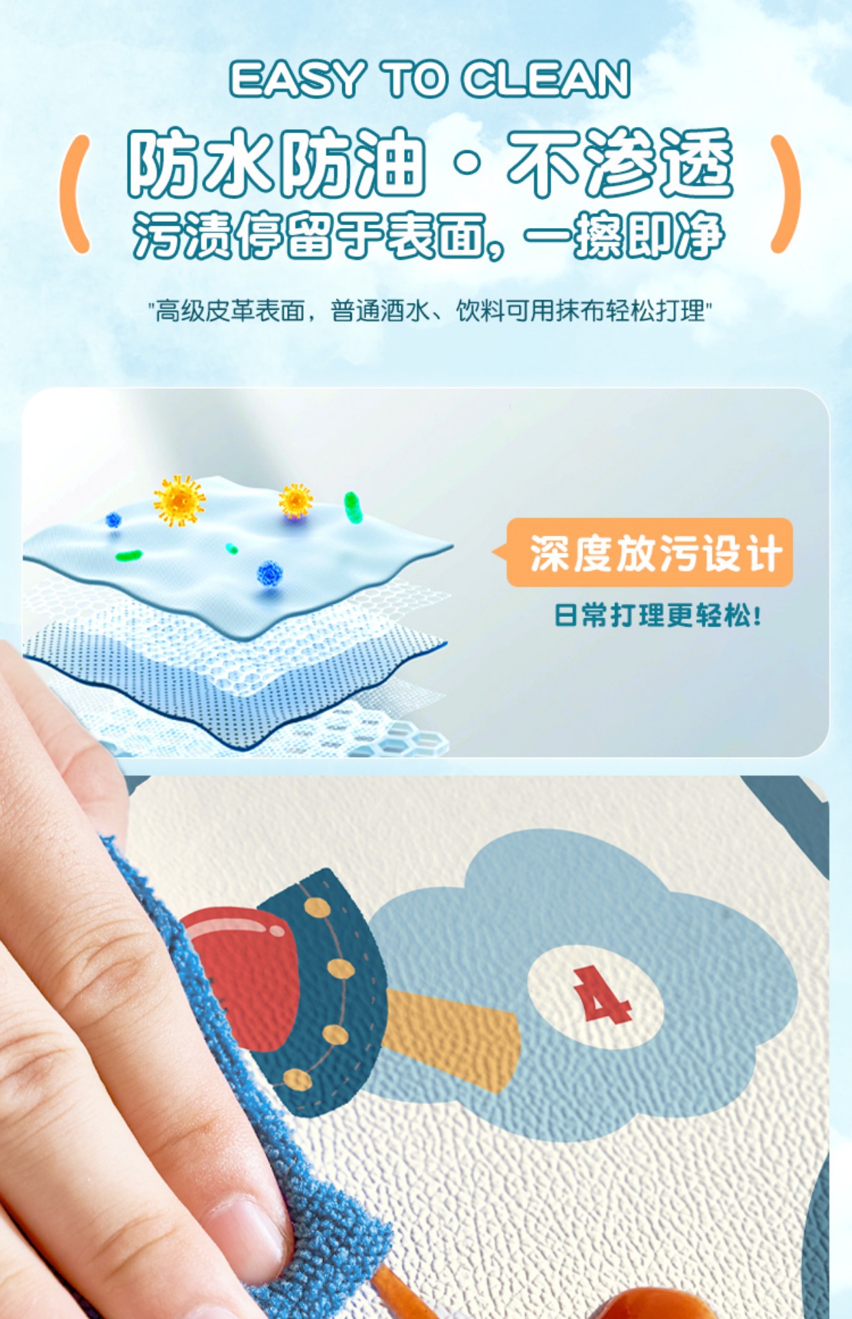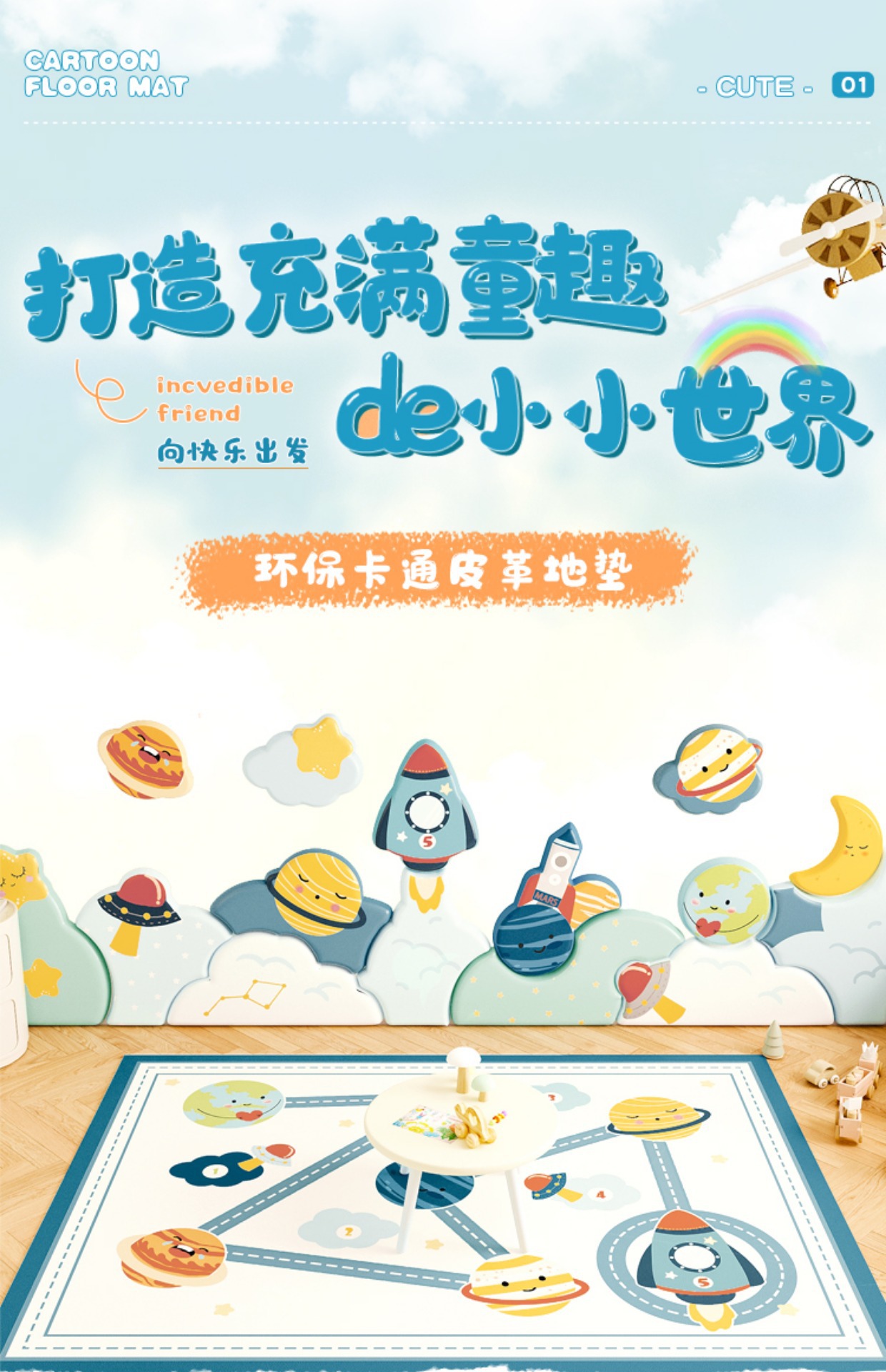 卡通皮革地垫【防摔PVC儿童爬行垫】家用可擦免洗 防水防滑地毯全铺