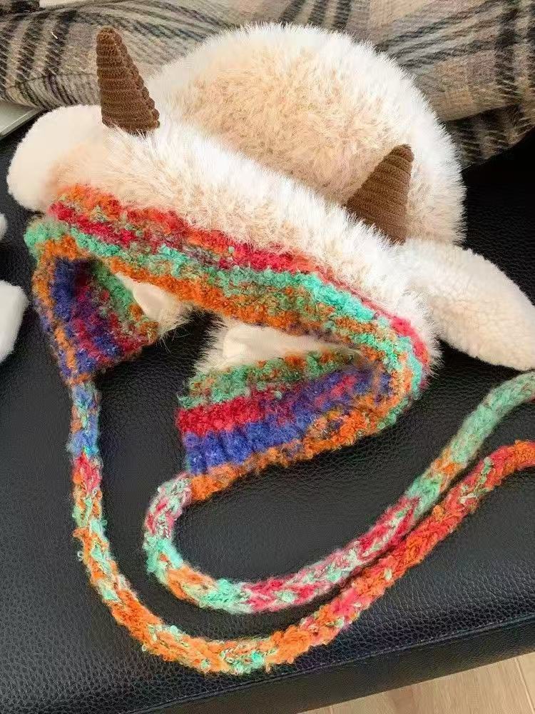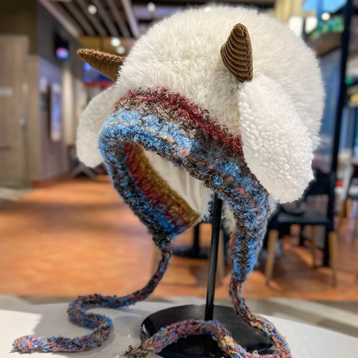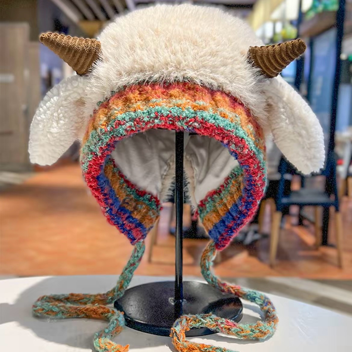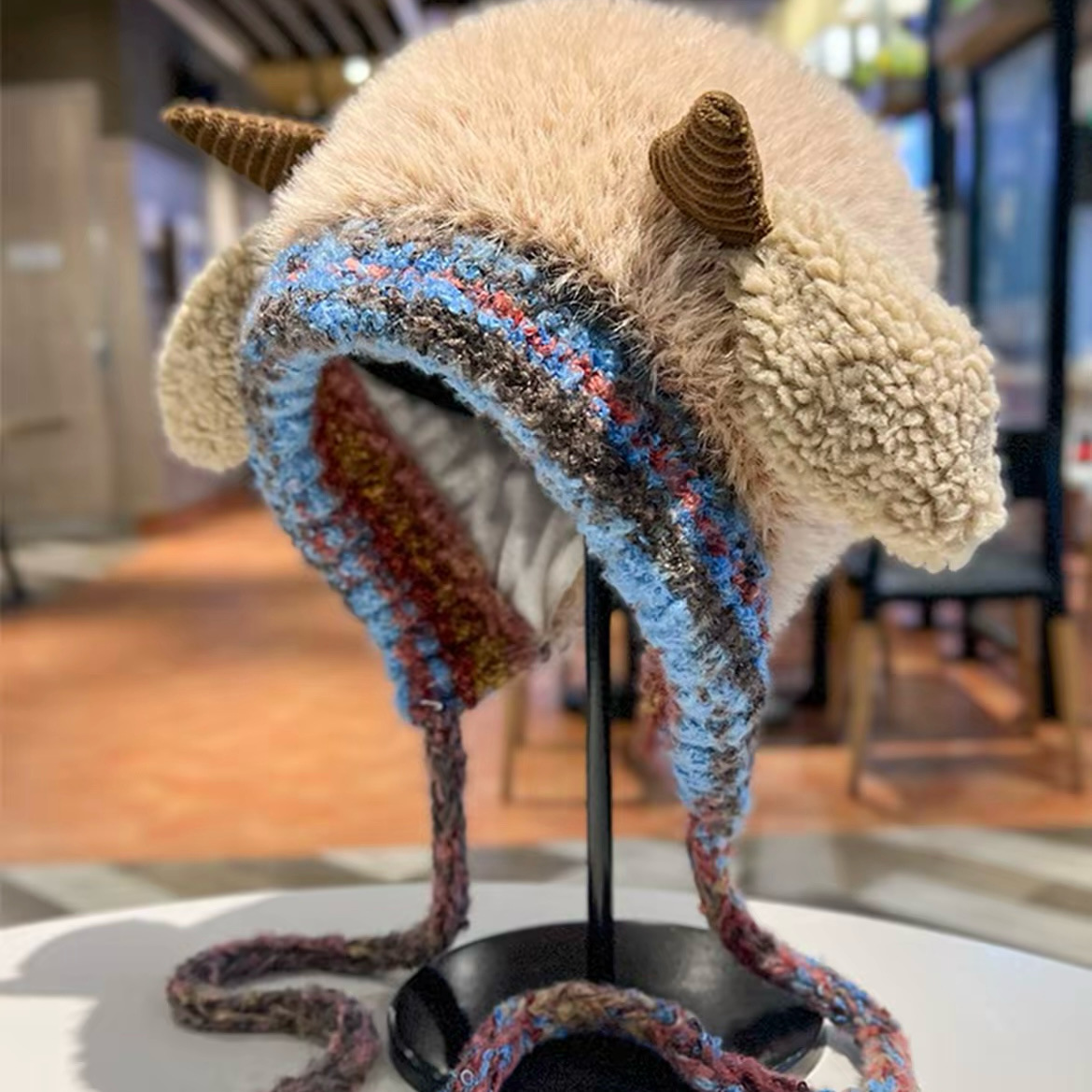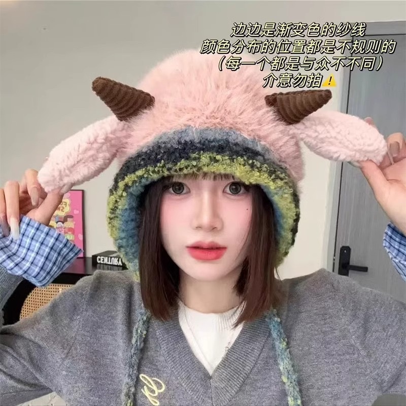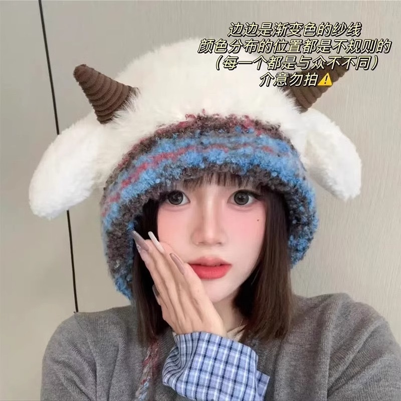 【冬季新款❗️超可爱小羊帽子】保暖加厚,百搭可爱风,全包显脸小,毛绒针织包头女保暖秋冬季骑行套头帽百搭潮