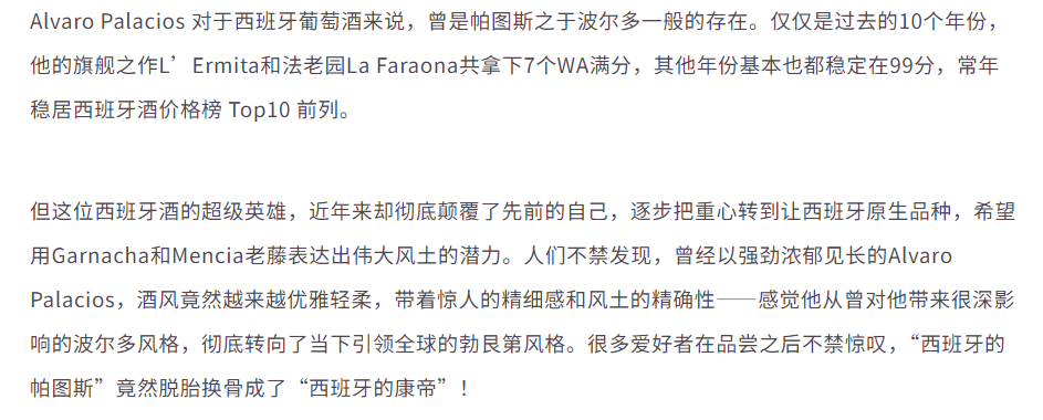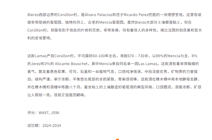 【西班牙康帝级风土佳酿】Alvaro Palacios Las Lamas 2019 750Ml 奥瓦罗酒庄拉玛斯园红葡萄酒