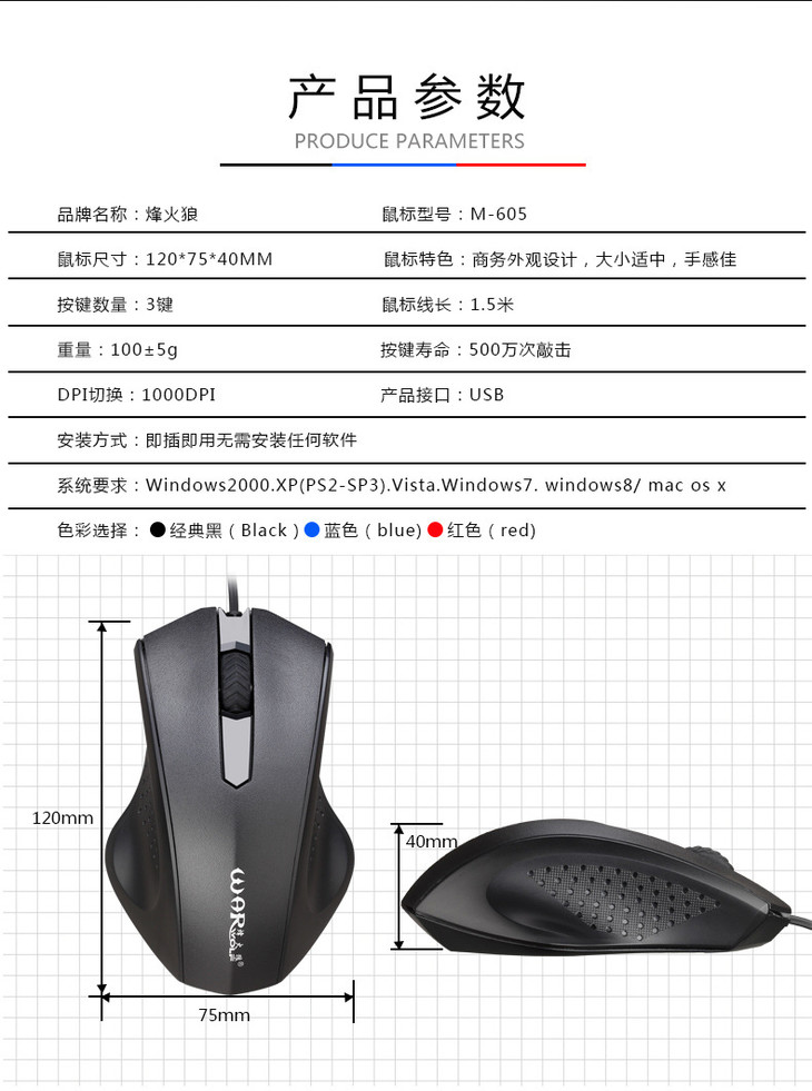 【鼠标】。烽火狼鼠标有线游戏外接USB家用笔记本光电静音电脑台式