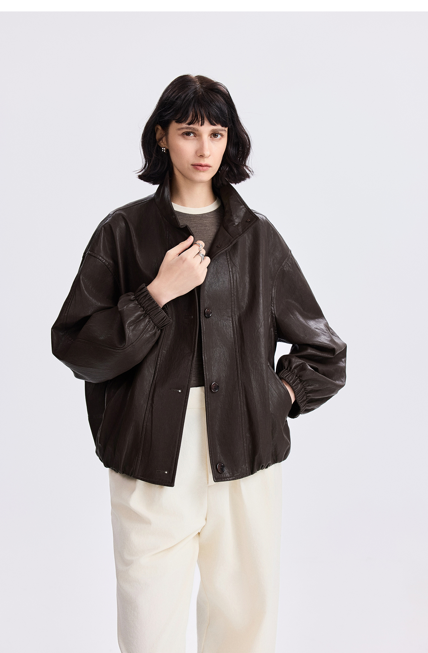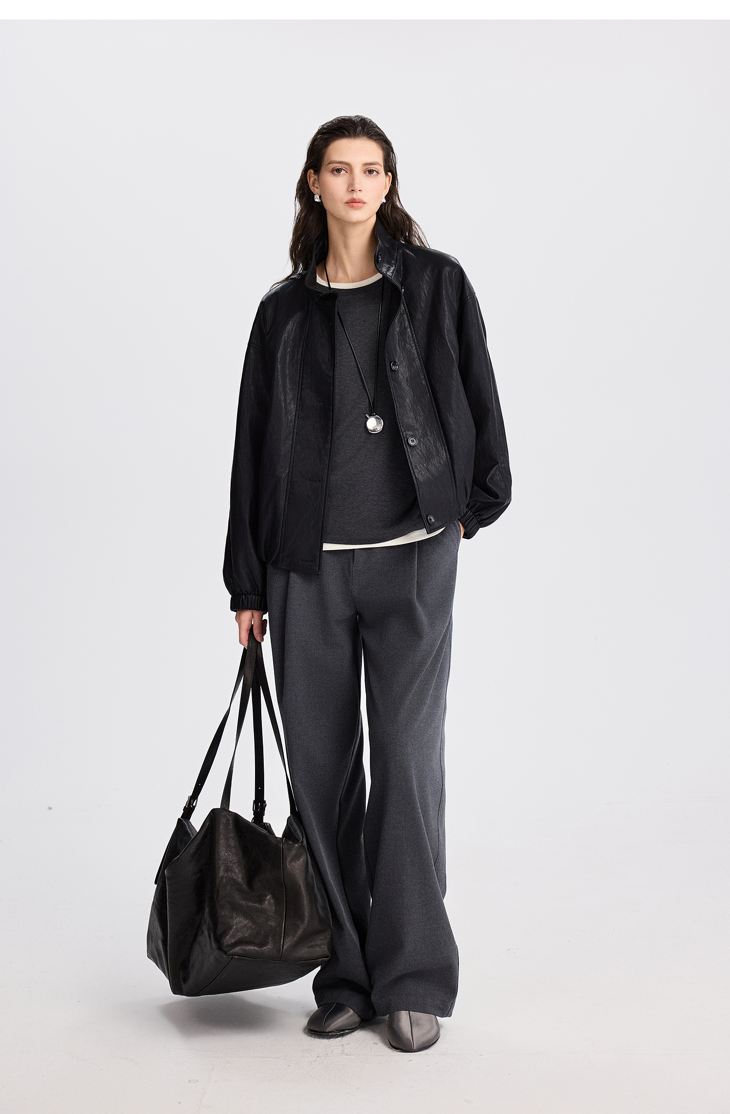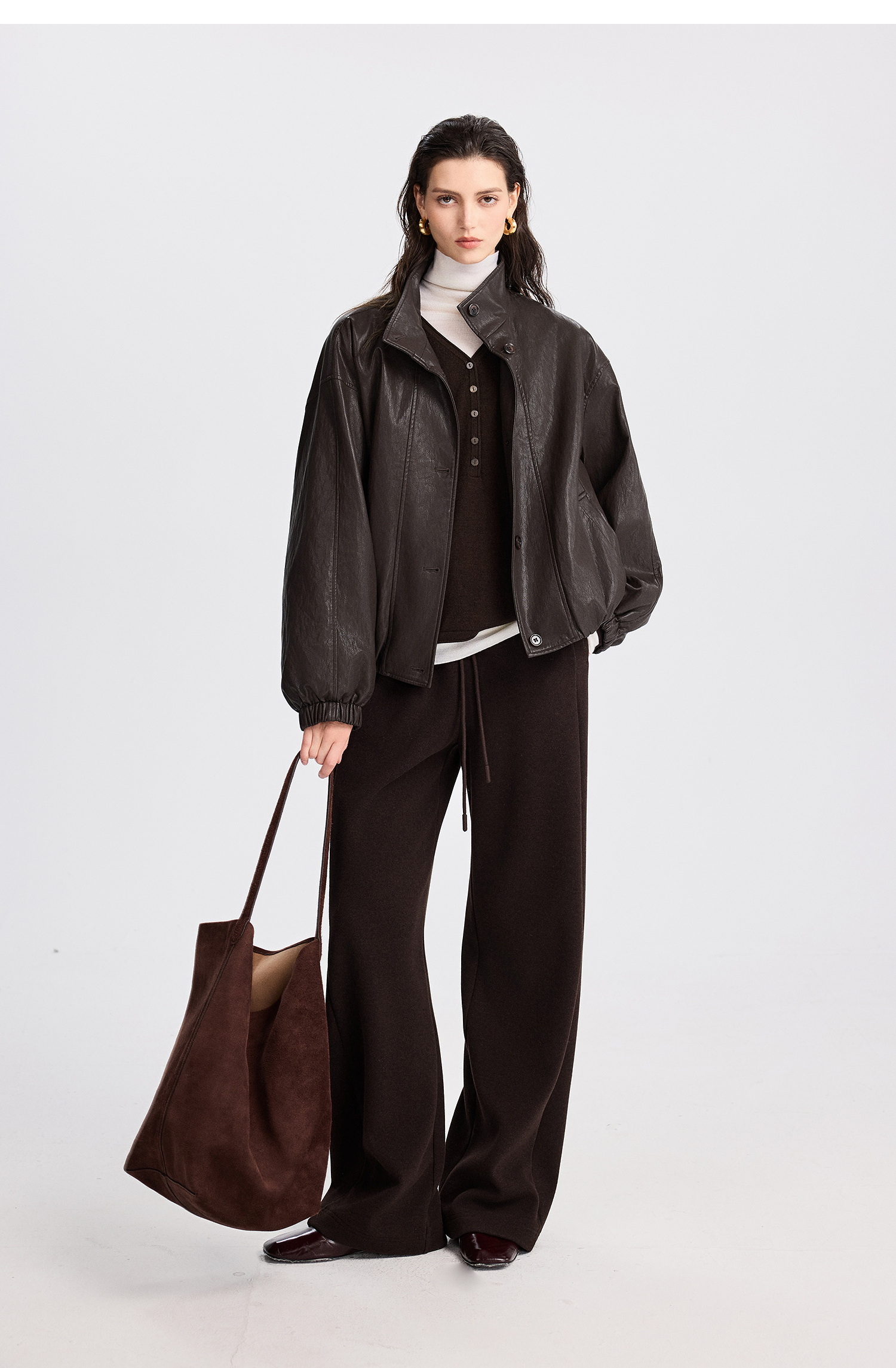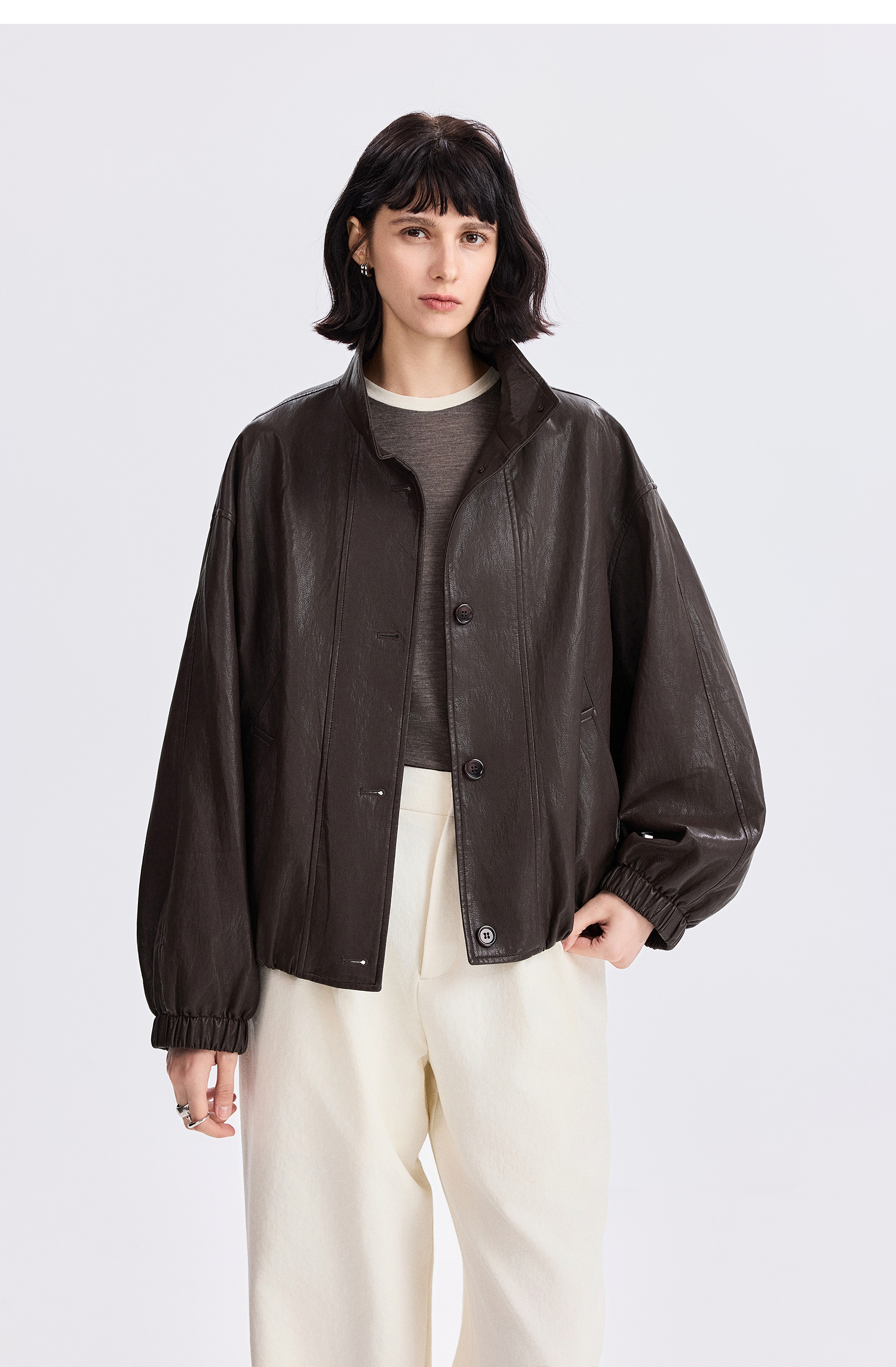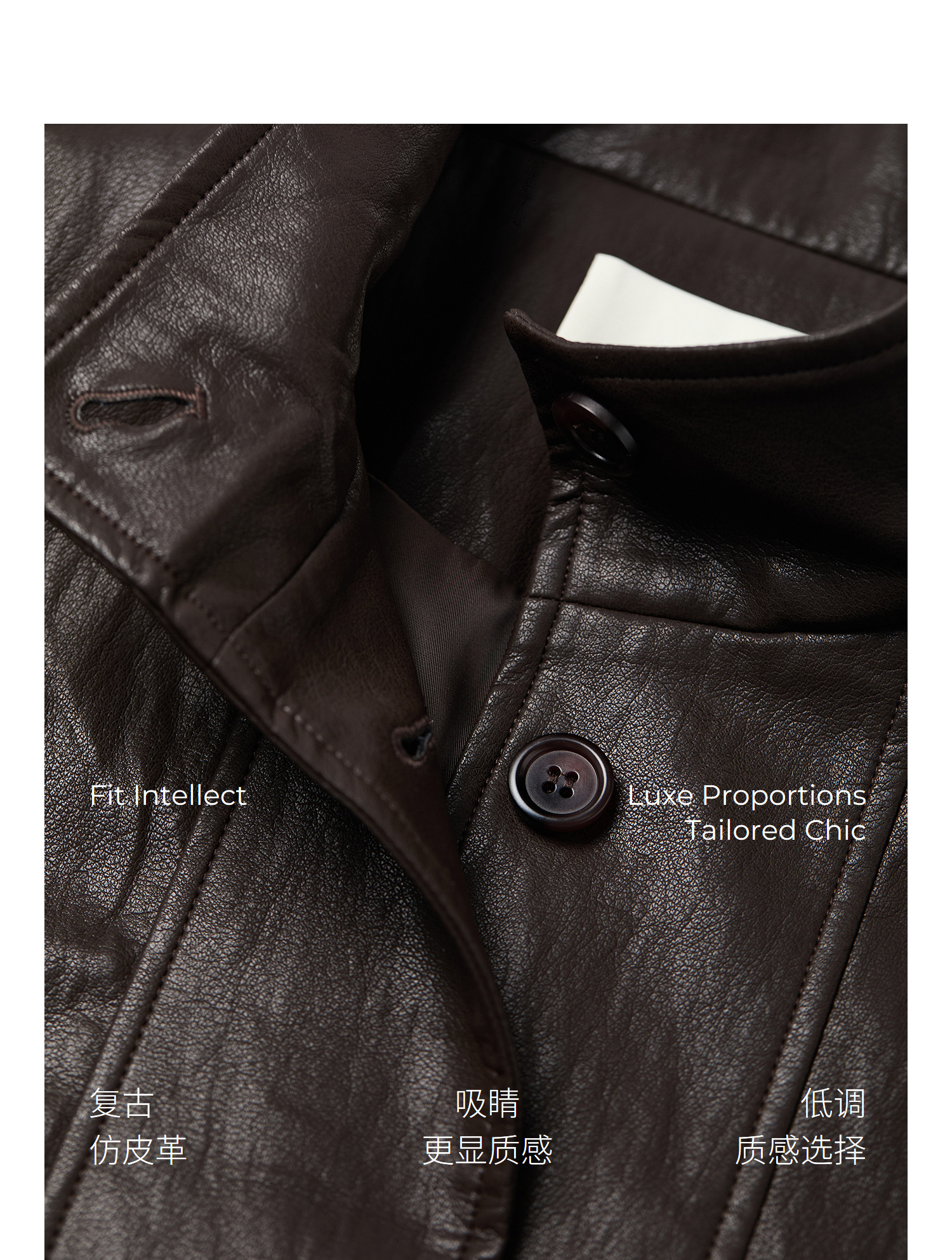 棉仓366607027立领宽松PU蛋白皮外套女25秋冬肌理感廓形显瘦机车皮夹克上衣