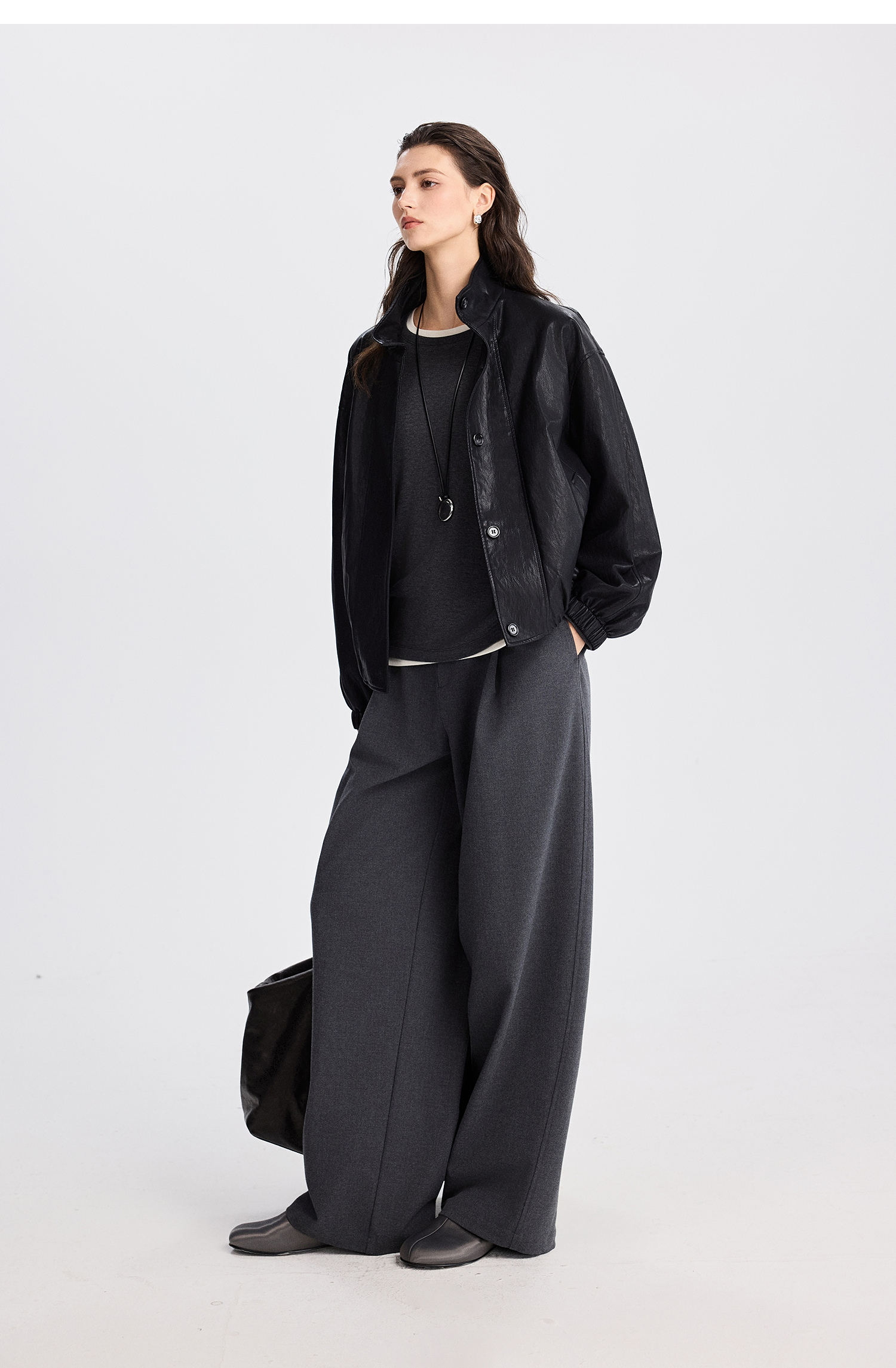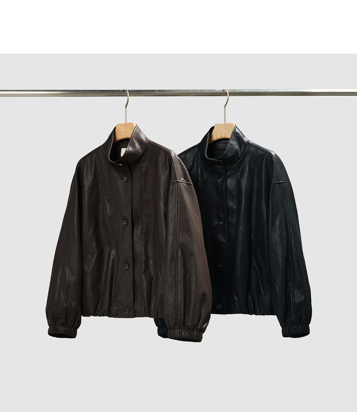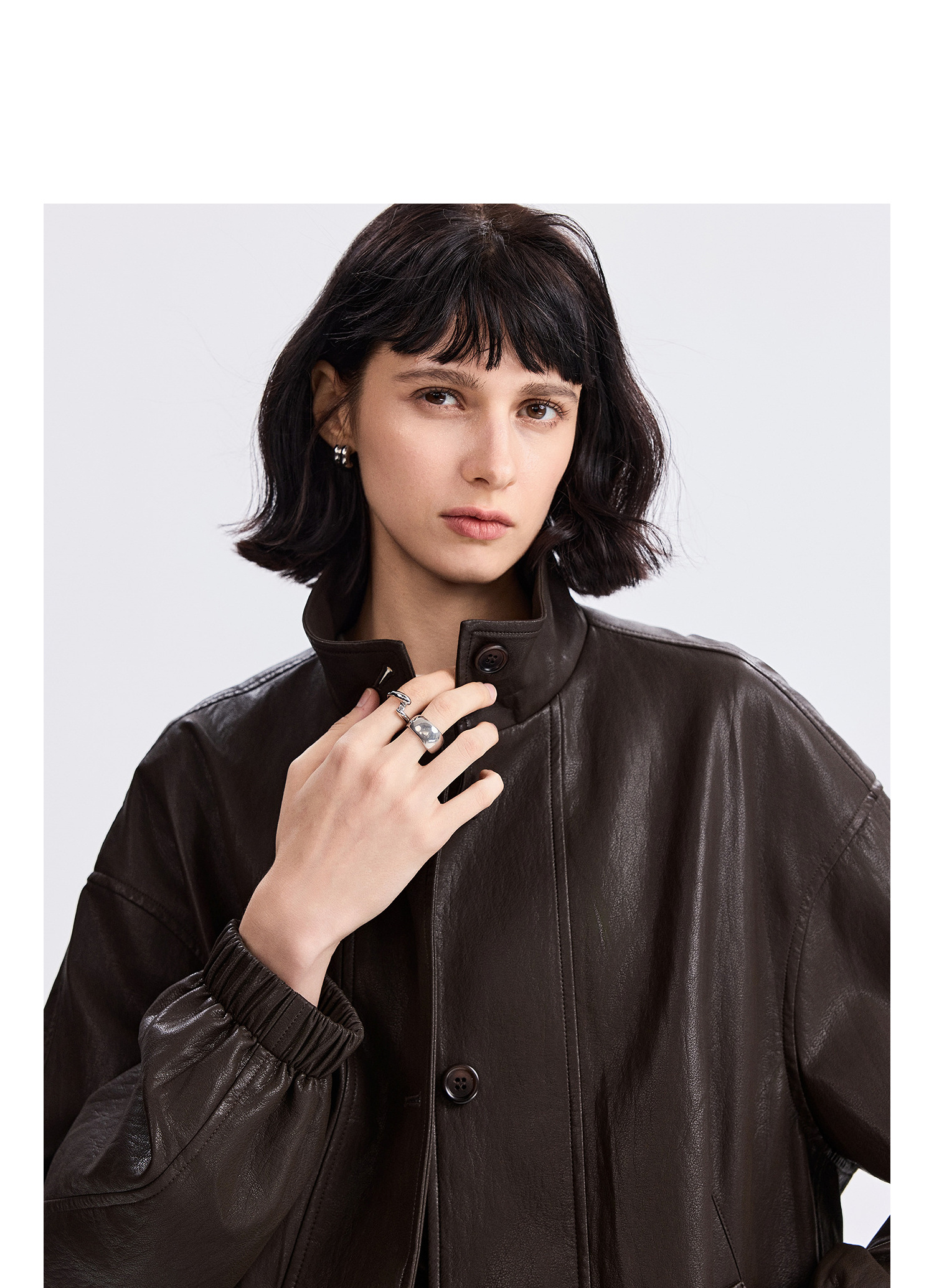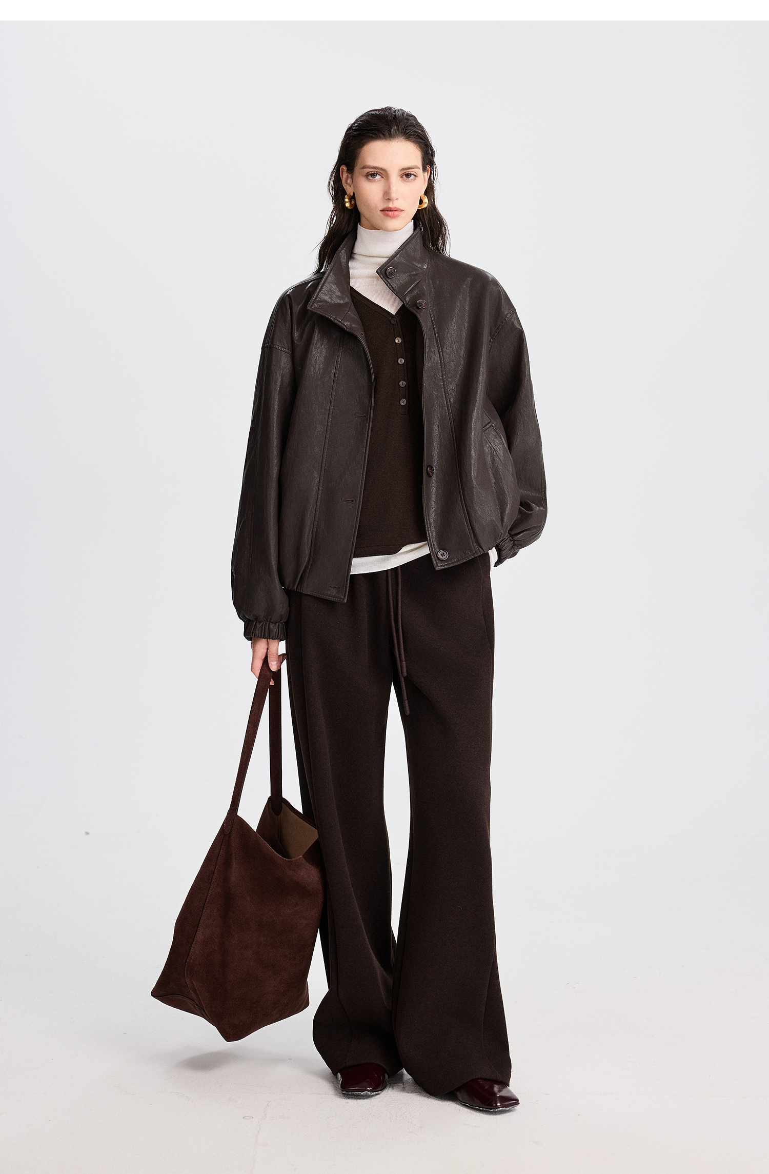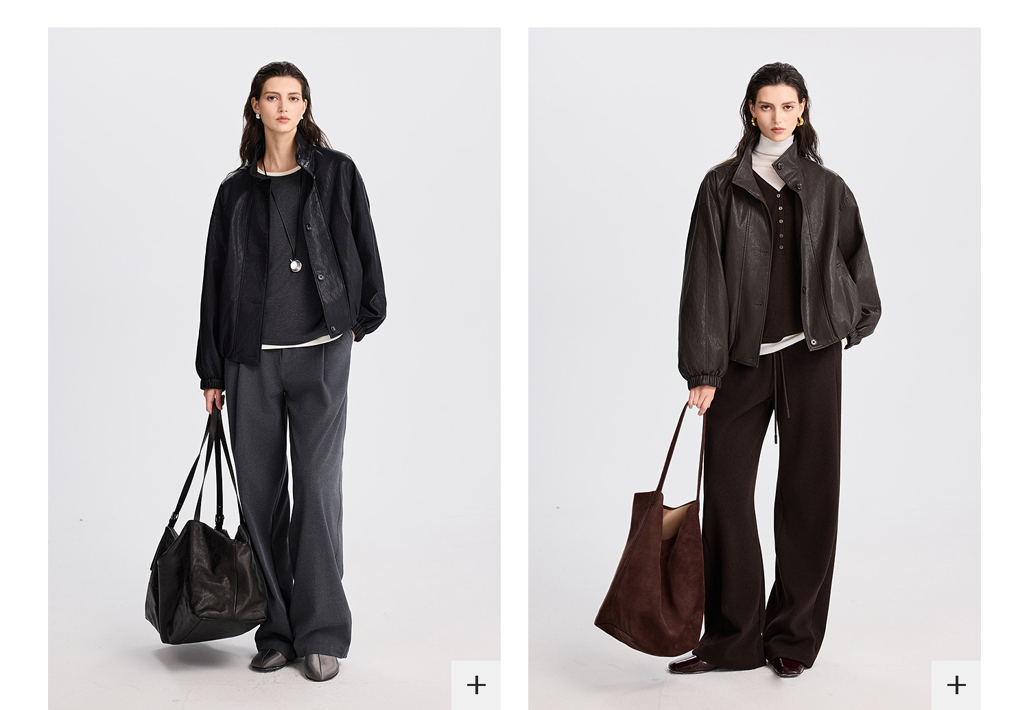 棉仓366607027立领宽松PU蛋白皮外套女25秋冬肌理感廓形显瘦机车皮夹克上衣