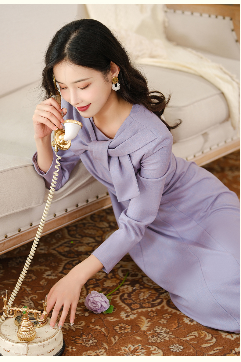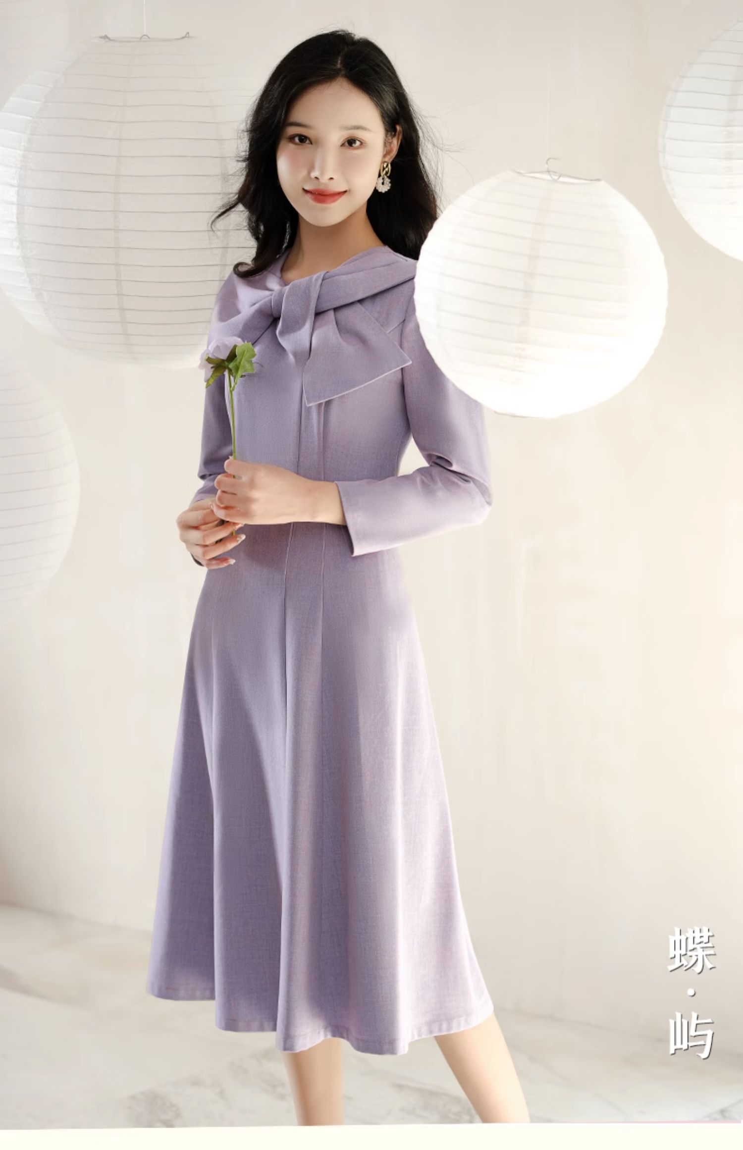 上海逸红颜蝶屿2025年春季新款连衣裙女花纱TR面料蝴蝶结设计文艺