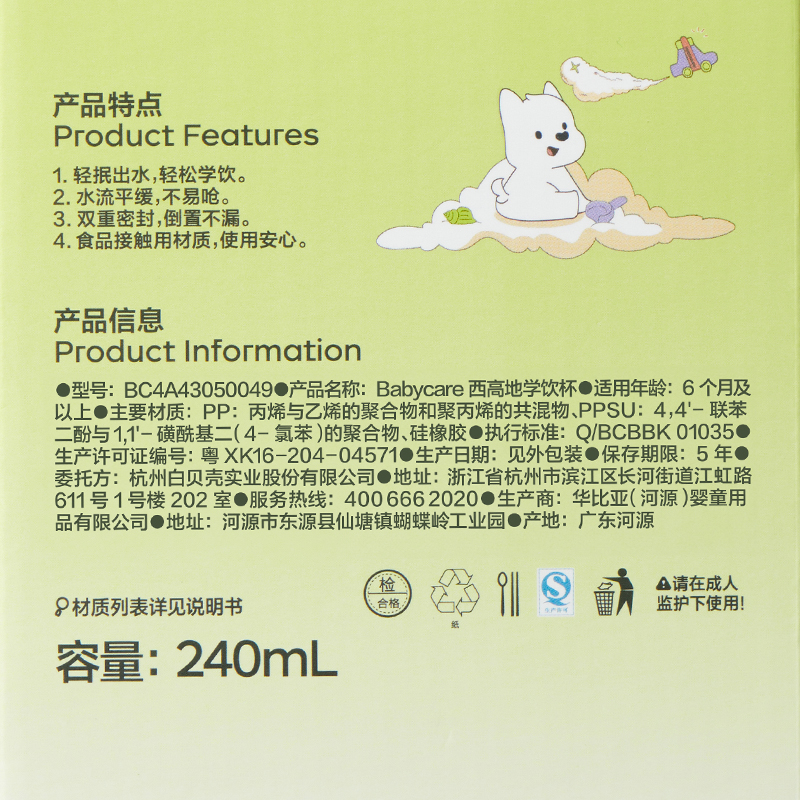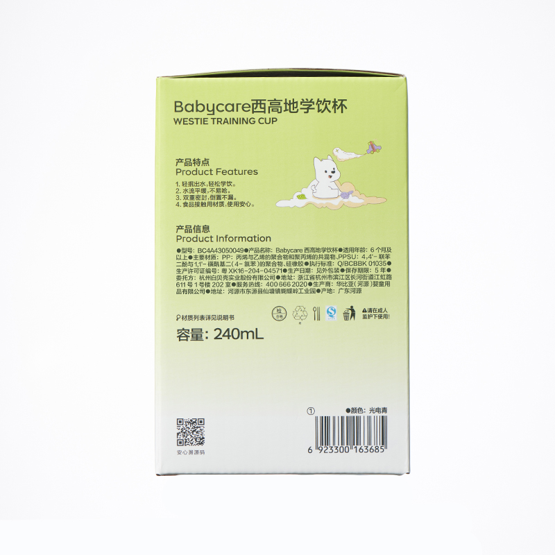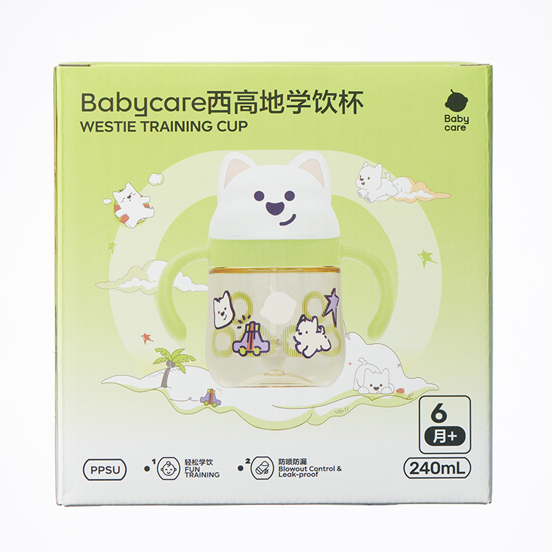 Babycare240ml西高地学饮杯PPSU款-光电青/欧泊粉