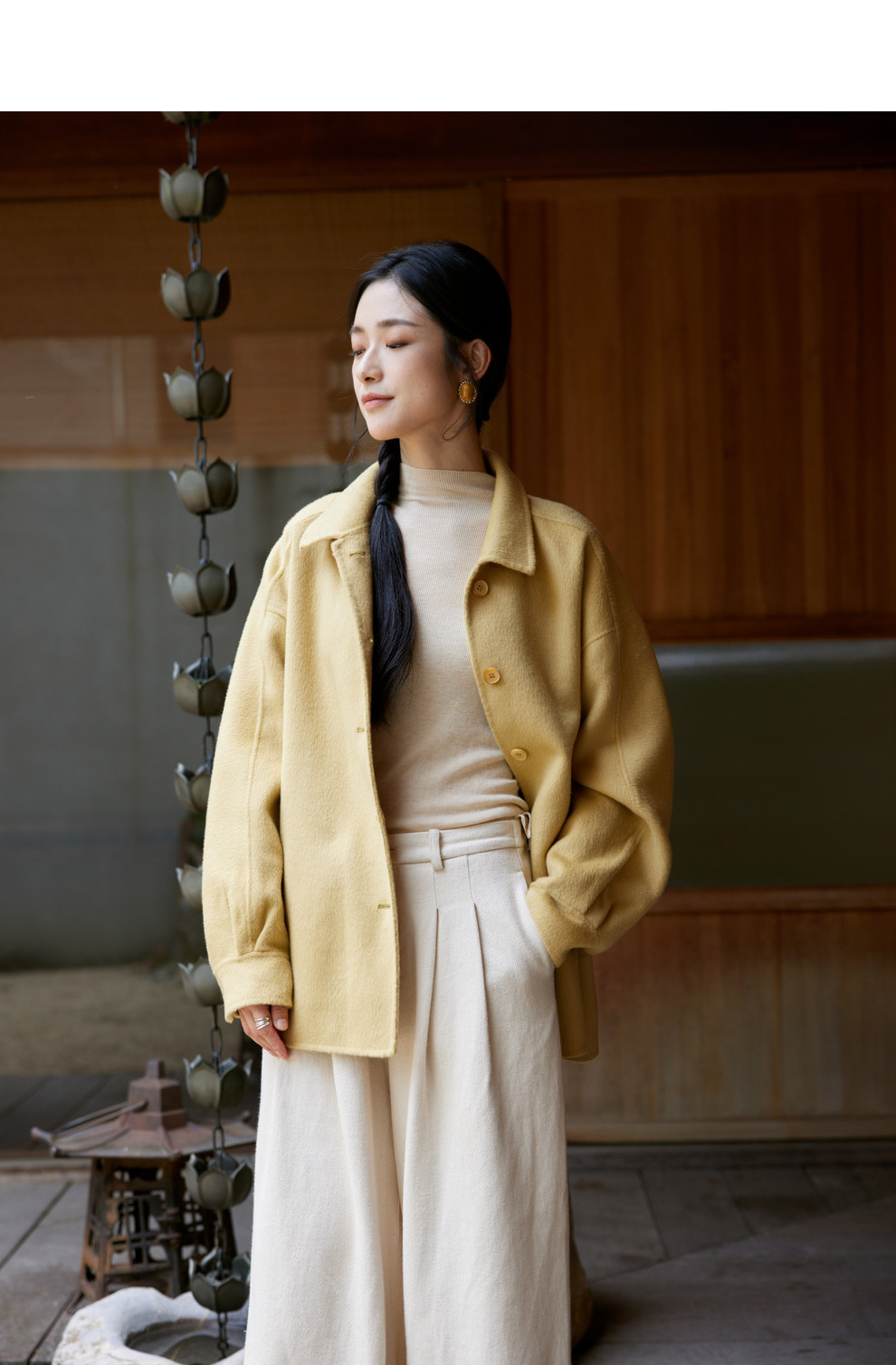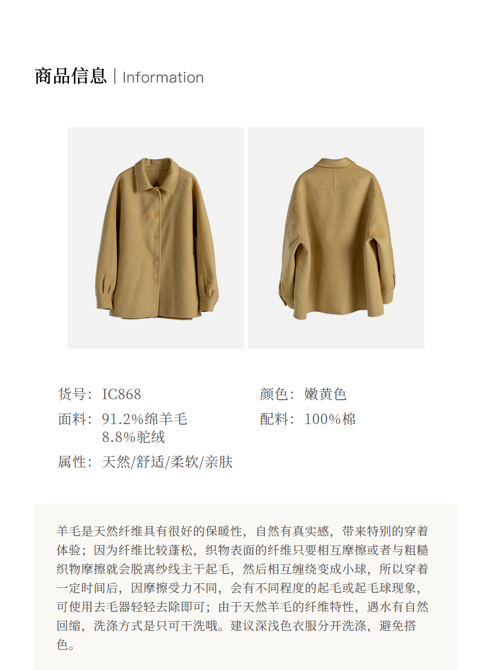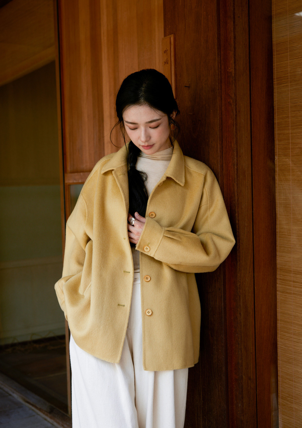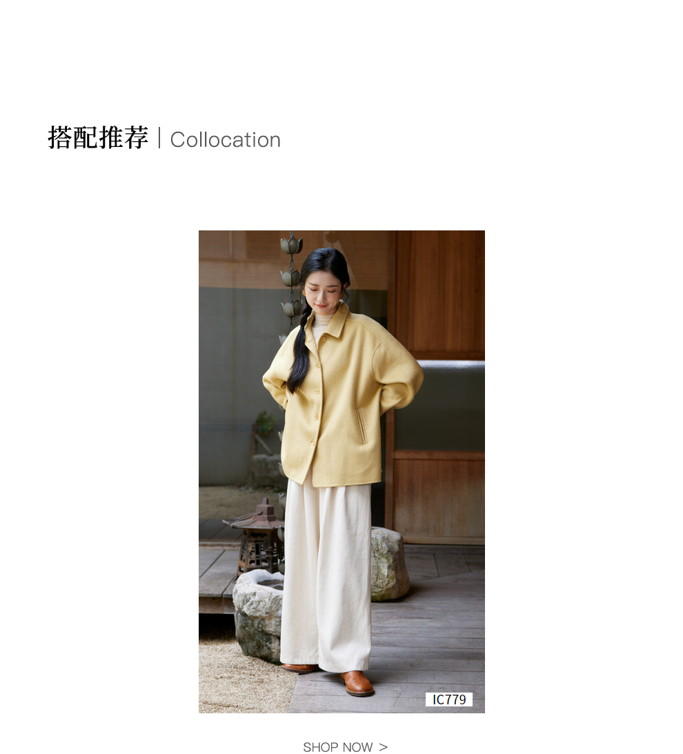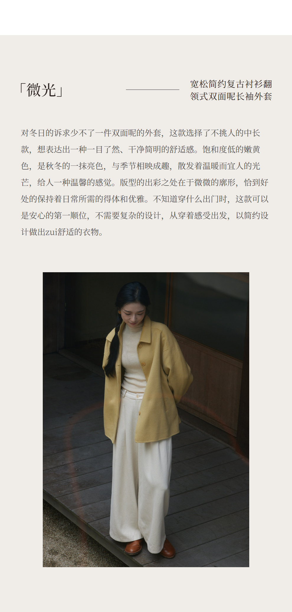 绽放868朵/嫩黄色减龄羊羔毛驼绒双面呢大衣简约大气通勤百搭外套