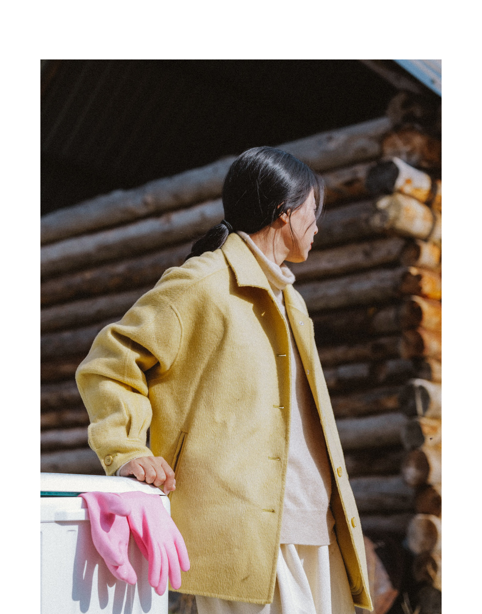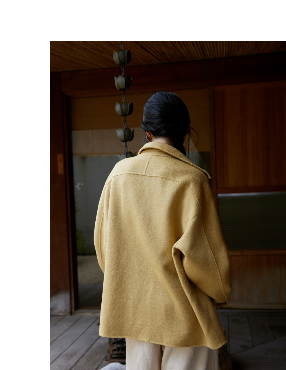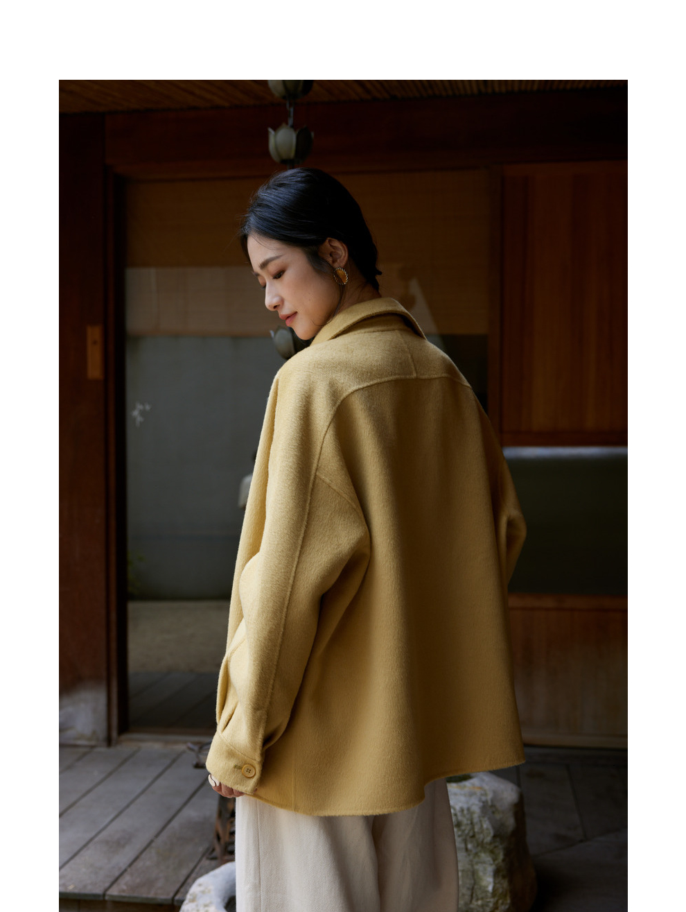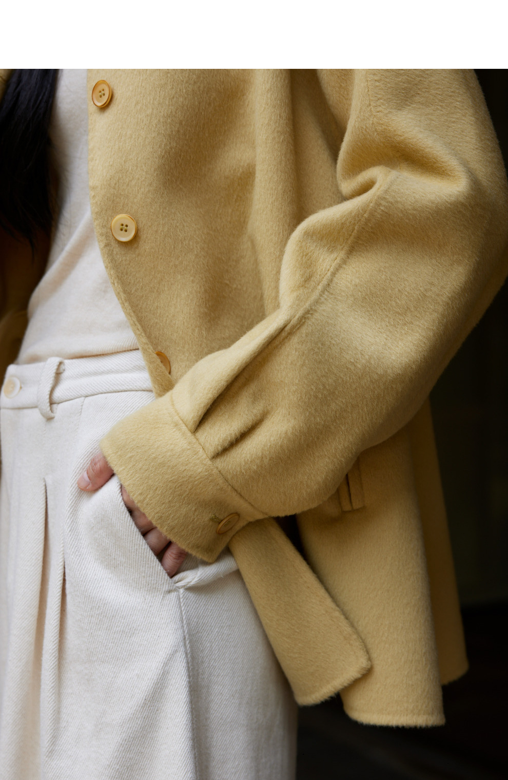绽放868朵/嫩黄色减龄羊羔毛驼绒双面呢大衣简约大气通勤百搭外套