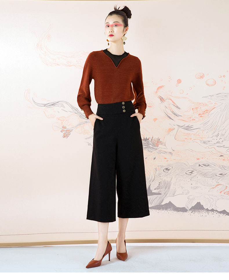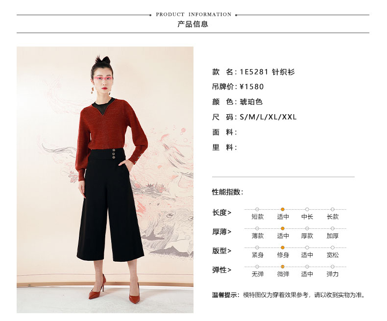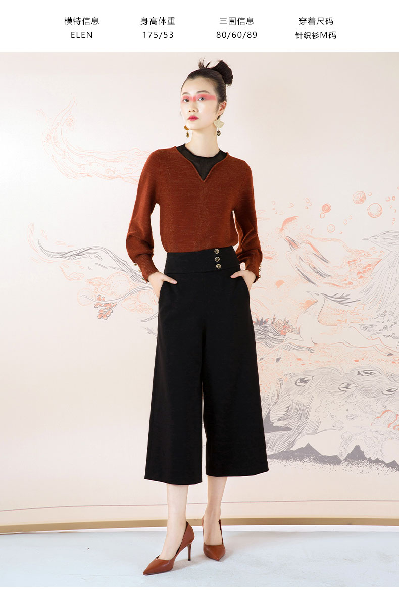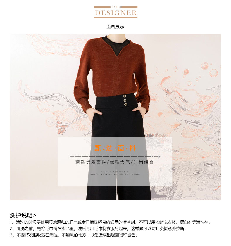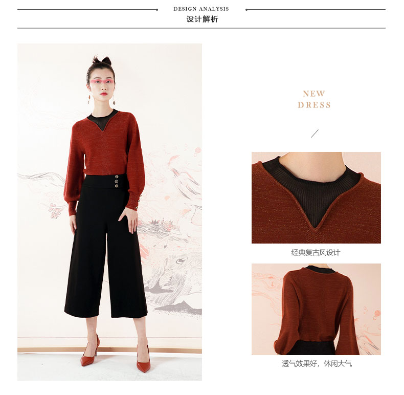 琥珀色时尚拼接泡泡袖琥珀色针织衫--修姱--浪漫觉醒《离骚》1E5281
