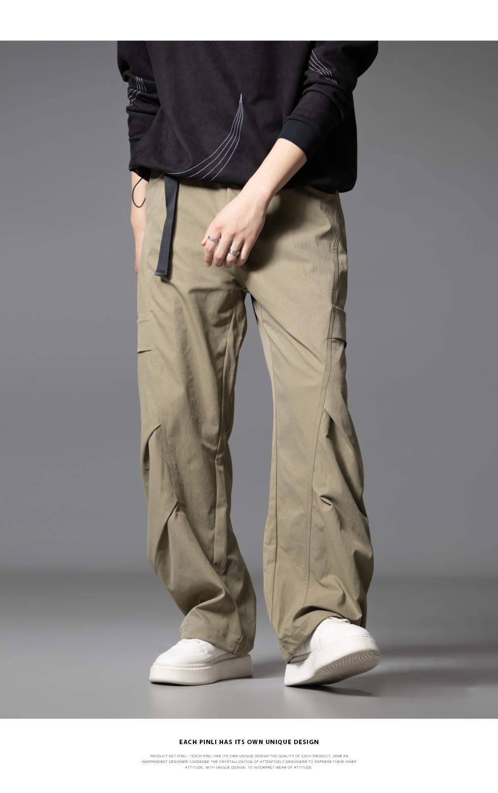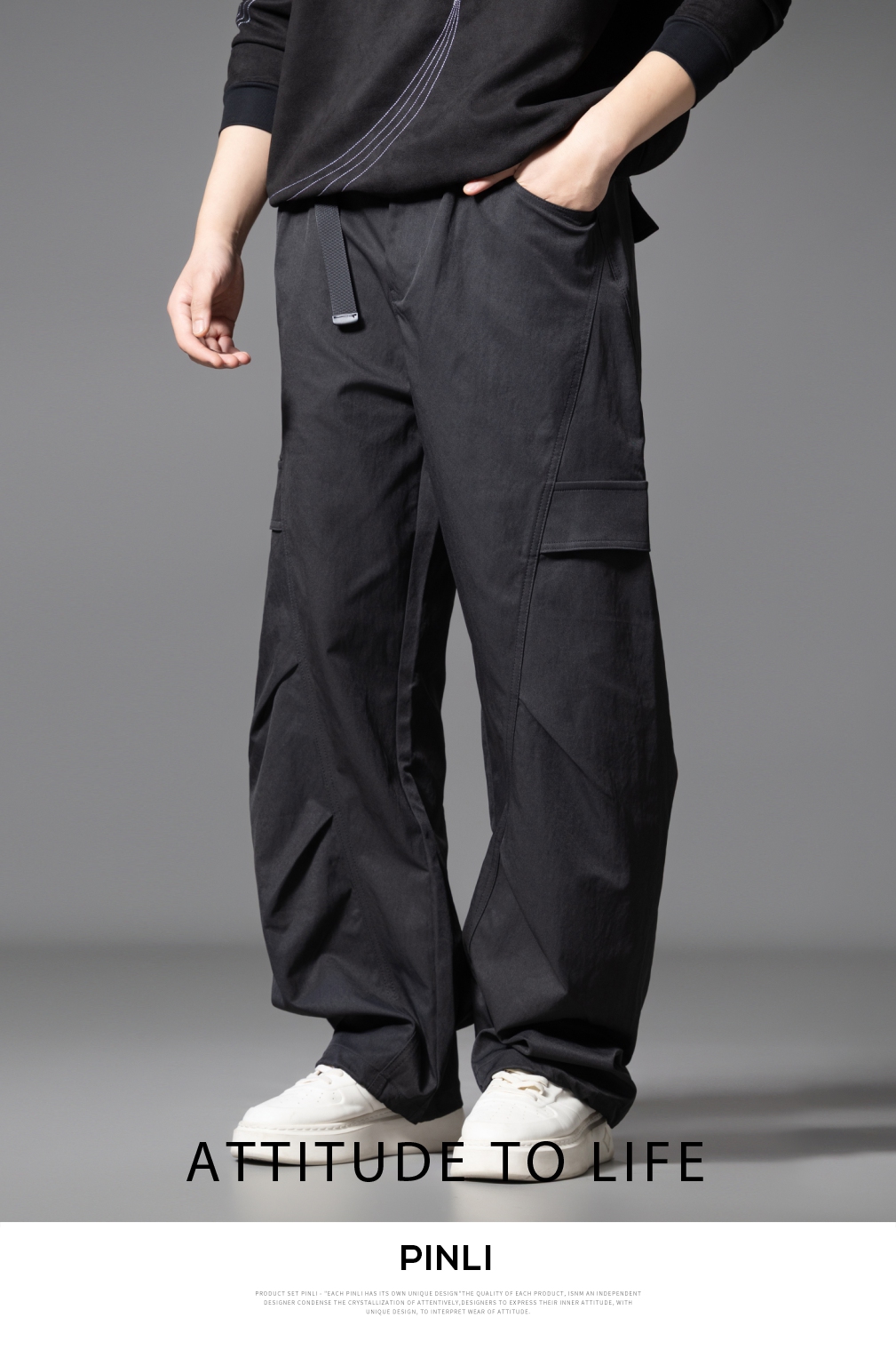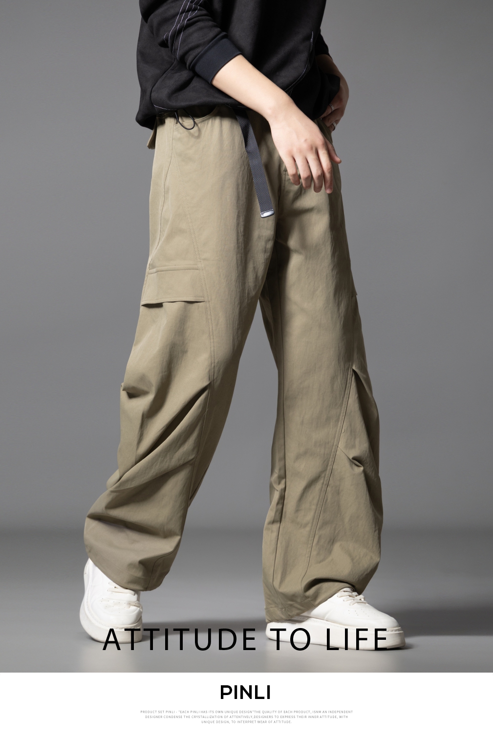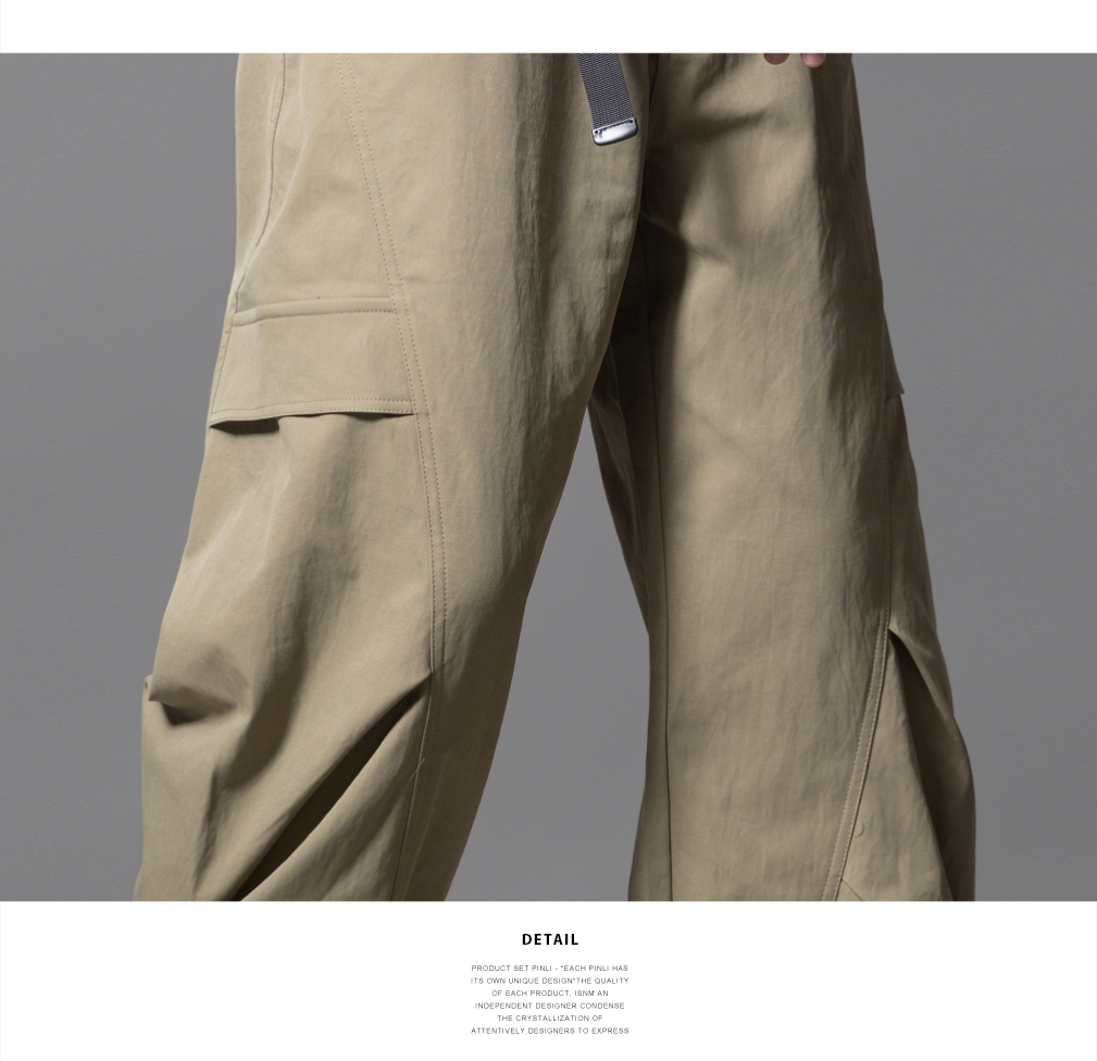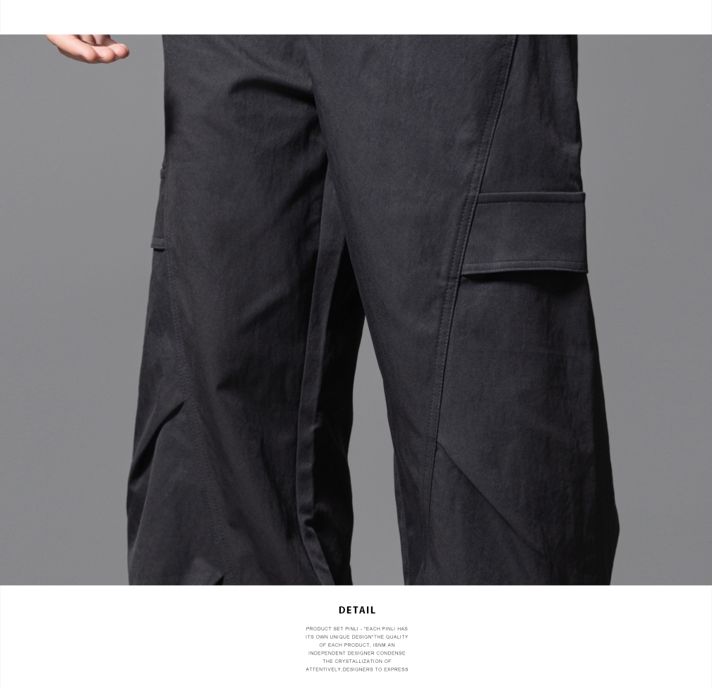 PINLI品立春季新款设计感褶皱直筒工装裤男士户外休闲长裤潮GD253117019