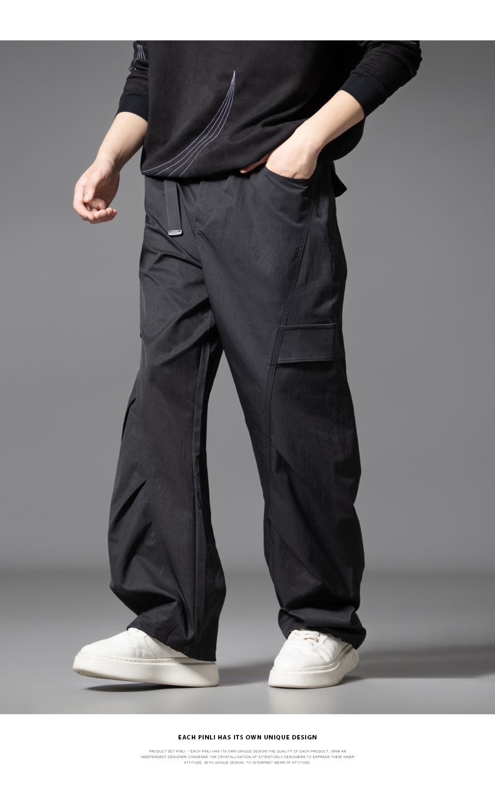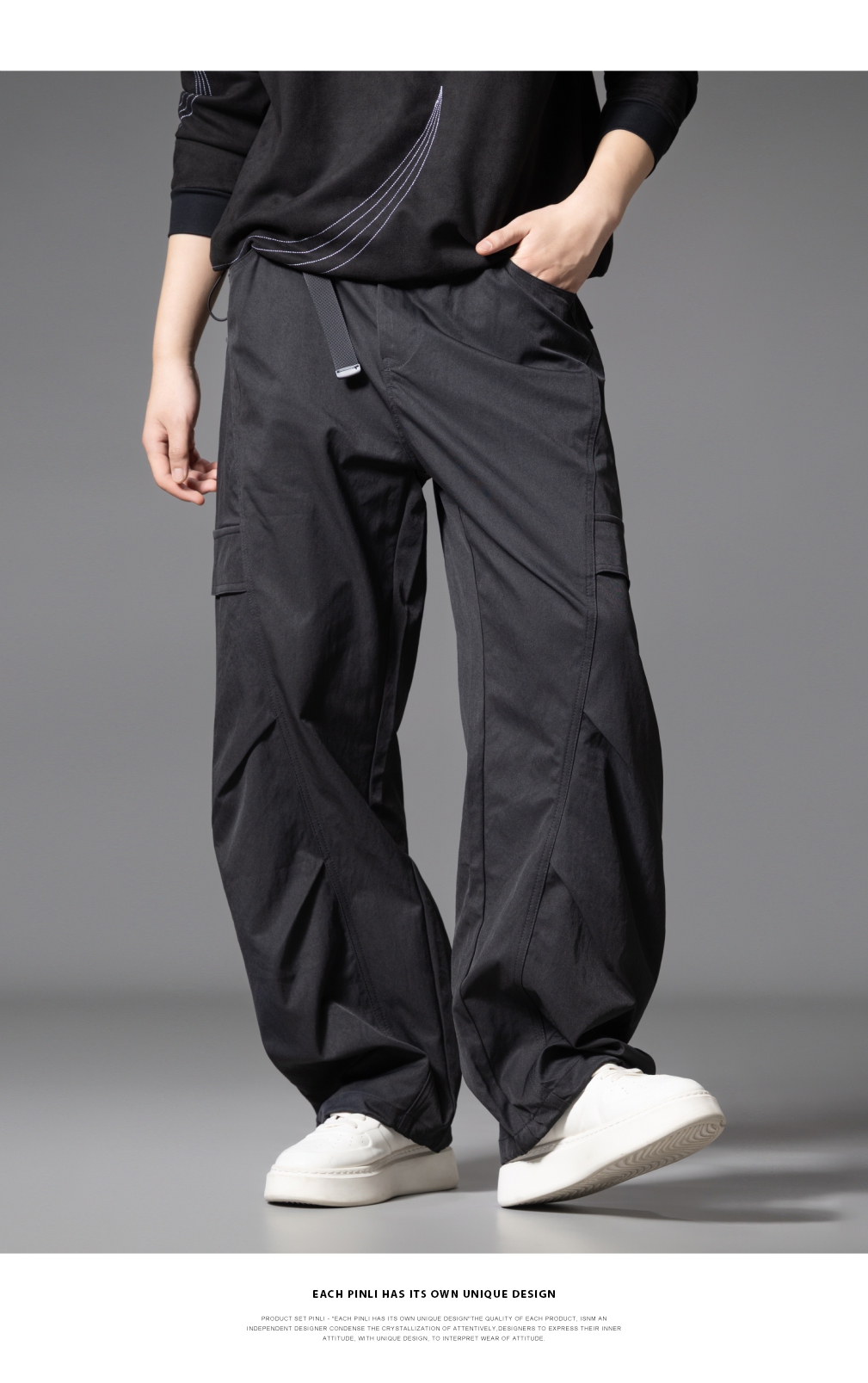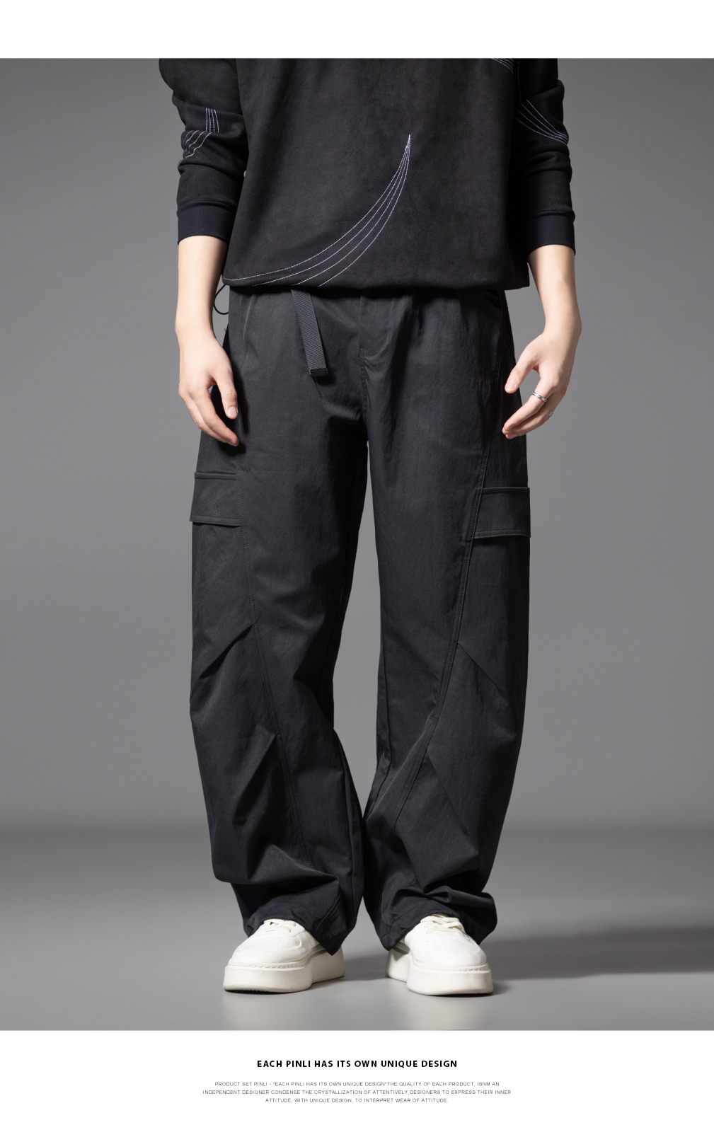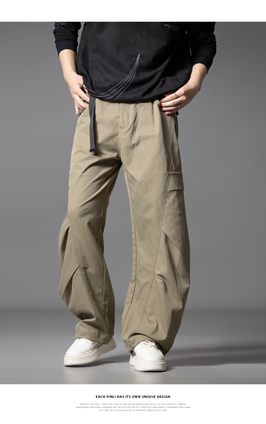 PINLI品立春季新款设计感褶皱直筒工装裤男士户外休闲长裤潮GD253117019
