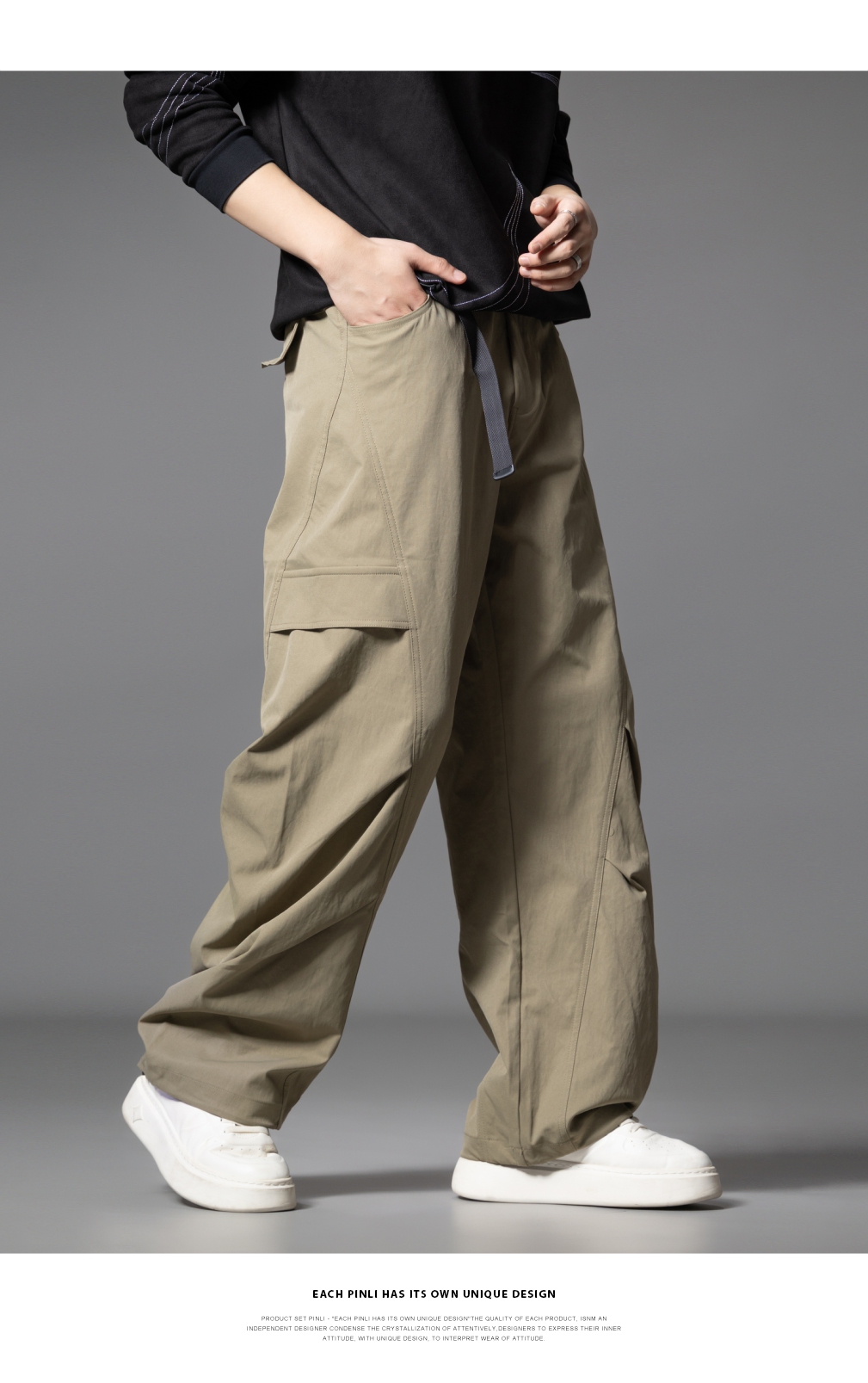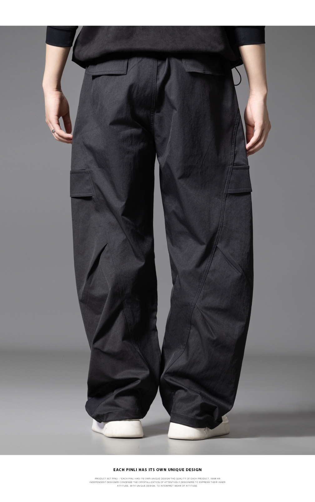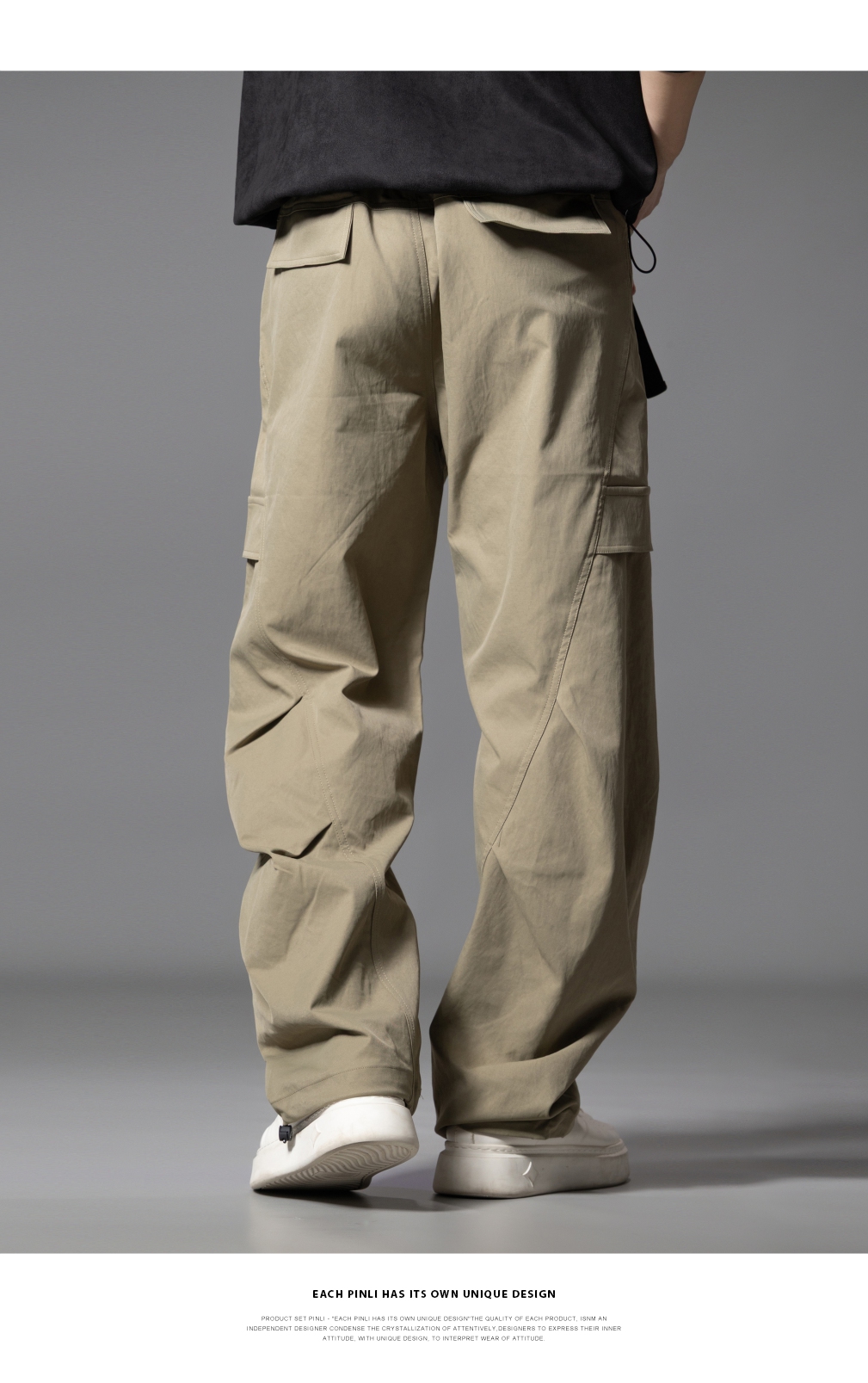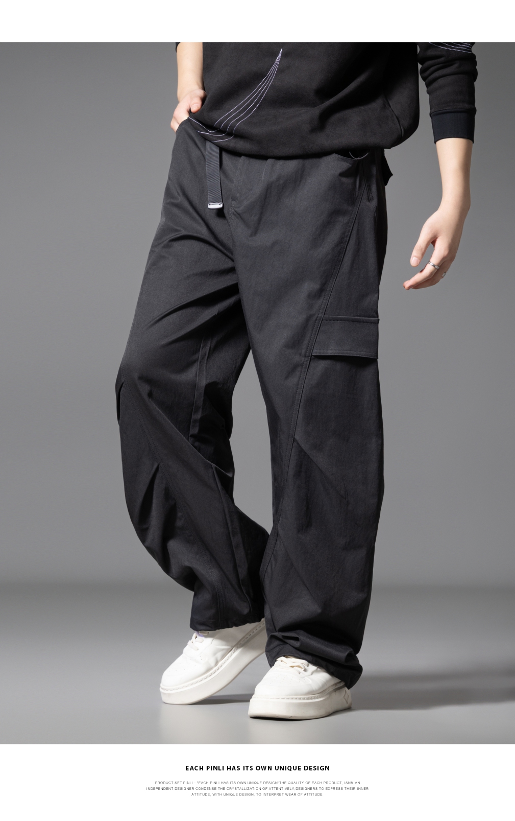 PINLI品立春季新款设计感褶皱直筒工装裤男士户外休闲长裤潮GD253117019