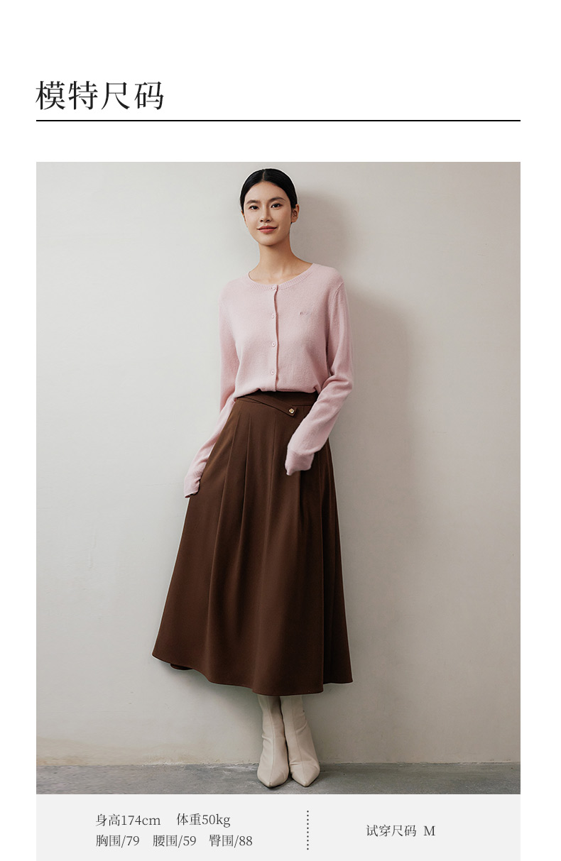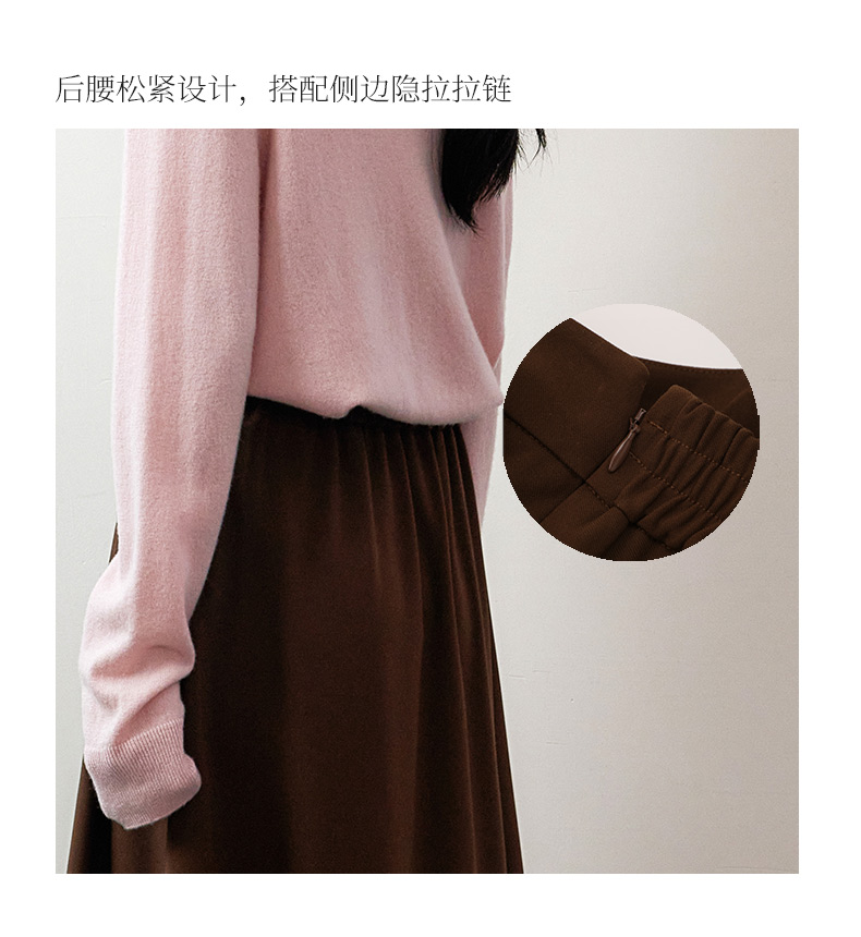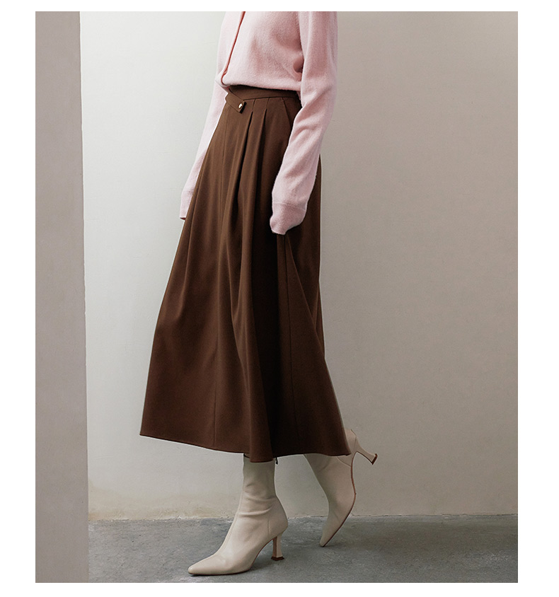玳莎斜腰袢设计感A字半身裙2024秋冬新款美拉德法式复古显瘦伞裙 ED34301