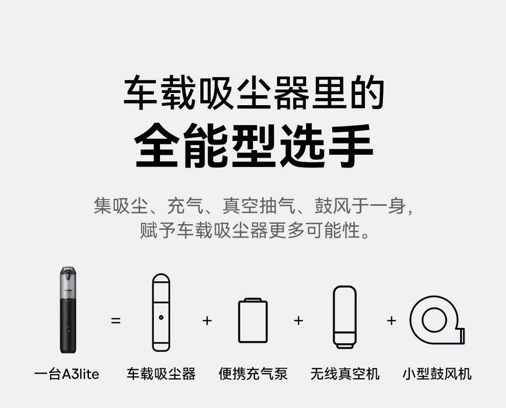 倍思 A3lite车载吸尘器 四合一多功能