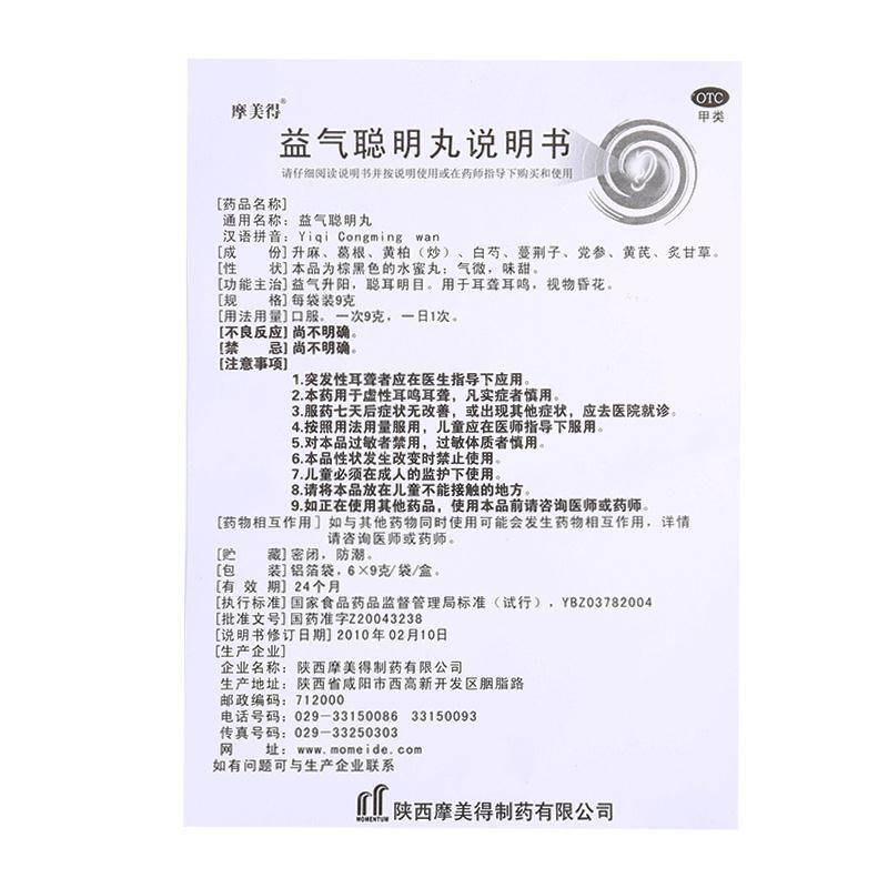 摩美得益气聪明丸9g*6袋 益气升阳聪耳明目耳聋耳鸣视物昏花