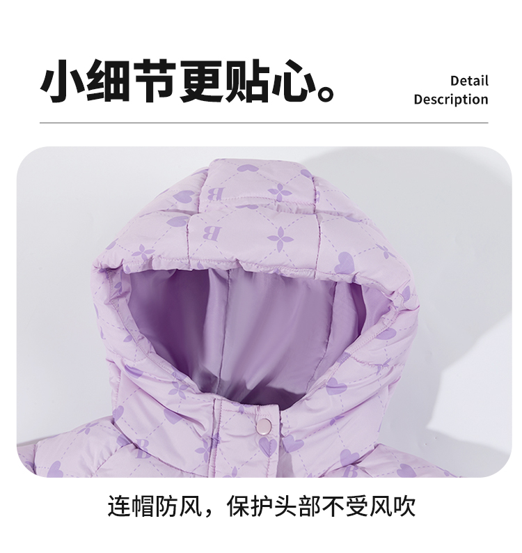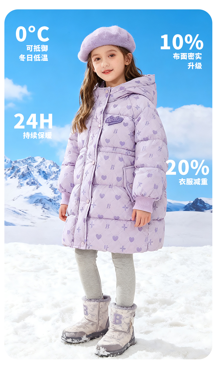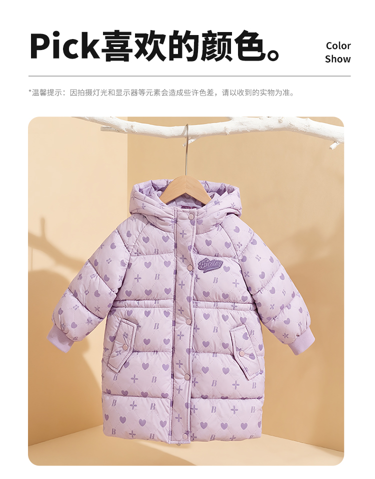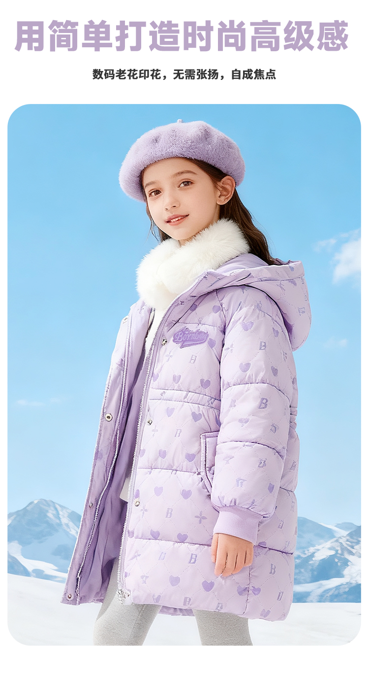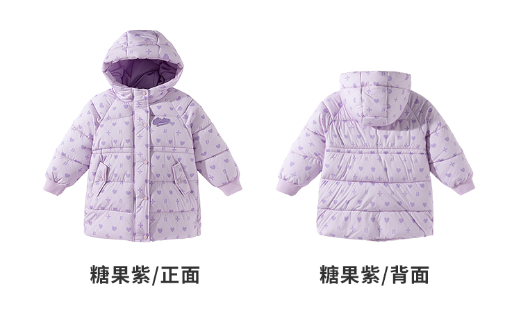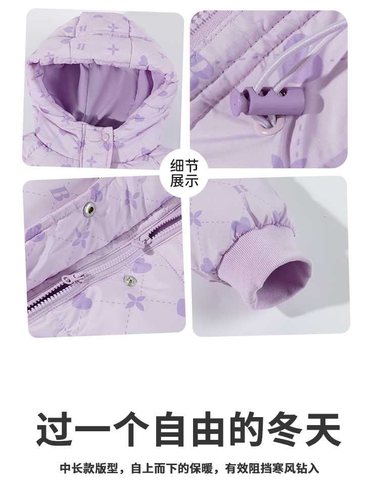 贝贝怡童装女童中长款棉服加厚保暖2025冬季新款中大童连帽外套ZB4ES058