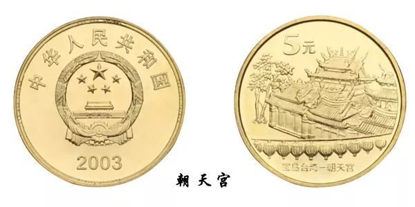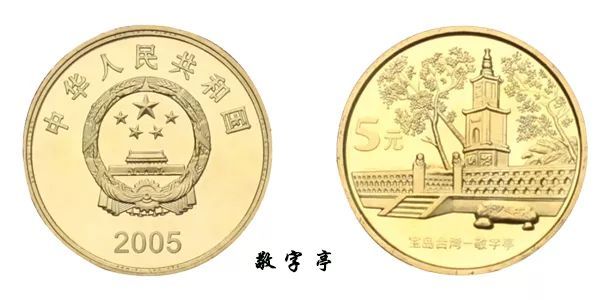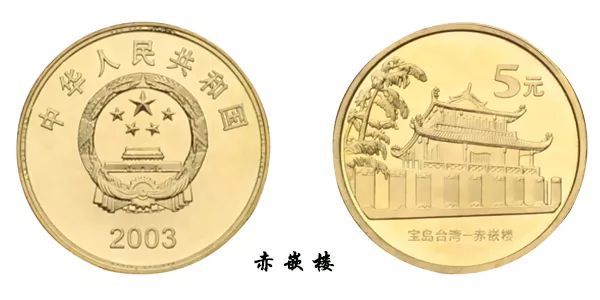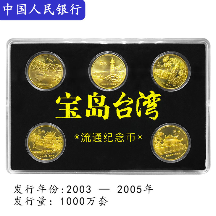 由中国人民银行发行宝岛台湾名胜古迹流通纪念币,共五枚,由沈阳造币厂铸造。图案分别为朝天宫、赤嵌楼、鹅銮鼻、日月潭、敬字亭。