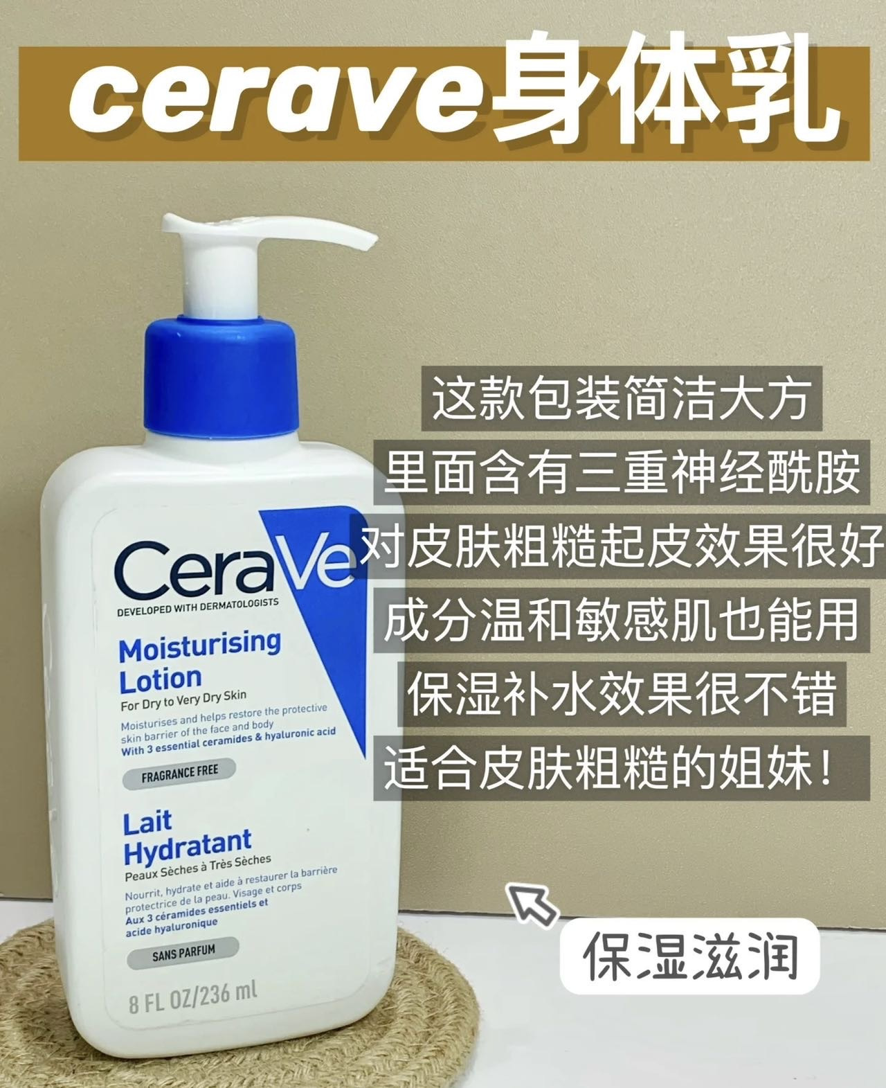 【品名】CeraVe适乐肤C乳保湿修护乳神经酰胺氨基酸洁