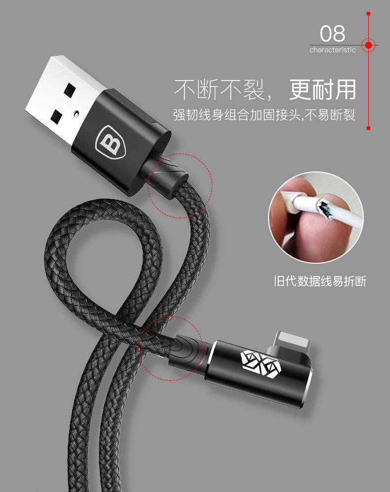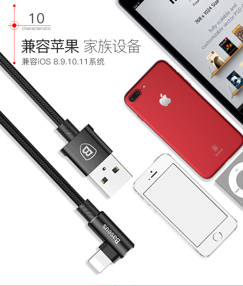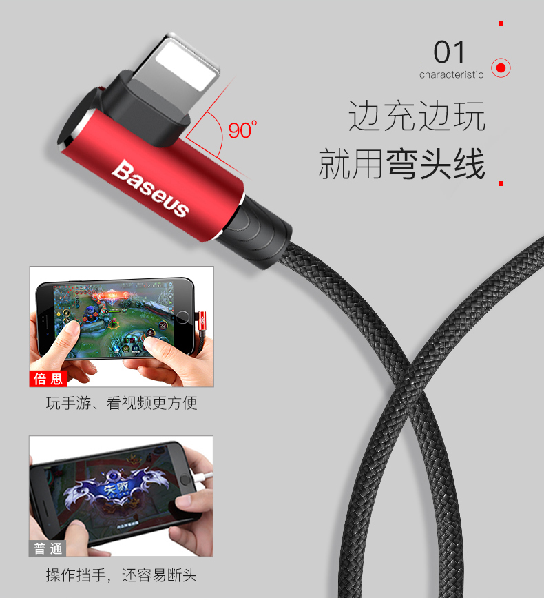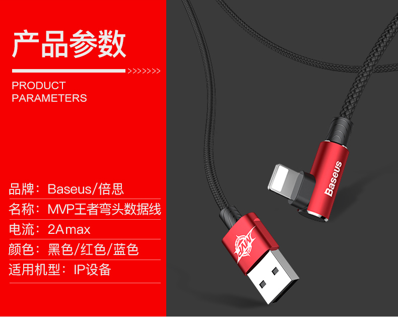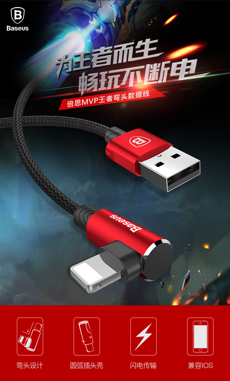 倍思 MVP王者弯头数据线USB -A转IP 2A