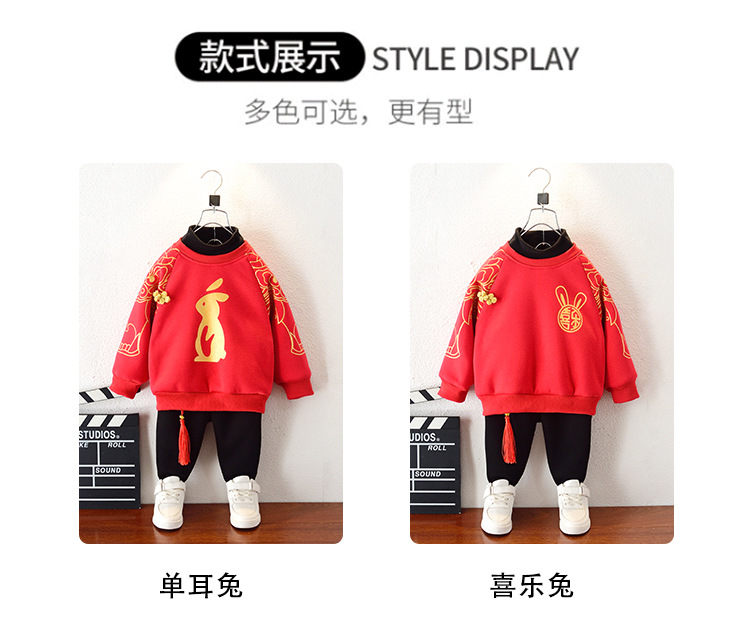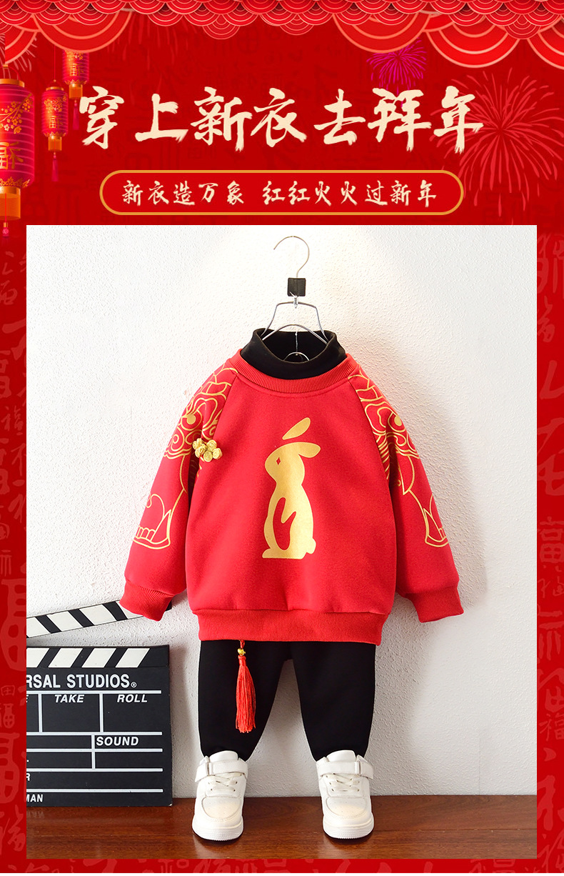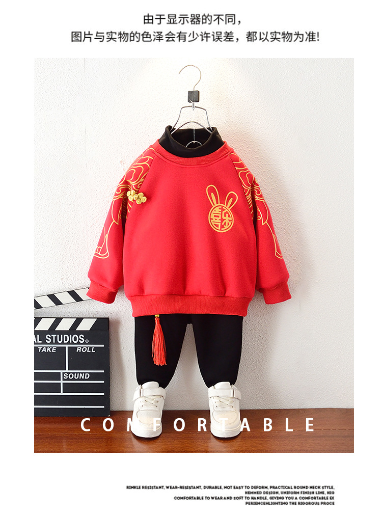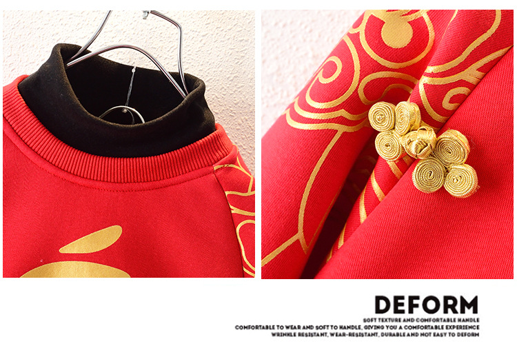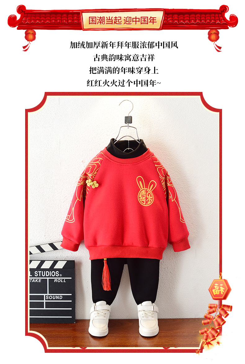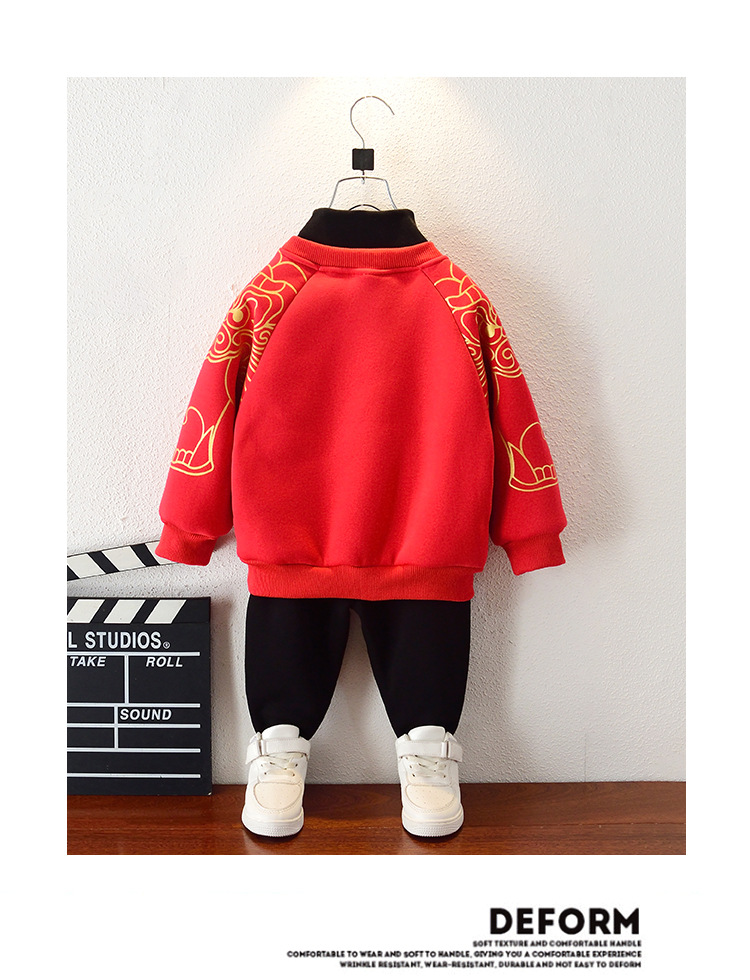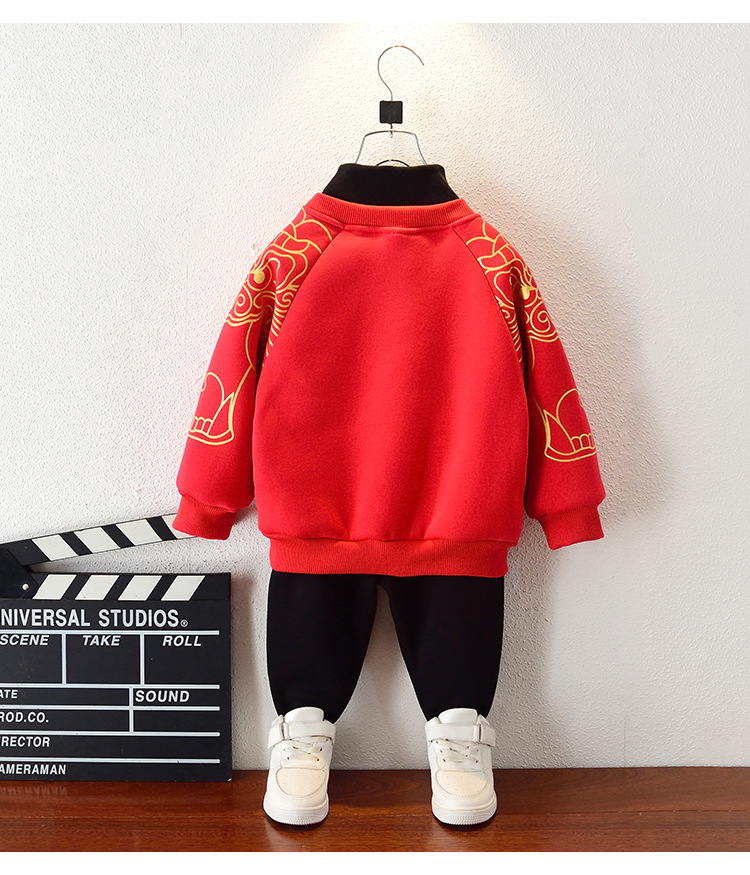 男童拜年服唐装小孩过年衣服冬装宝宝新年装冬季儿童喜庆红色套装