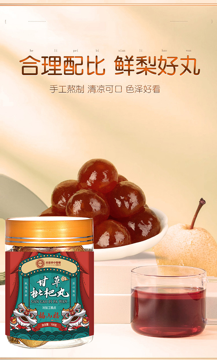 【甄选】甘草枇杷丸真材实料清润可口鲜梨好丸108g*2罐