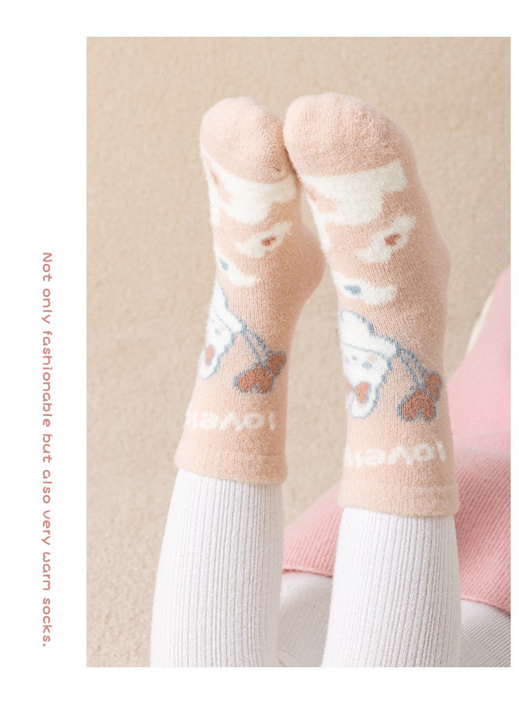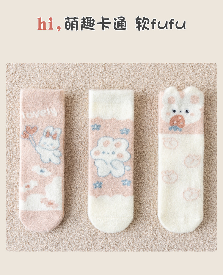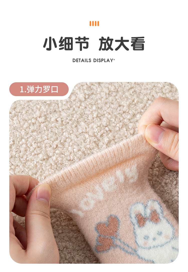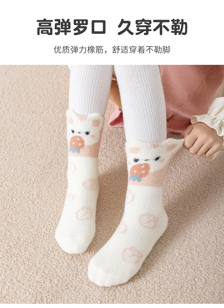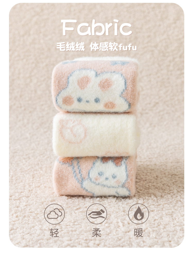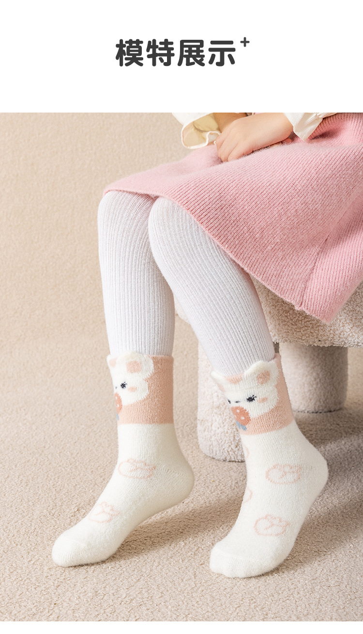 【加绒加厚❗️卡通小兔保暖童袜】宝妈推荐萌趣卡通「软fufu」优质弹力橡筋,舒适穿着不勒脚,儿童袜子冬季加绒加厚,中筒袜女童韩版ins风L
