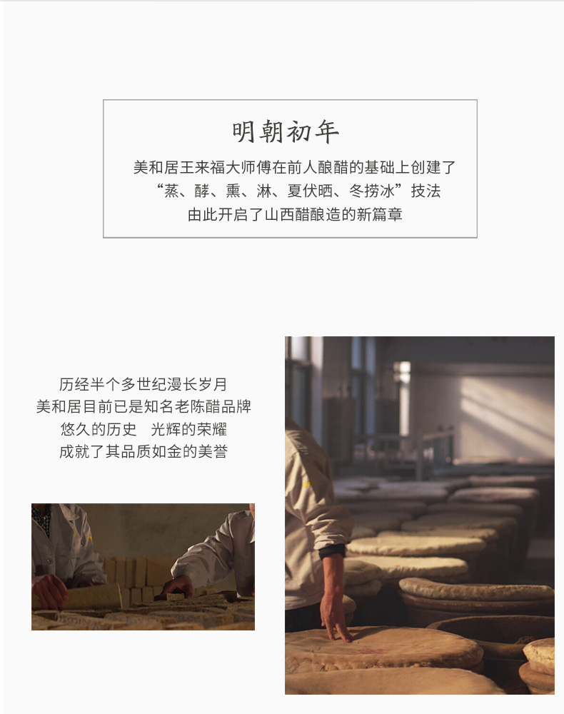 - 美和居始创于1368年,为山西老陈醋开创者,国家级非物质文化遗产酿制技艺,国家地理标志保护产品!