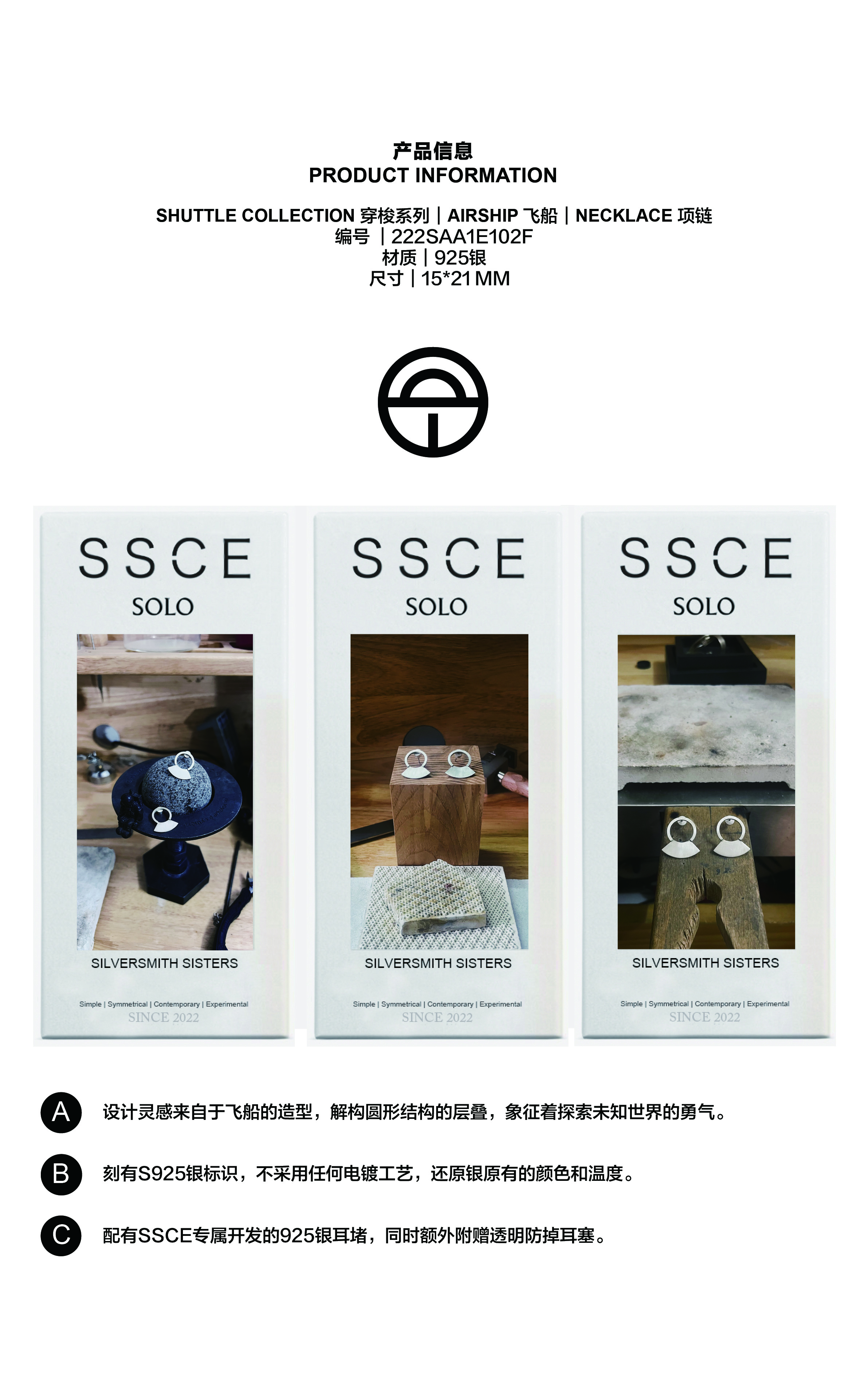 SSCE|222SAA1E102F Earrings飞船耳环15x21mm【AIRSHIP】