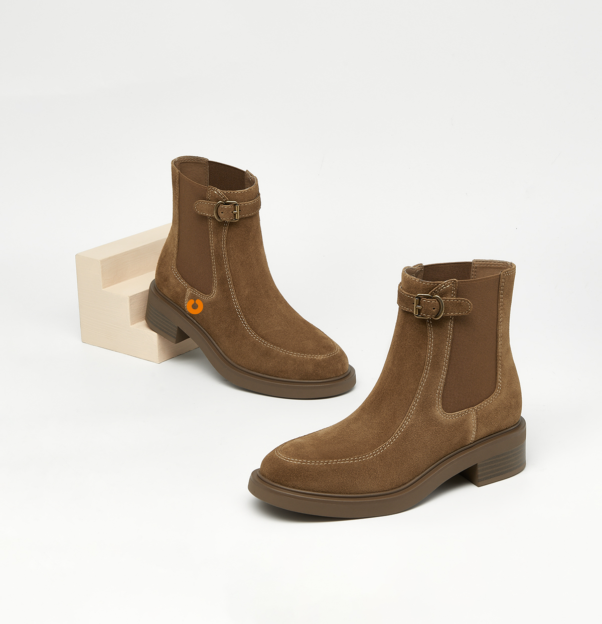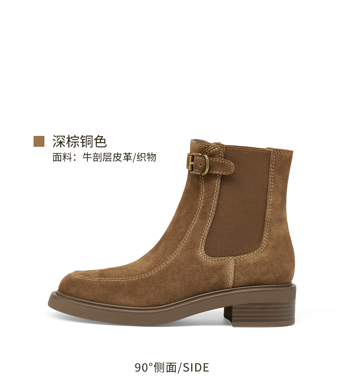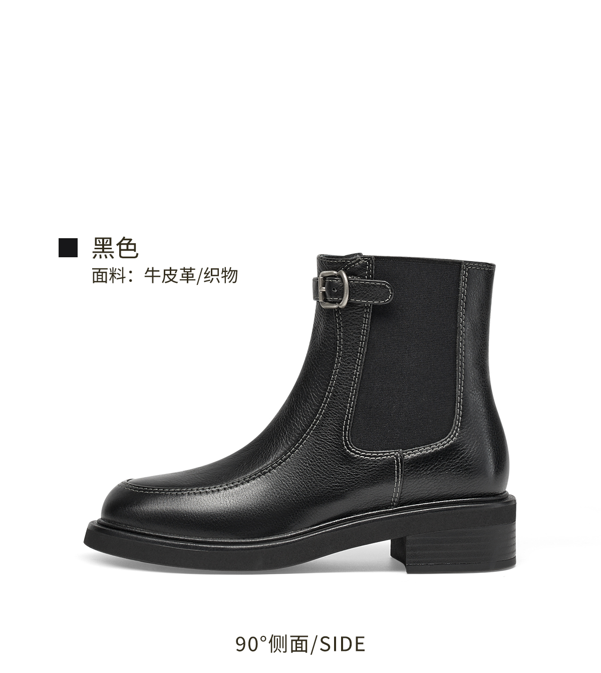 【云粉节】BF楼KISSCAT接吻猫[柏林胶片]复古短靴25冬新粗跟真皮游牧风切尔西靴KA65725-51吊牌价1599活动价899