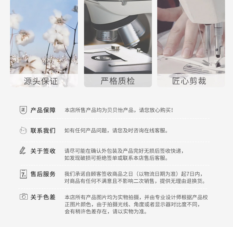 - 贝贝怡专注0-6岁婴幼儿服饰,坚持安全、柔软、舒适的产品理念,为千万中国家庭提供超高品质、安全可靠的婴幼儿服饰产品,妈妈放心,宝宝开心!