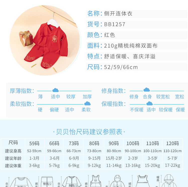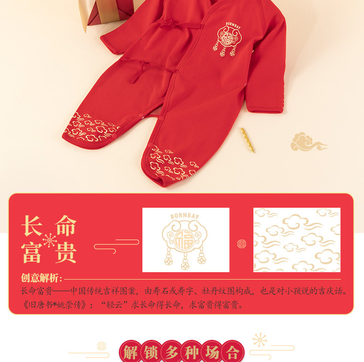 贝贝怡宝宝满月服婴儿服新年中国风春秋连体衣哈衣BB1257