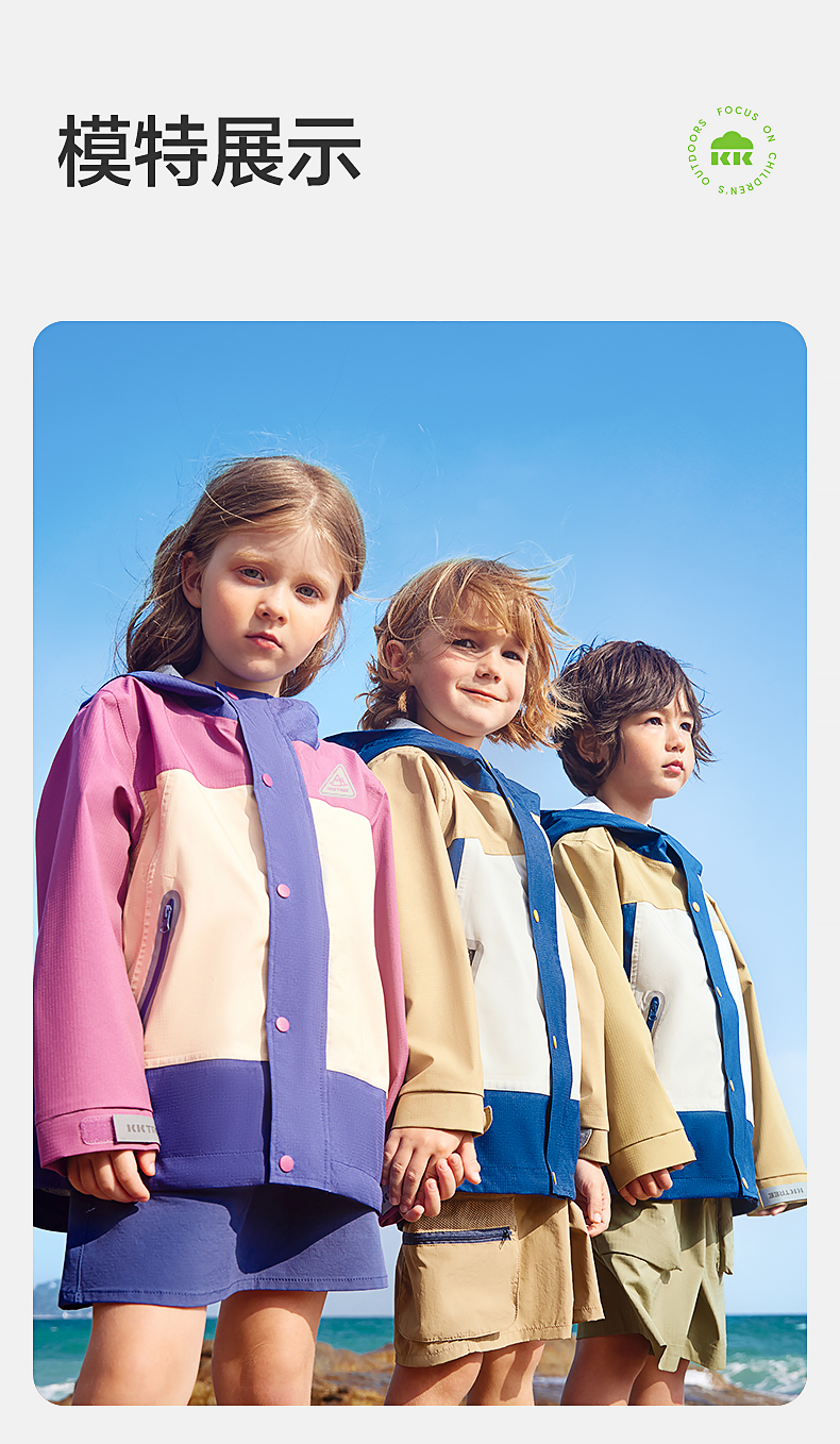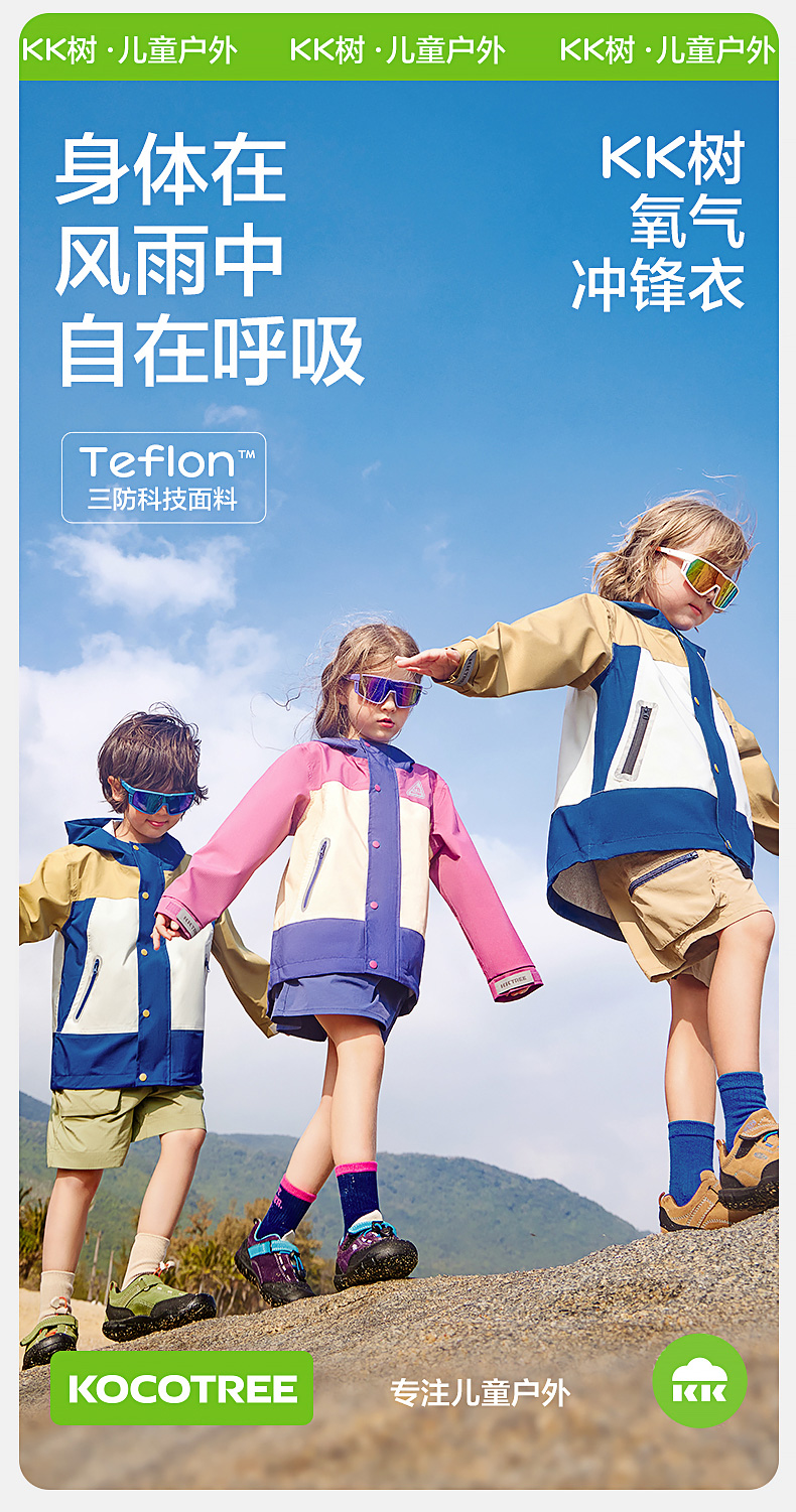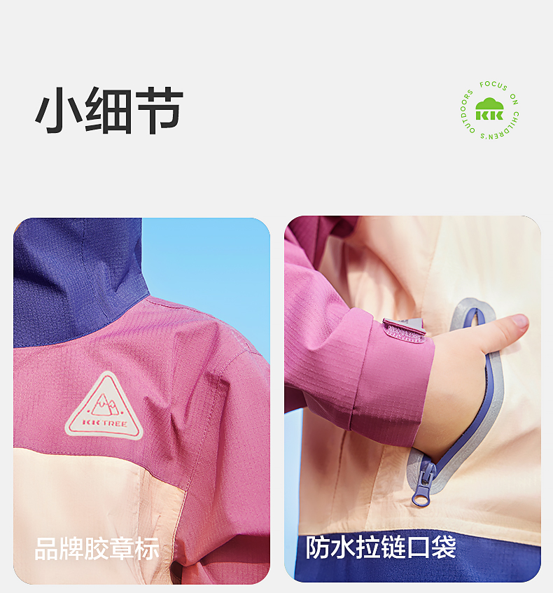 [屁侠推荐]KK树 儿童冲锋衣男童女孩户外防风防水连帽透气外套