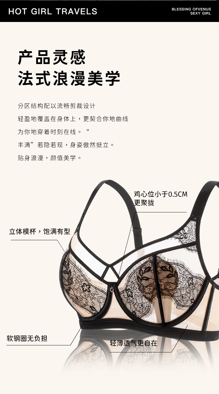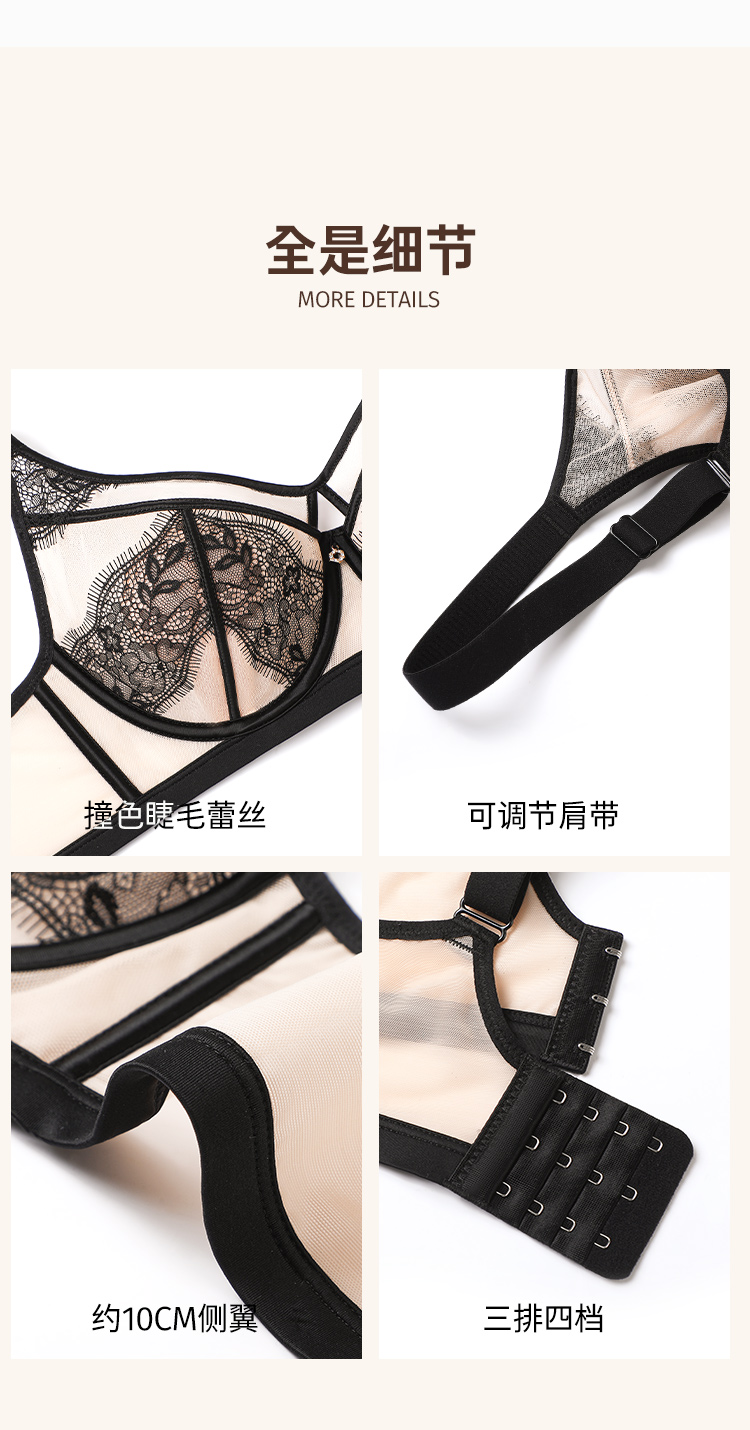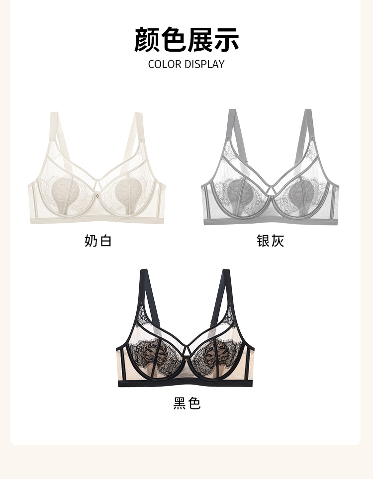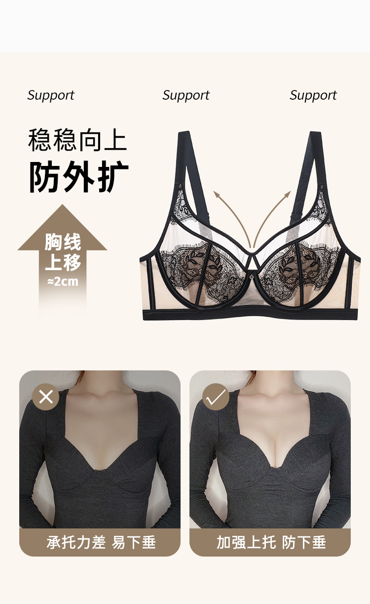 D2-【B-C杯】【超薄性感蕾丝 美胸内衣】【大胸专属】润微夏季透气薄款聚拢调整型防下垂文胸罩 魅惑女王/紫霞月影/蝴蝶魅影
