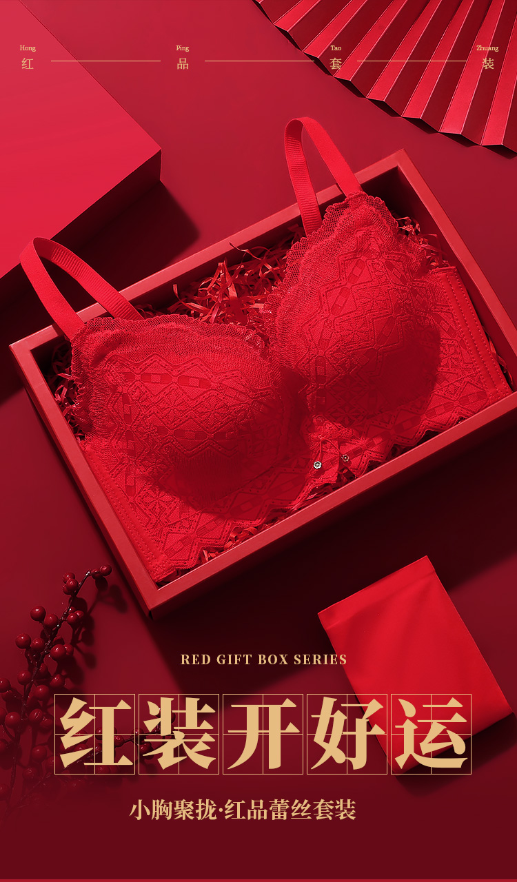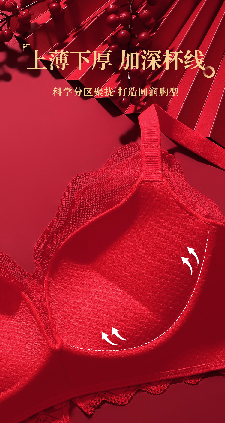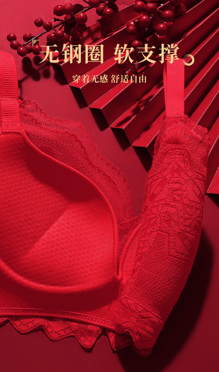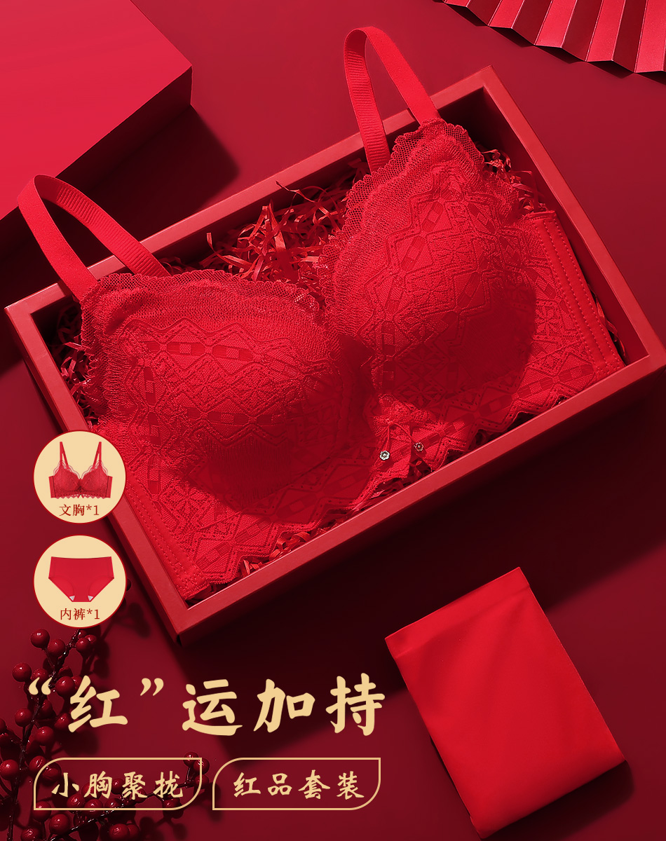 【鸿运套装】小胸聚拢显大红色内衣女金蛇本命年婚嫁喜庆文胸套装清樱暖阳套红