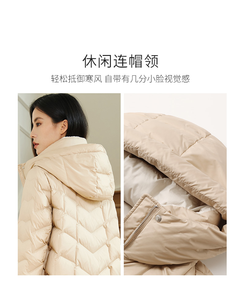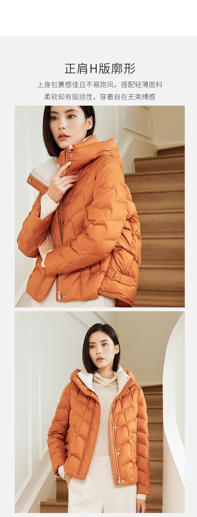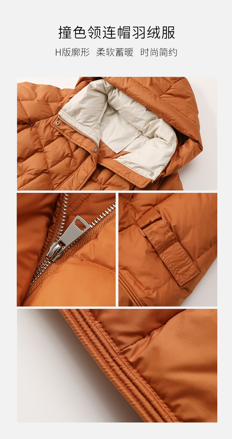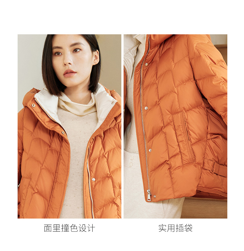 玳莎女装撞色领连帽白鸭绒羽绒服冬季时尚轻薄保暖短外套 DD41302