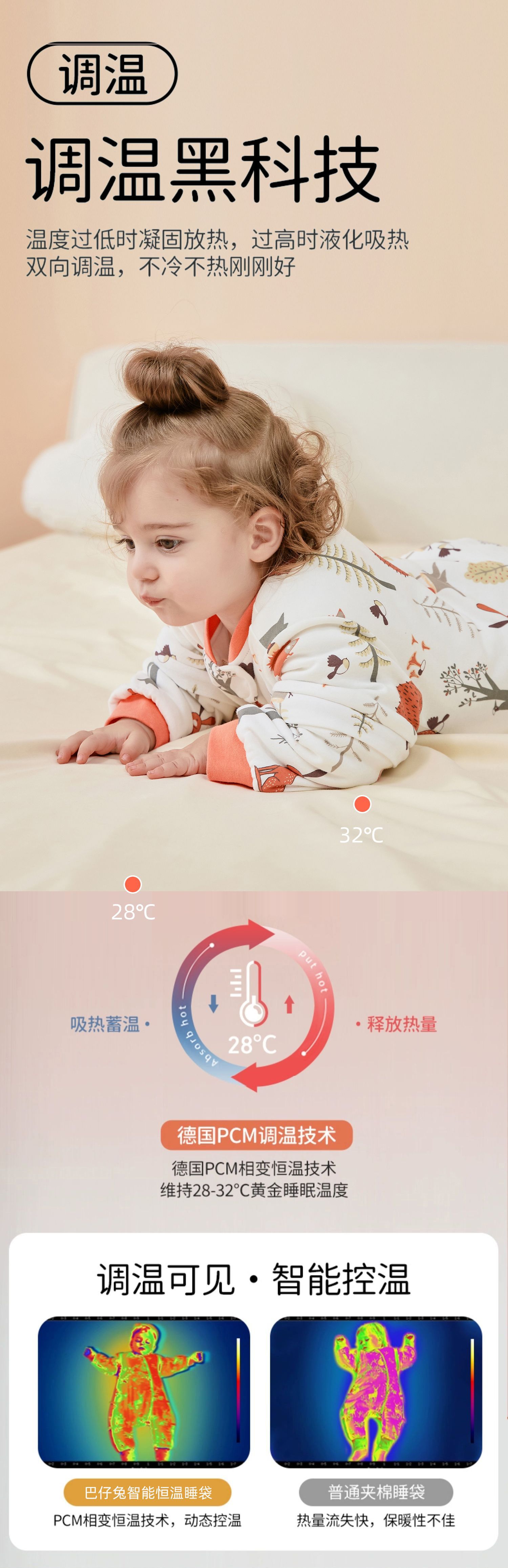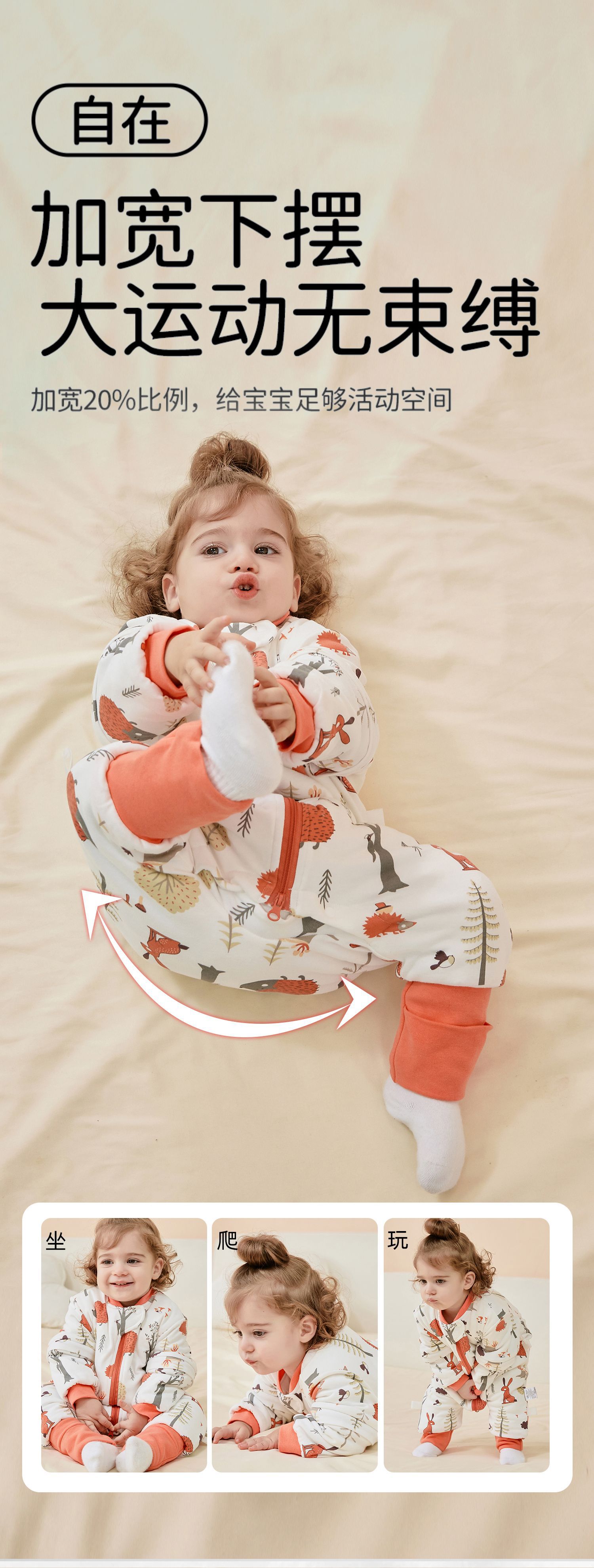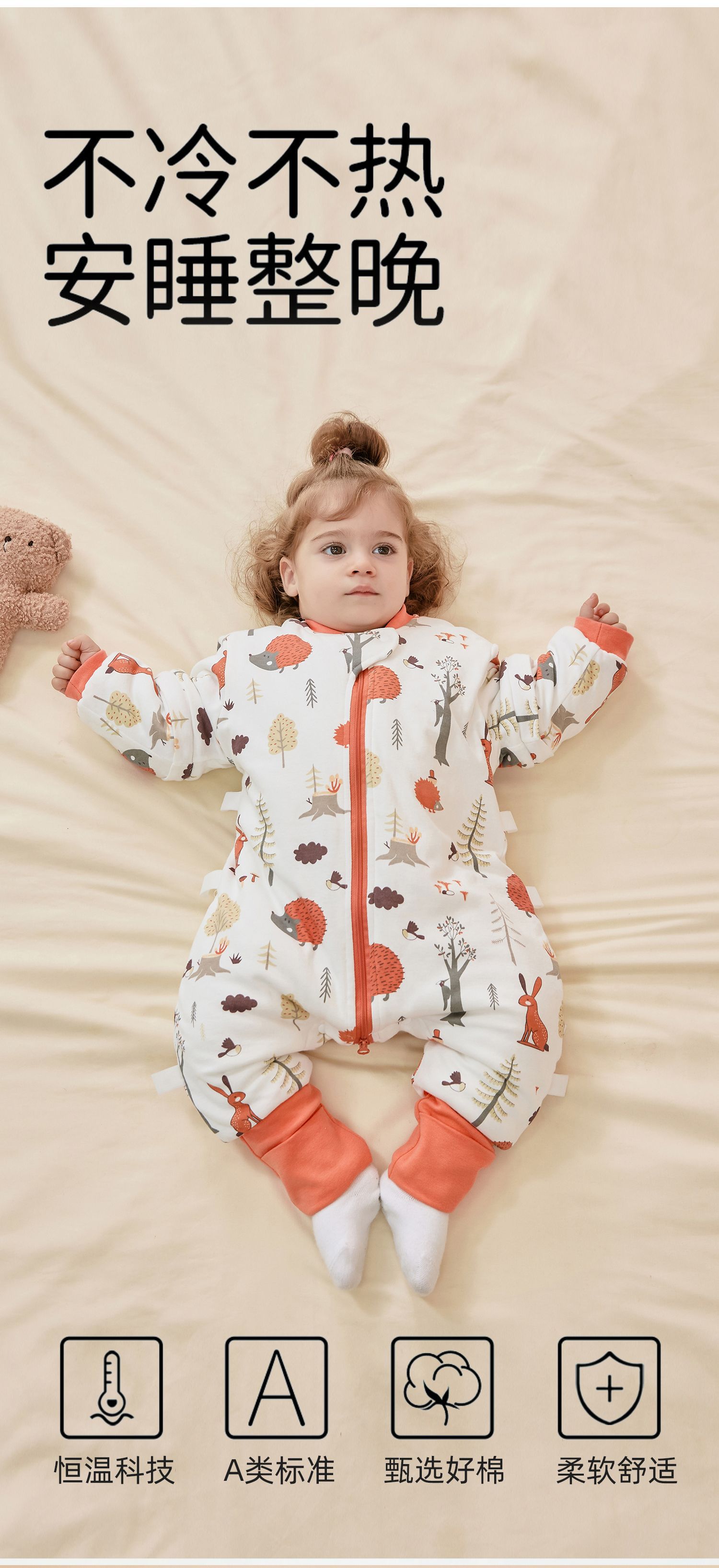 【智能控温 安睡整晚】秋冬季宝宝防踢被分腿加厚款夹棉防惊跳新生儿童恒温a类婴儿睡袋