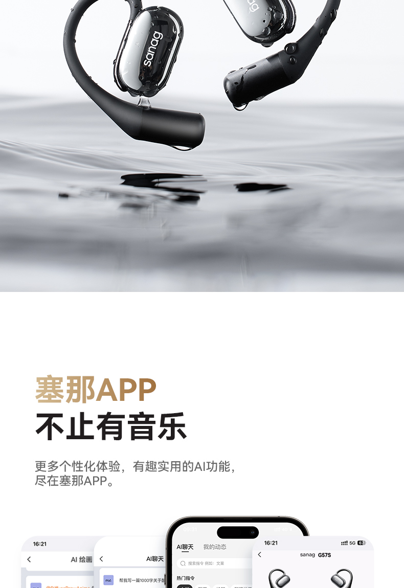 塞那sanag G57S蓝牙耳机无线气传导运动开放不入耳跑步运动2025新款