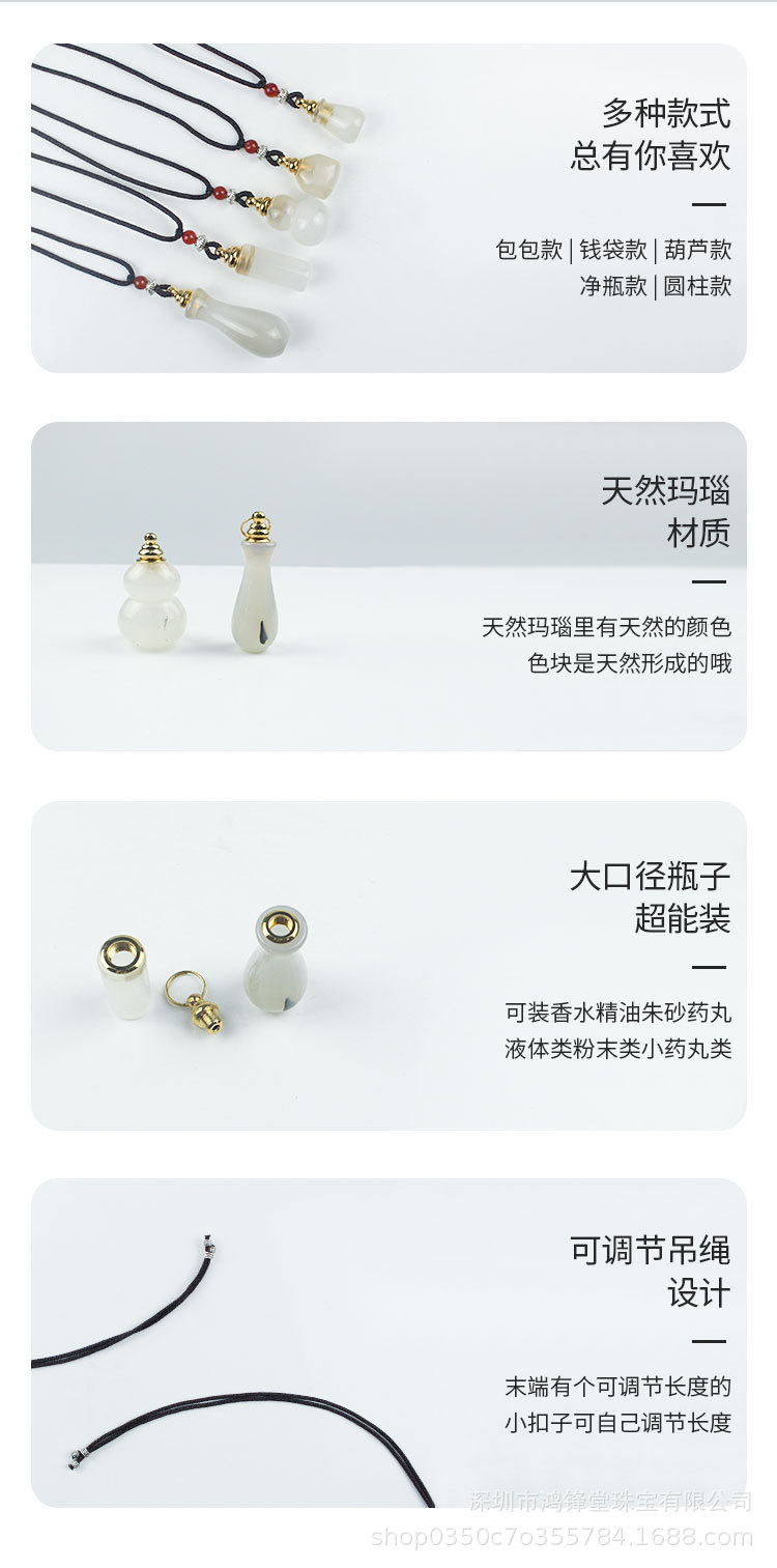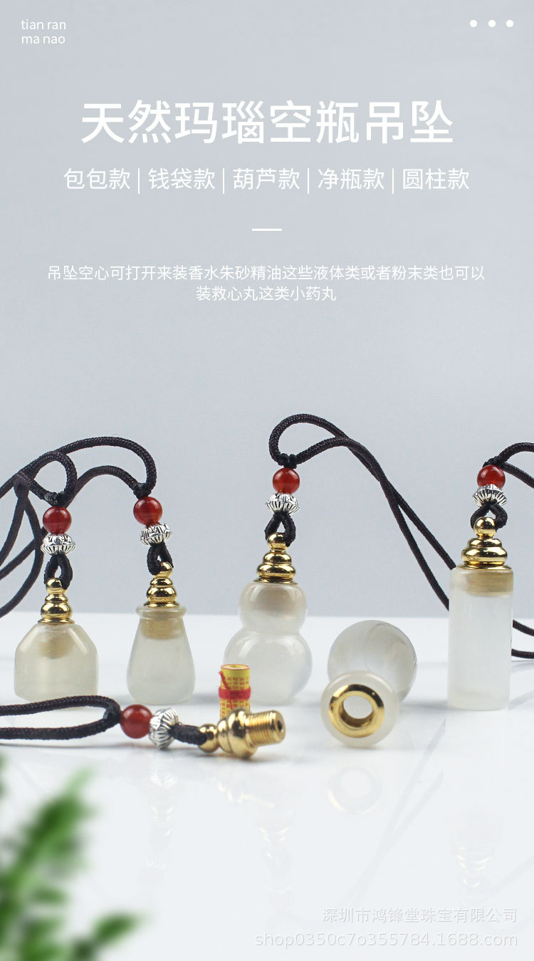 天然玛瑙玉髓小空心瓶玉葫芦朱砂瓶舍利香水精油瓶嘎乌盒吊坠项链