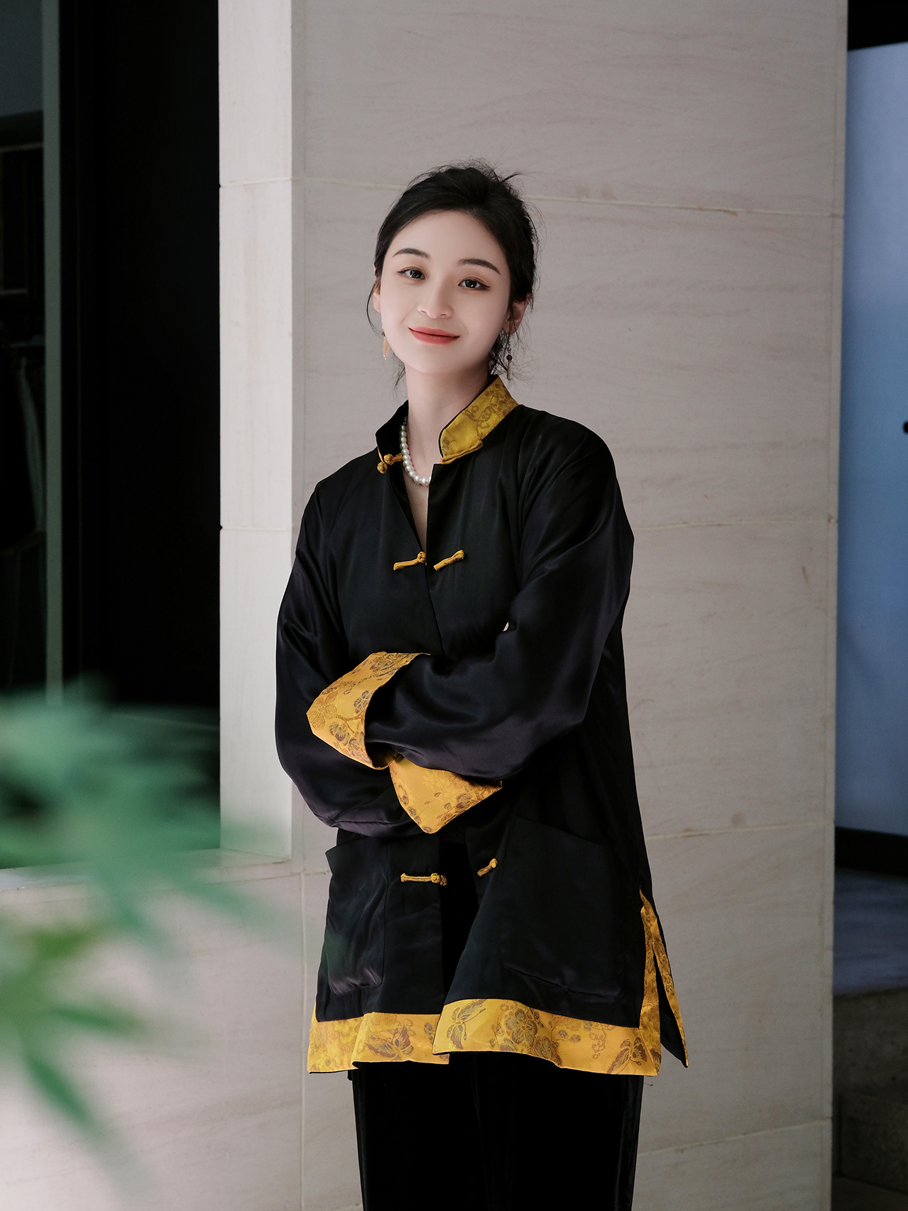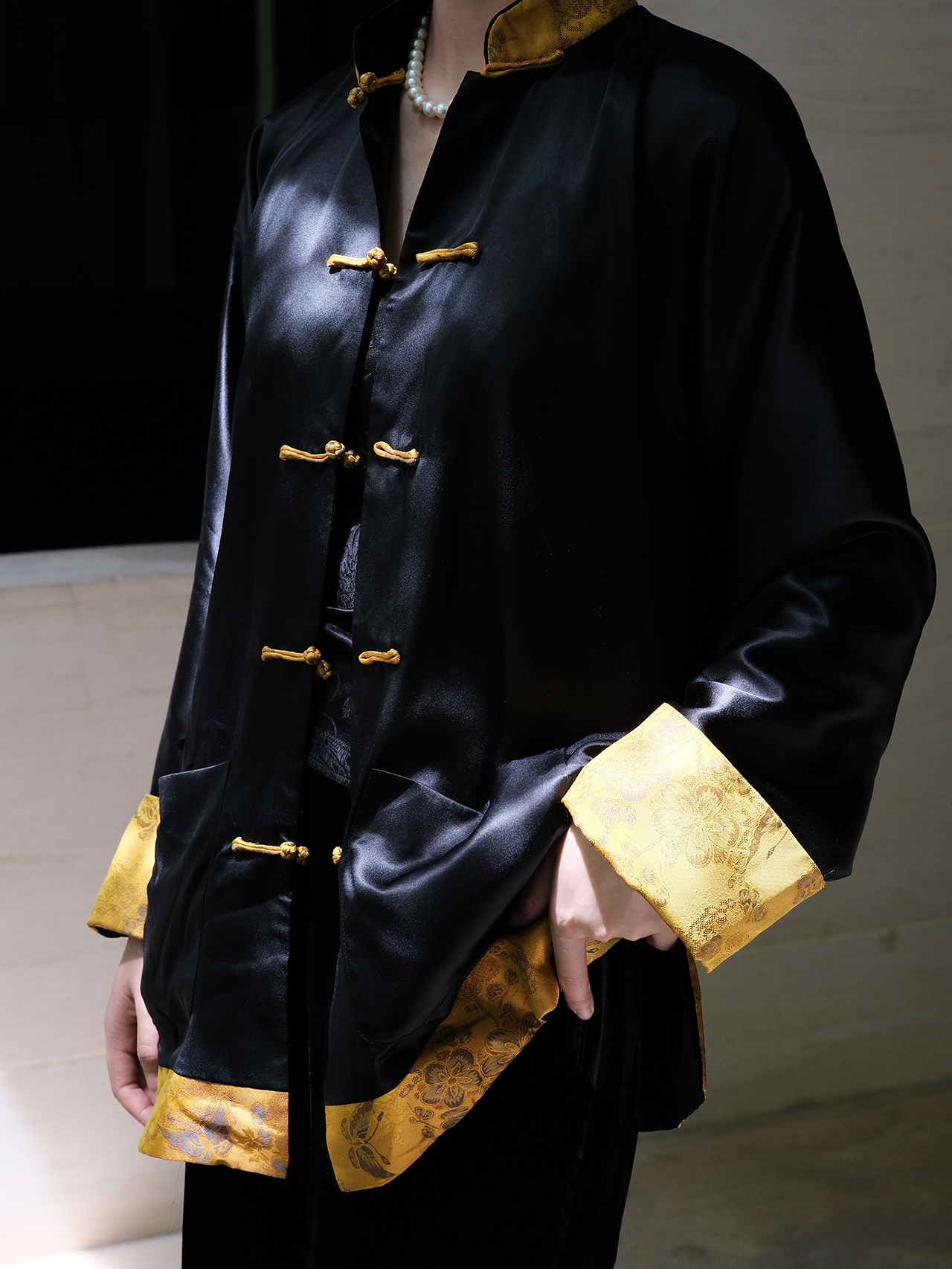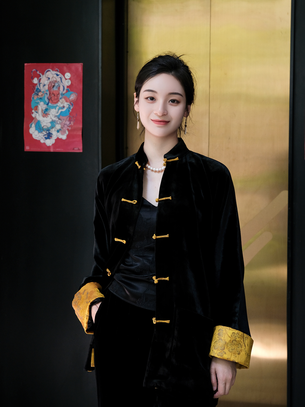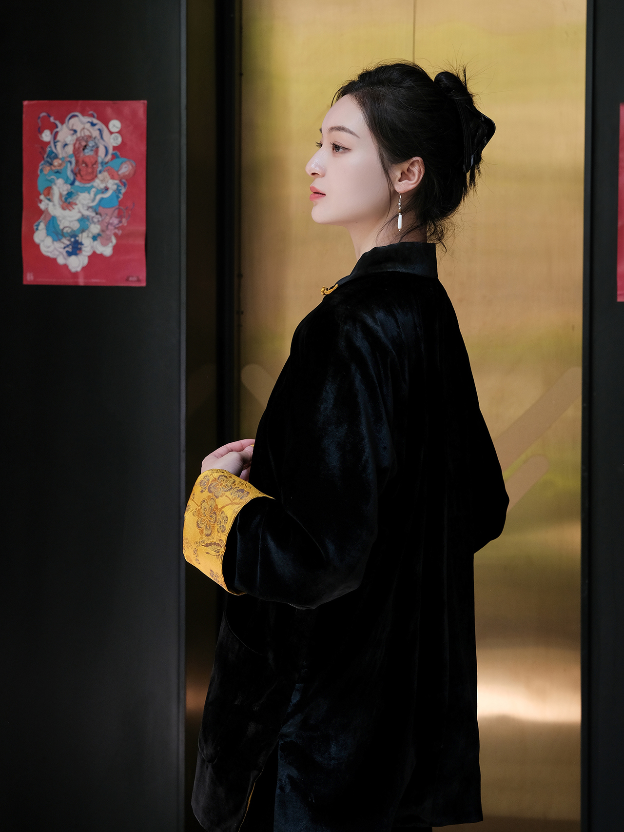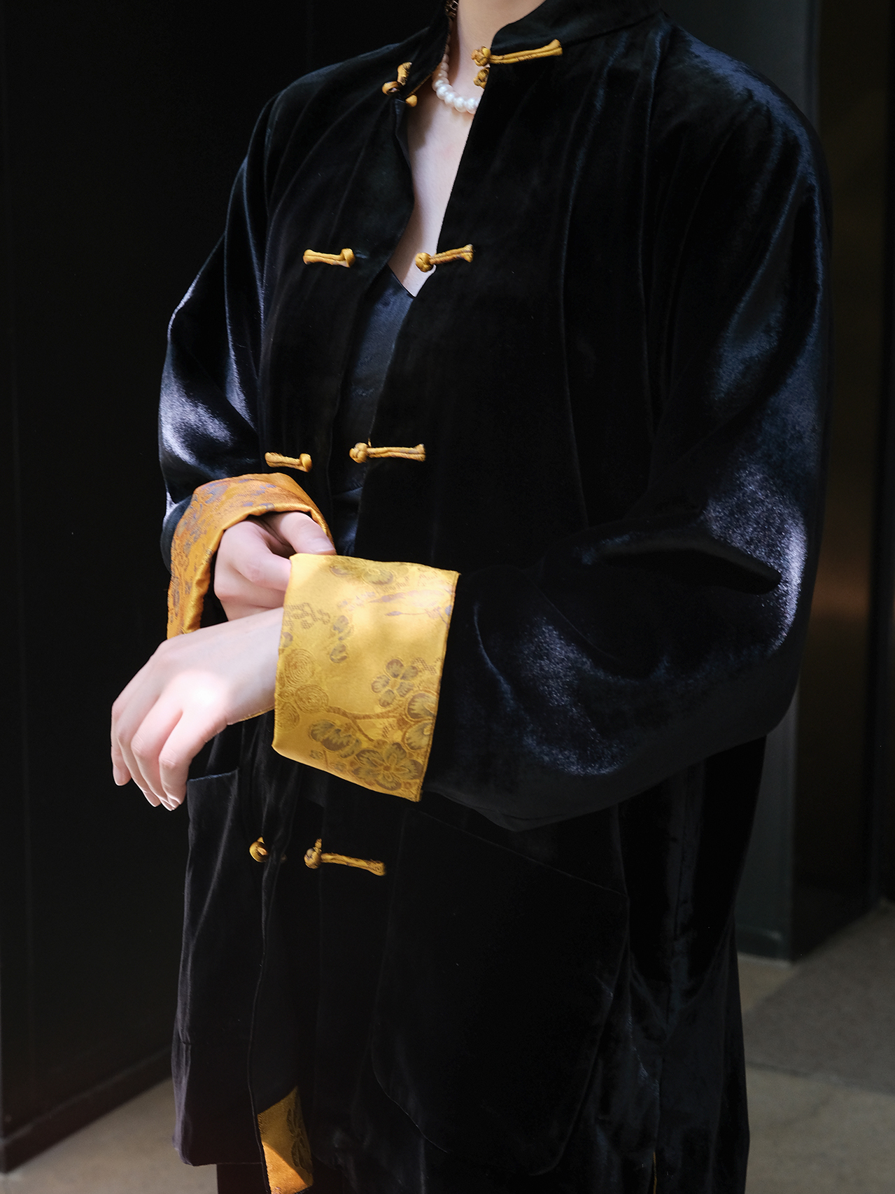 盛唐牡丹| 丝绒拼真丝宋锦对襟外套