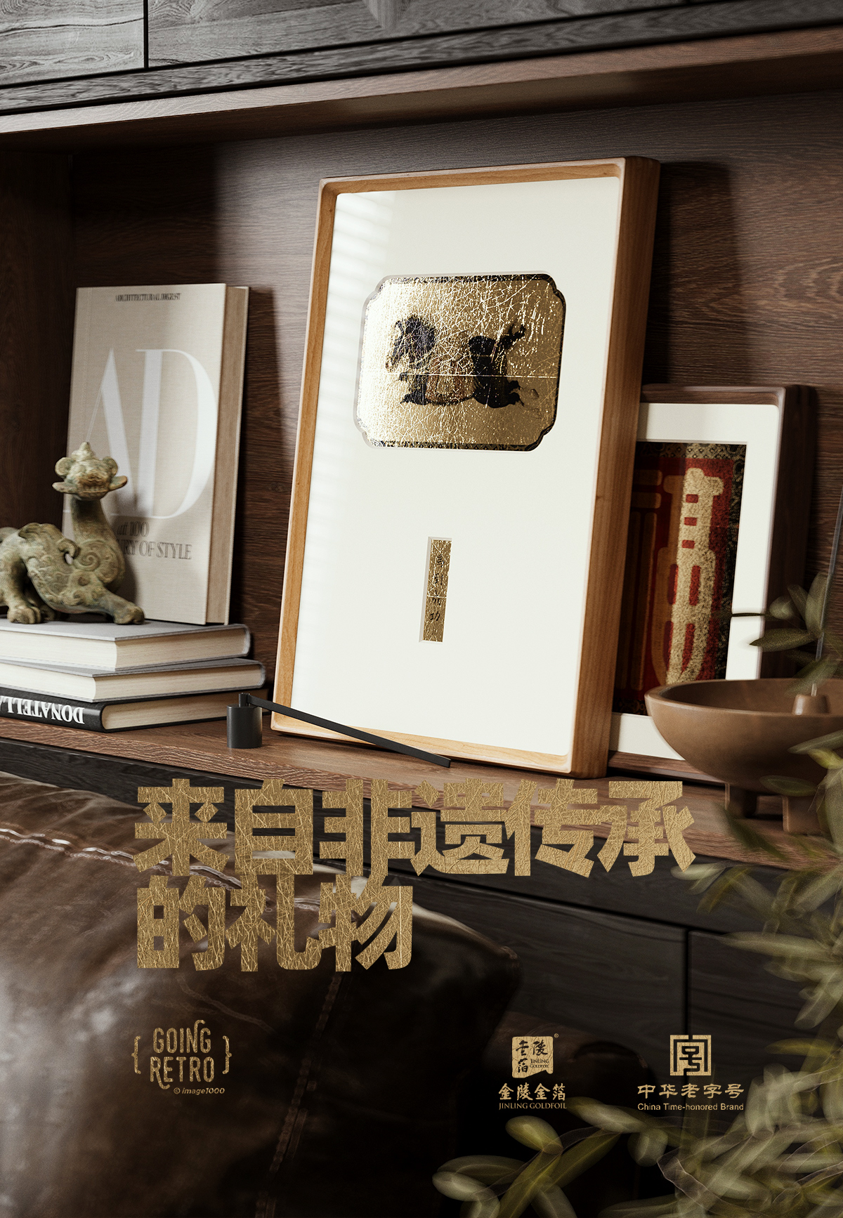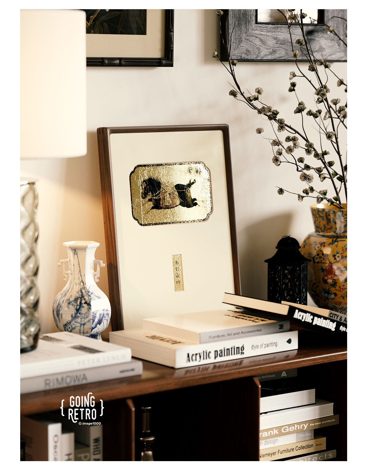南京金陵金箔复古艺术装饰画客厅书房书柜桌面摆件现代简约挂画