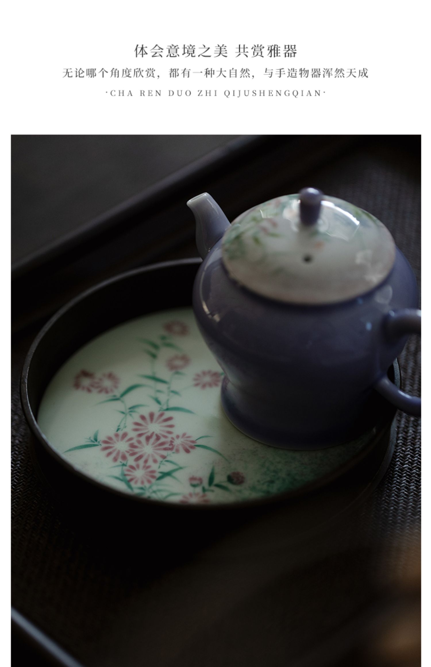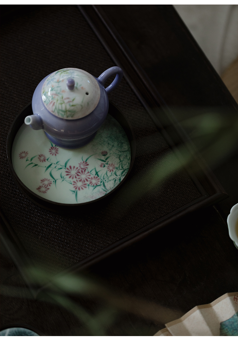 永利汇无落半锡点铜壶承景德镇釉下彩手绘雏菊干泡盘日式茶台托