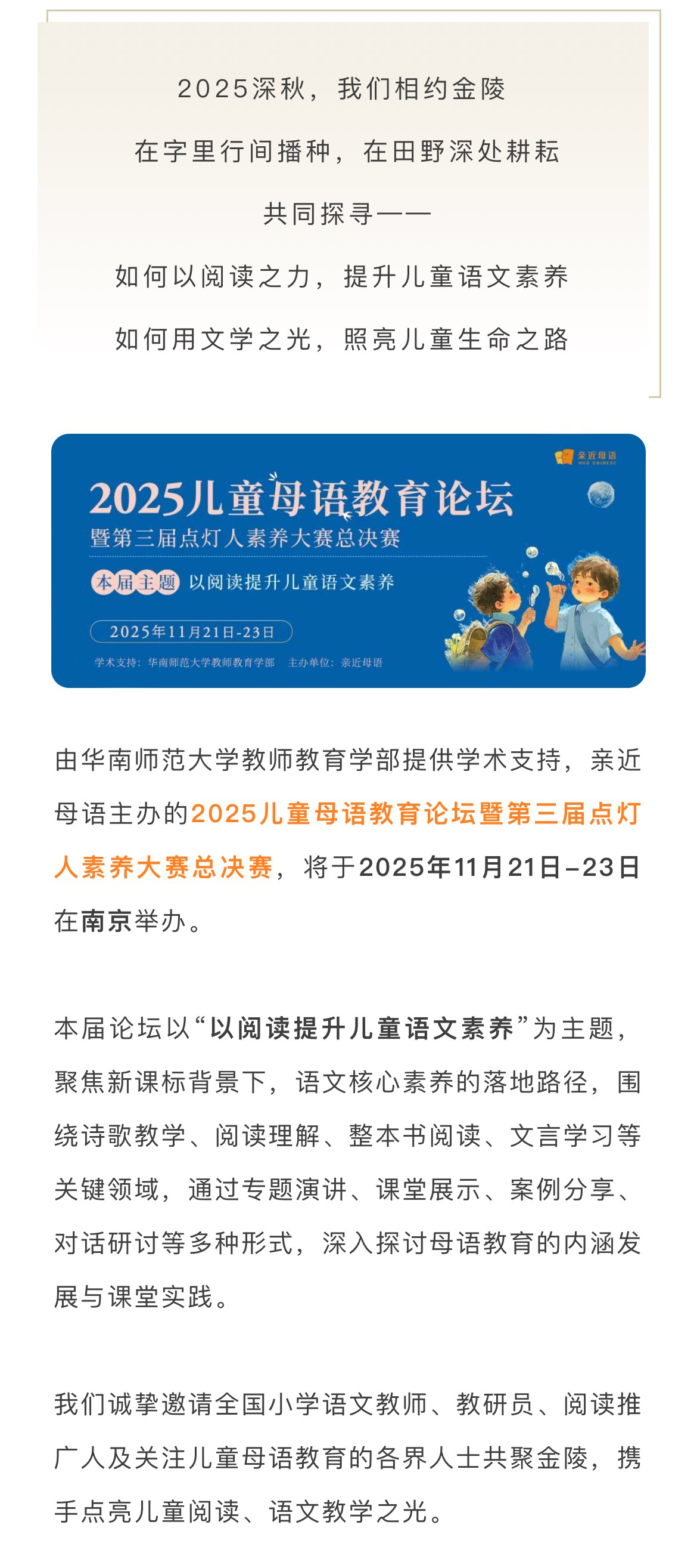 【回放】2025儿童母语教育论坛暨第三届点灯人素养大赛总决赛