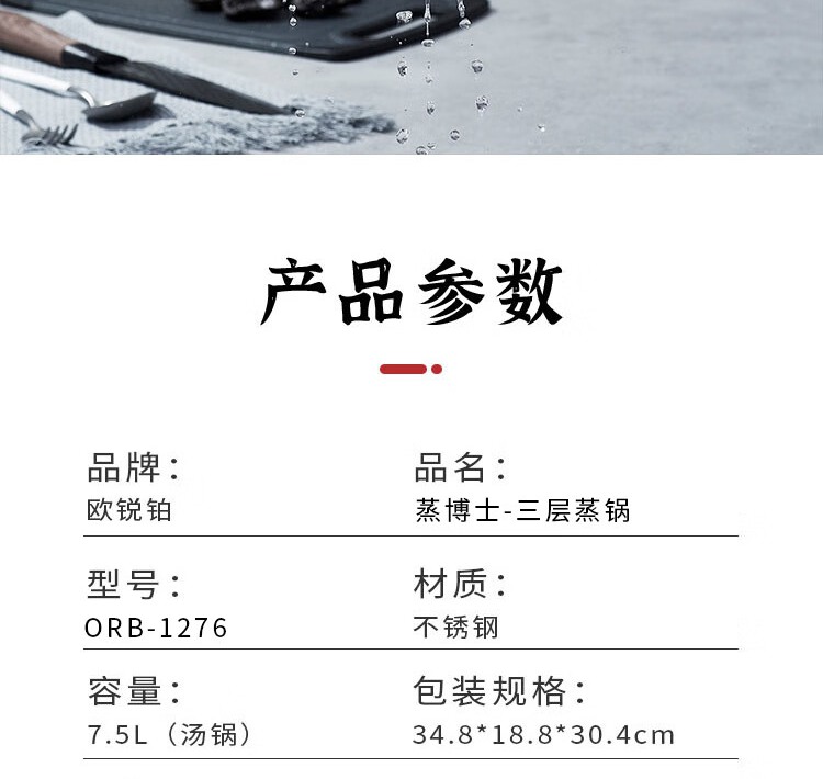 欧锐铂-蒸博士-三层蒸锅ORB-1276