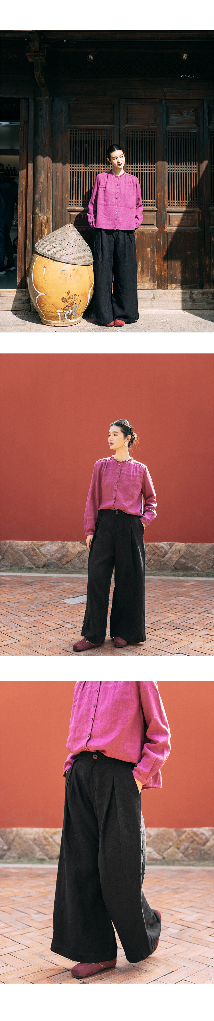 以天然亚麻为载体,融合热烈色彩与自在剪裁为身在城市、心怀远方的女性提供兼具美学与舒适的旅行着装