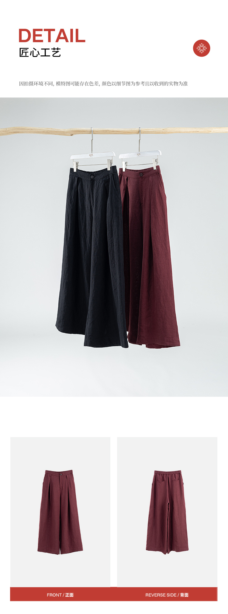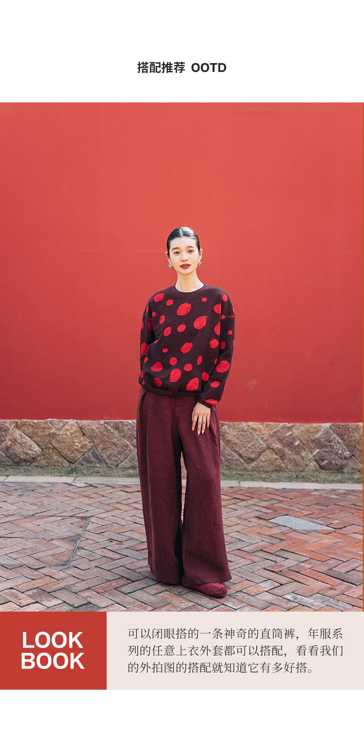 绽放旅行女装021朵/冬季5*5皱重磅砂洗亚麻松紧腰直筒休闲长裤