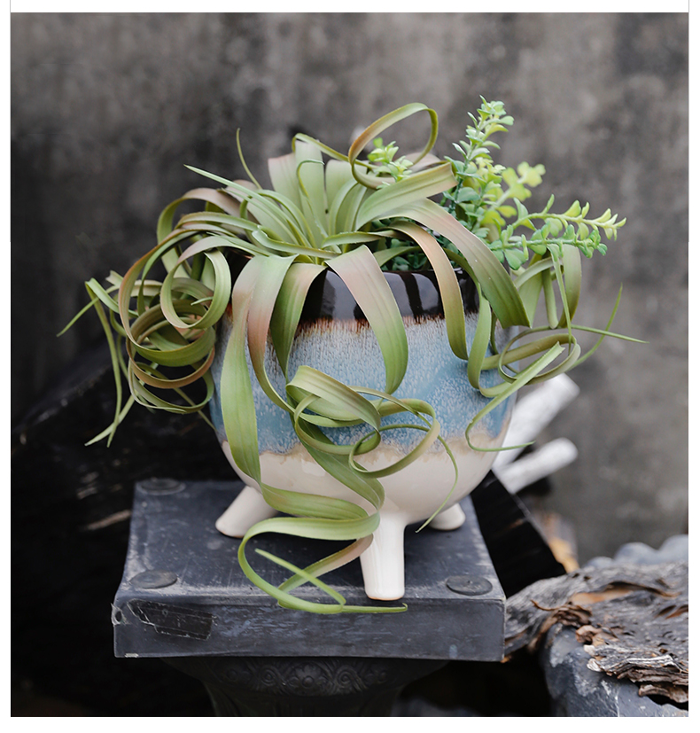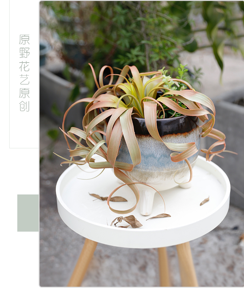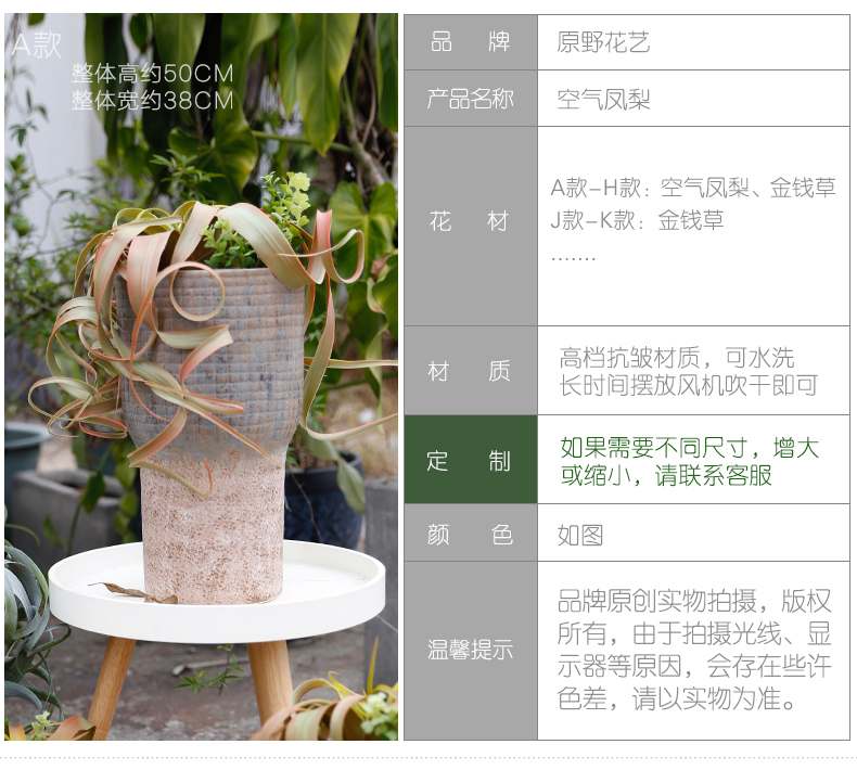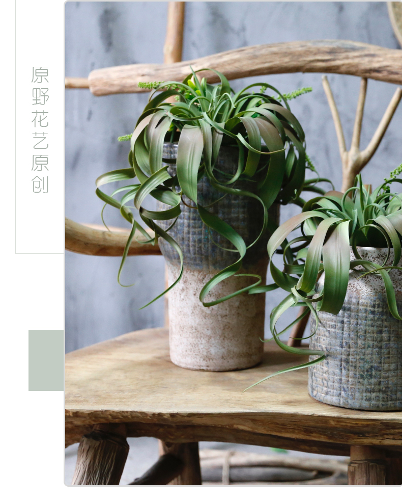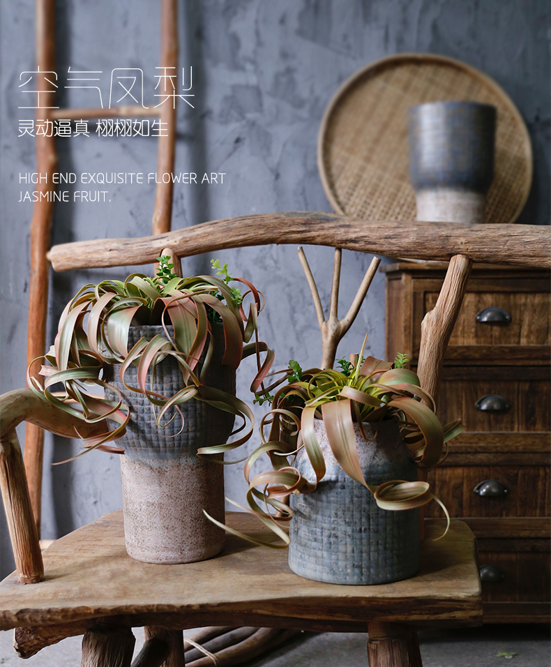 田园风空气凤梨草仿真花假花自然复古高档客厅玄关新中式书房茶几