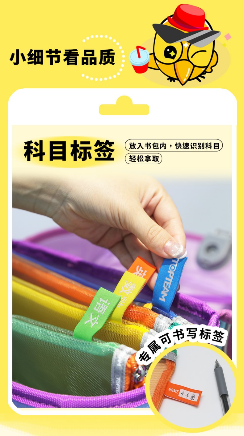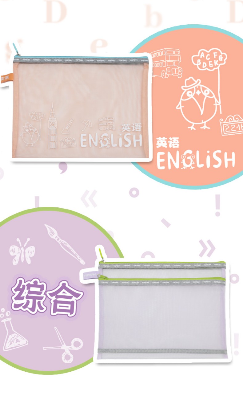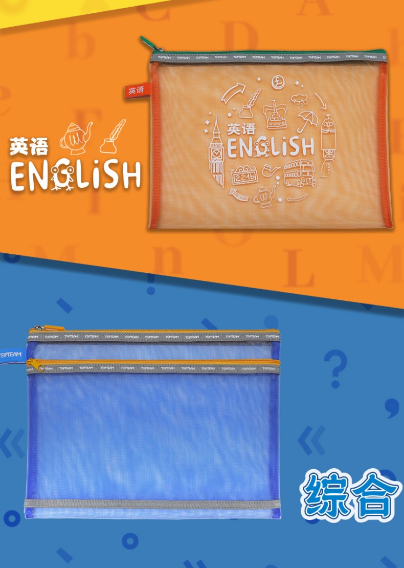 TOPTEAM千千圈 新升级科目分类收纳袋 透明学科拉链袋分类资料袋