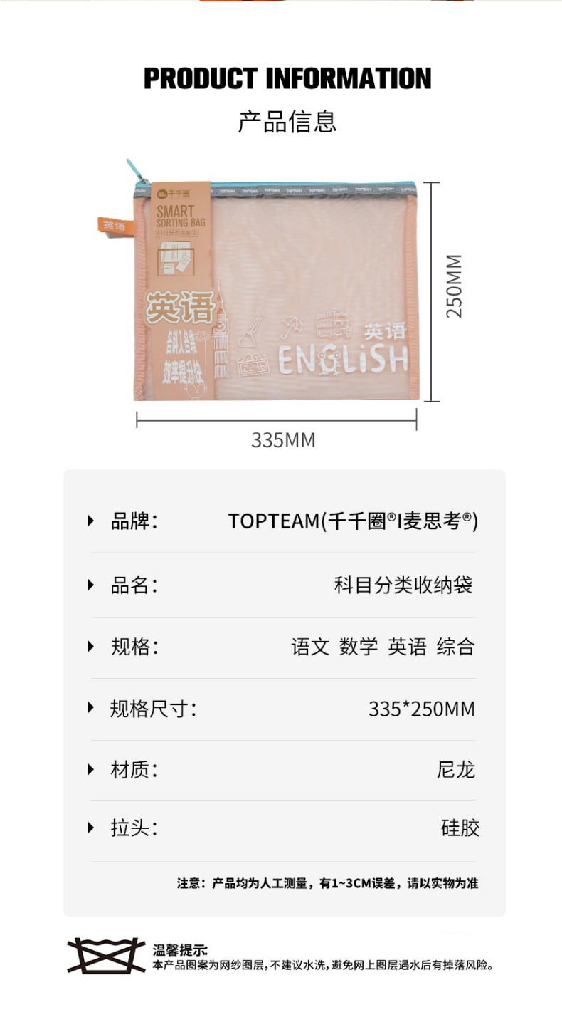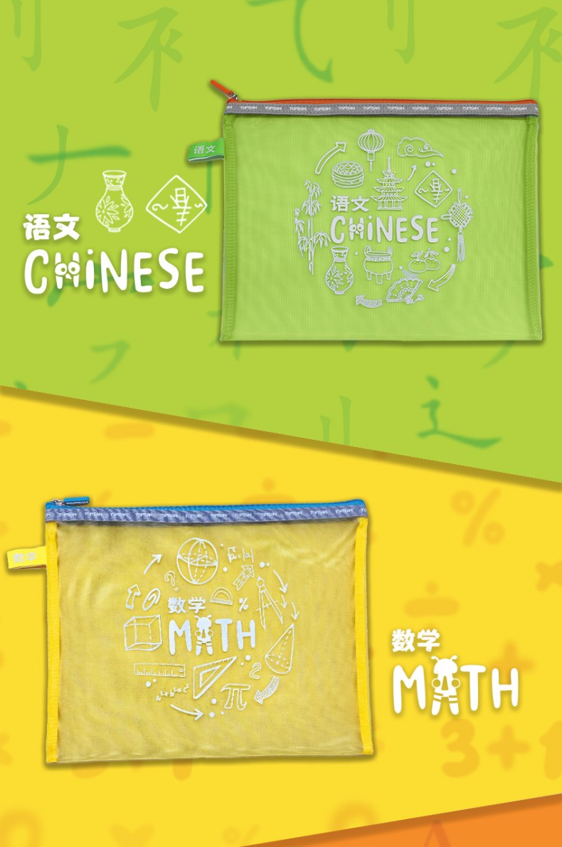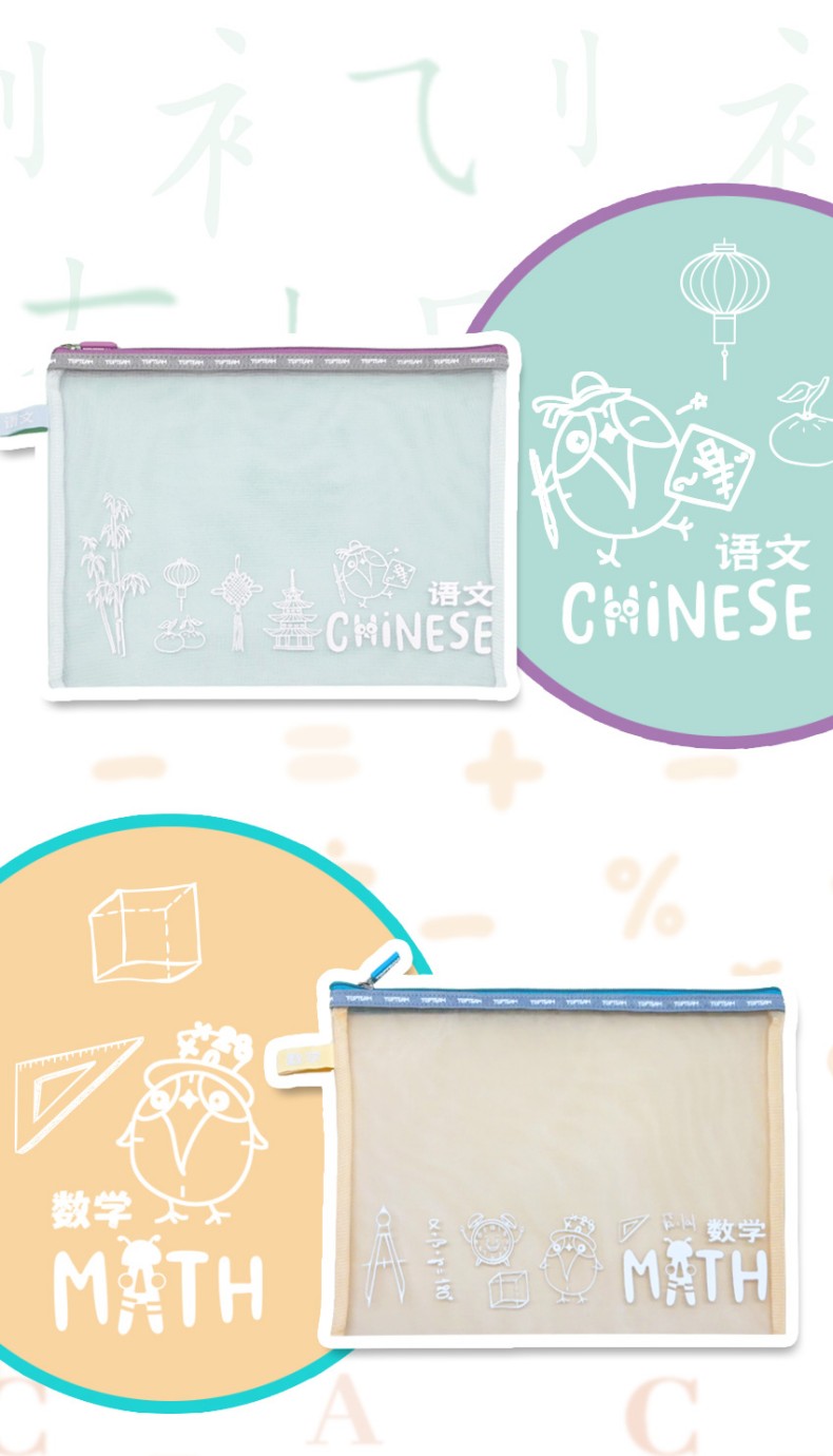 TOPTEAM千千圈 新升级科目分类收纳袋 透明学科拉链袋分类资料袋