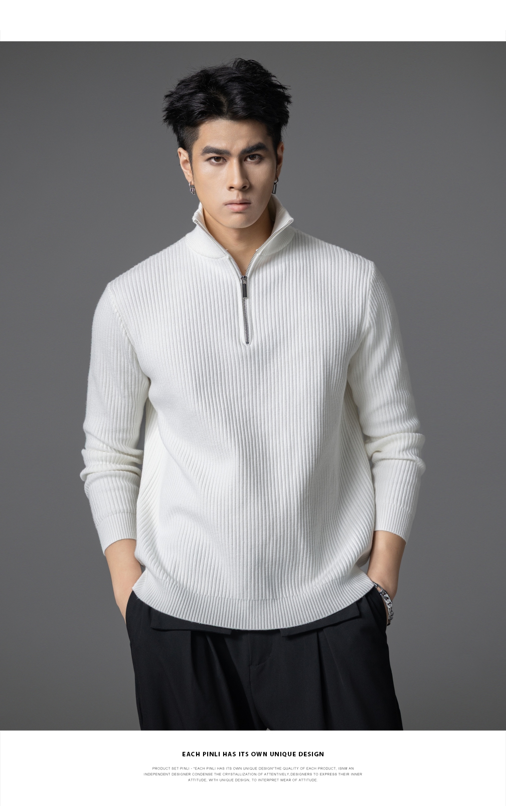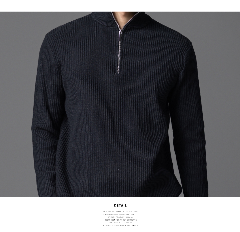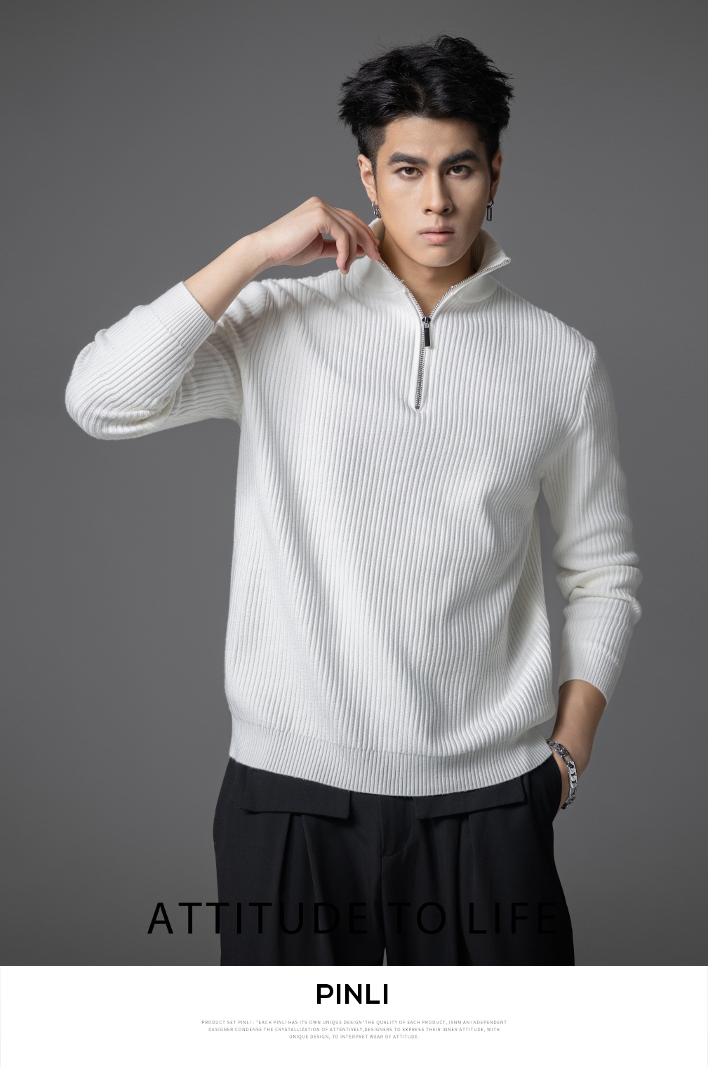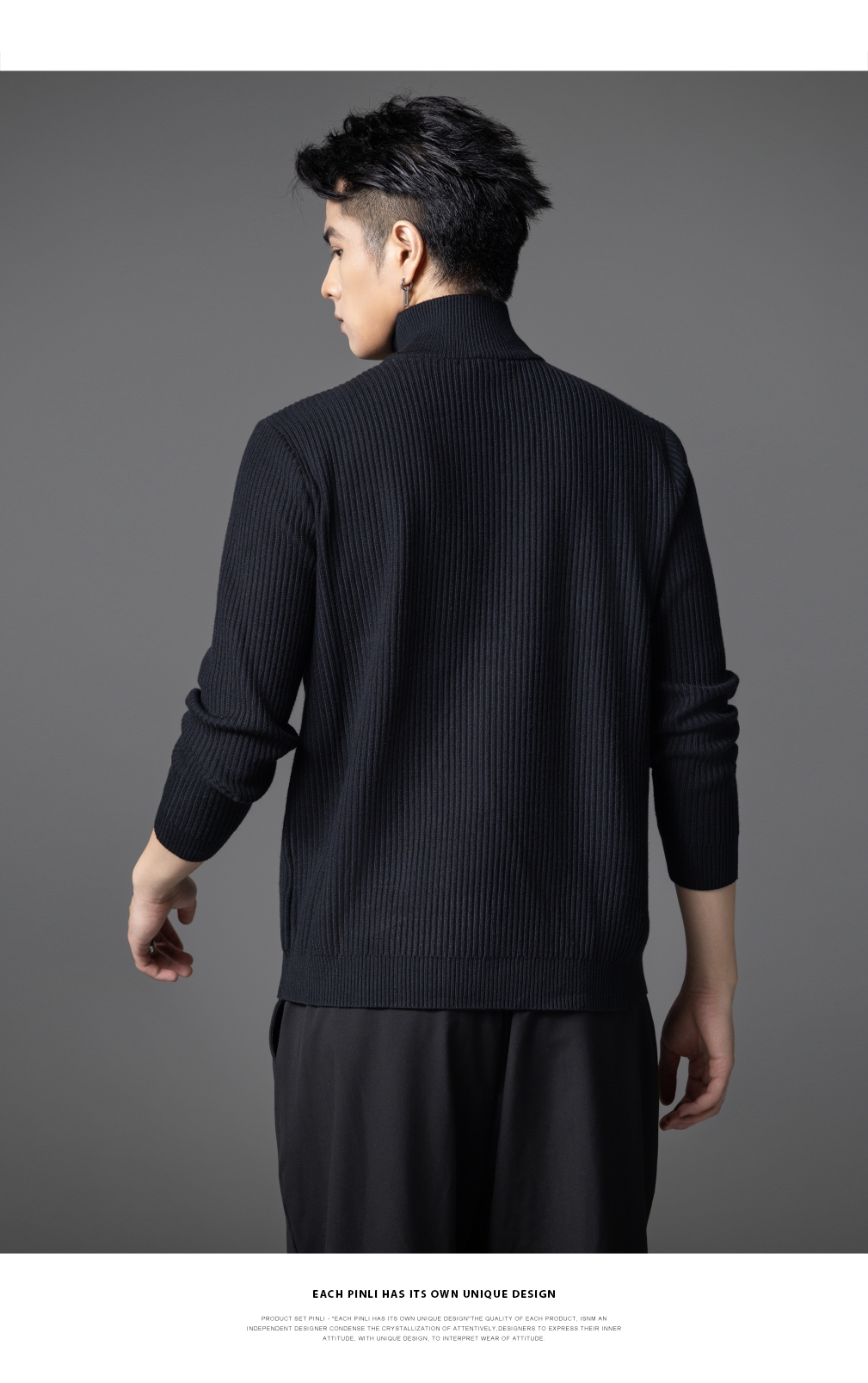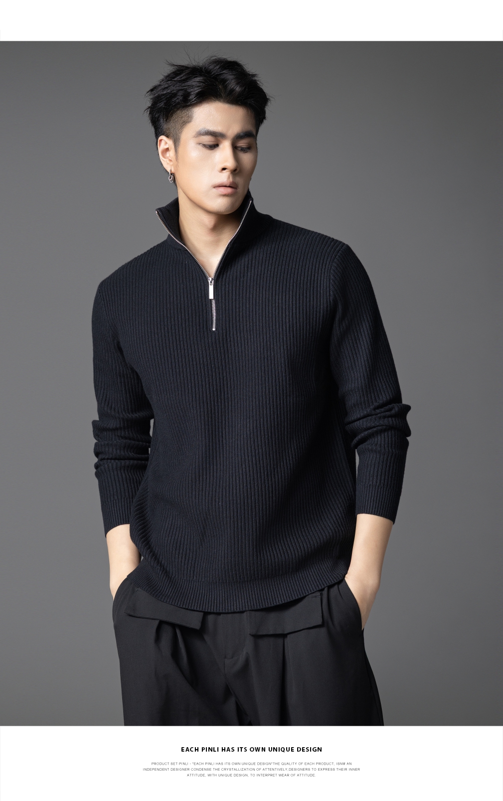 PINLI品立2025秋季新款男士拉链门襟高领条纹提花打底针织衫毛衣GD253110078