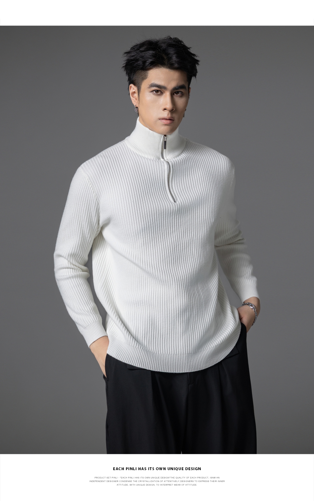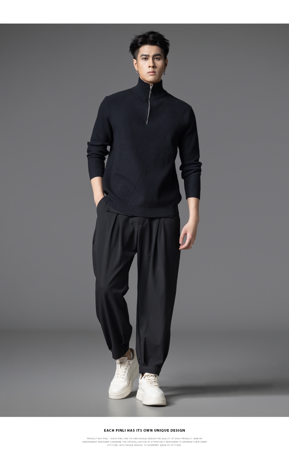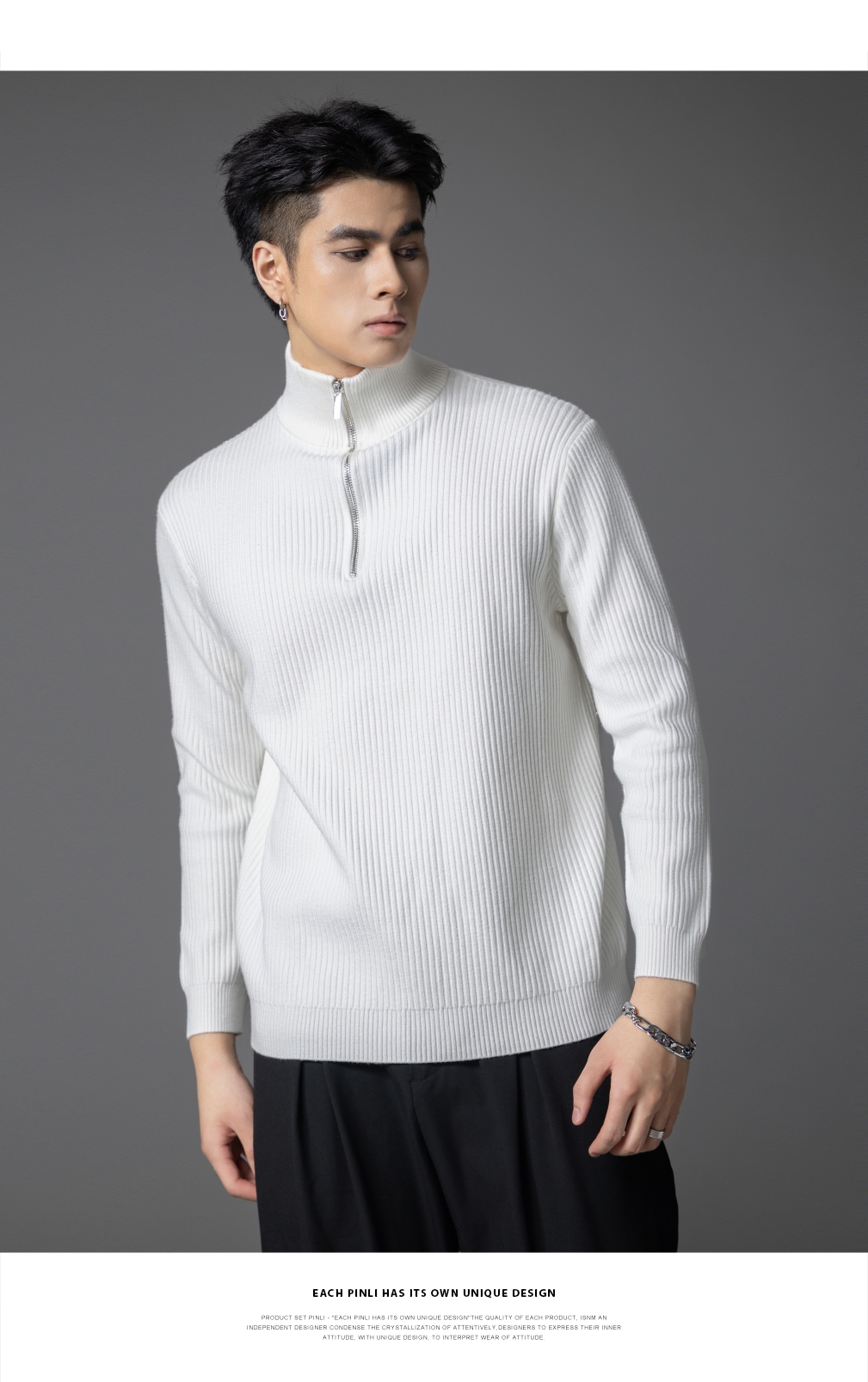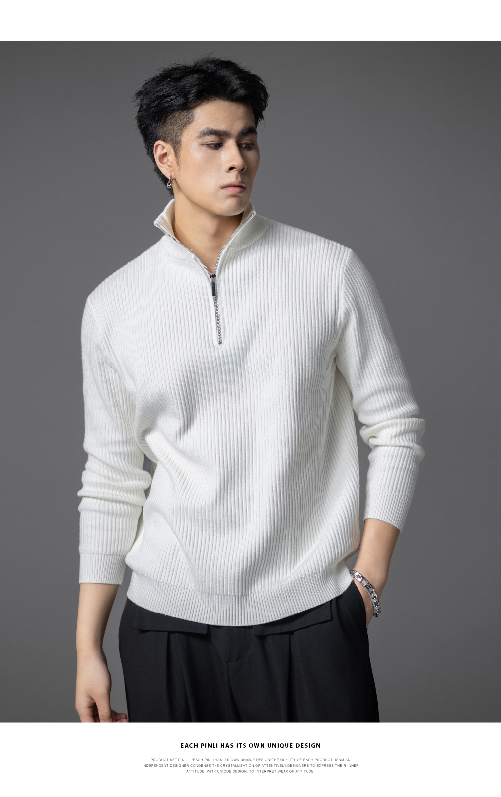 PINLI品立2025秋季新款男士拉链门襟高领条纹提花打底针织衫毛衣GD253110078