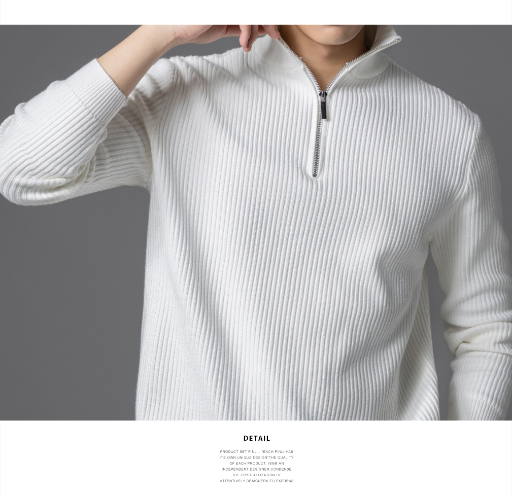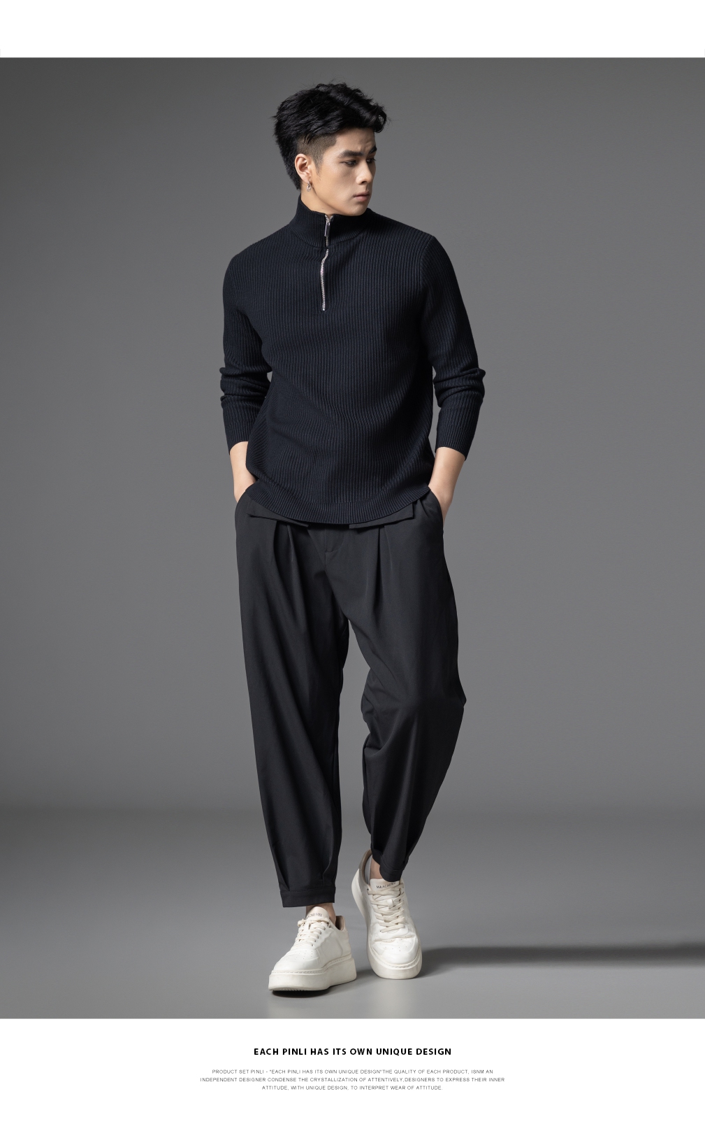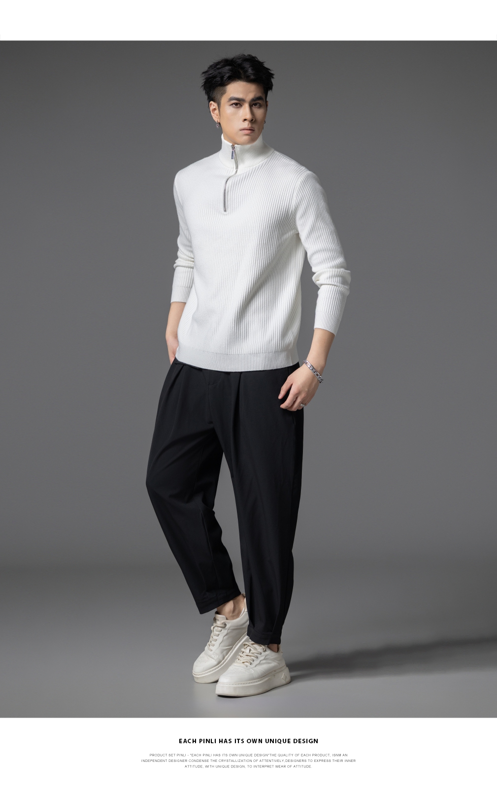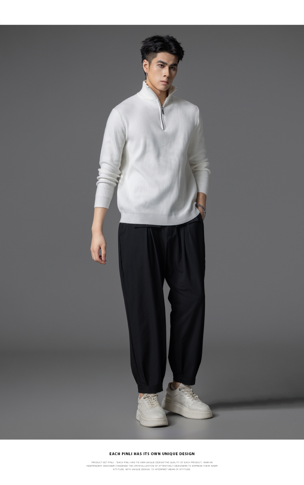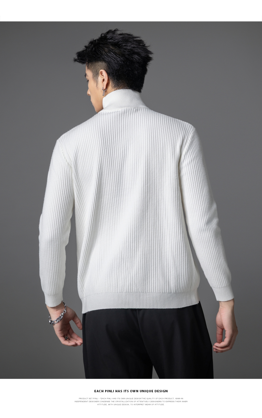PINLI品立2025秋季新款男士拉链门襟高领条纹提花打底针织衫毛衣GD253110078